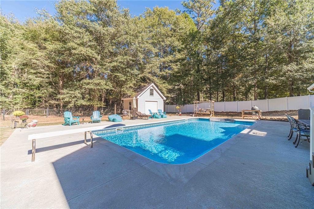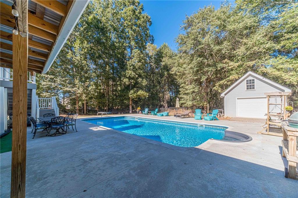 Back on market due to no fault of Seller. Spacious 4-Bedroom Ranch with Finished Basement & Pool on Large Lot! Welcome to this beautifully maintained 4-bedroom, 3-bathroom ranch situated on a large, level lot near schools and shopping. Featuring a full finished basement, in-ground pool, and extended parking pad perfect for an RV or boat, this home offers both comfort and versatility. Step inside to find hardwood floors throughout, high ceilings, and an inviting open floor plan. The kitchen boasts stainless steel appliances, a breakfast area, and a view to the fireside family room with built-in bookshelves and cabinets. A separate dining room and sunroom provide ideal spaces for entertaining and relaxation. The spacious master suite features a high tray ceiling, his-and-hers closets, and a luxurious en suite bath with double vanities, soaking tub, and separate shower. The oversized laundry/mudroom adds convenience and extra storage. The finished basement offers a bedroom, full bath, and a large open area perfect for entertaining, recreation, or customization to fit your needs. Outdoor living shines with a back deck overlooking the pool, a covered patio below, and a private fenced backyard complete with a storage building/workshop. With a 2-car garage, additional parking, and countless upgrades, this home perfectly combines functionality and lifestyle—don’t miss it!