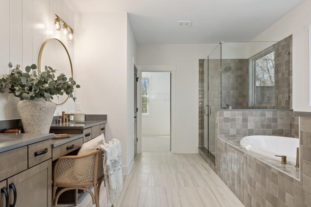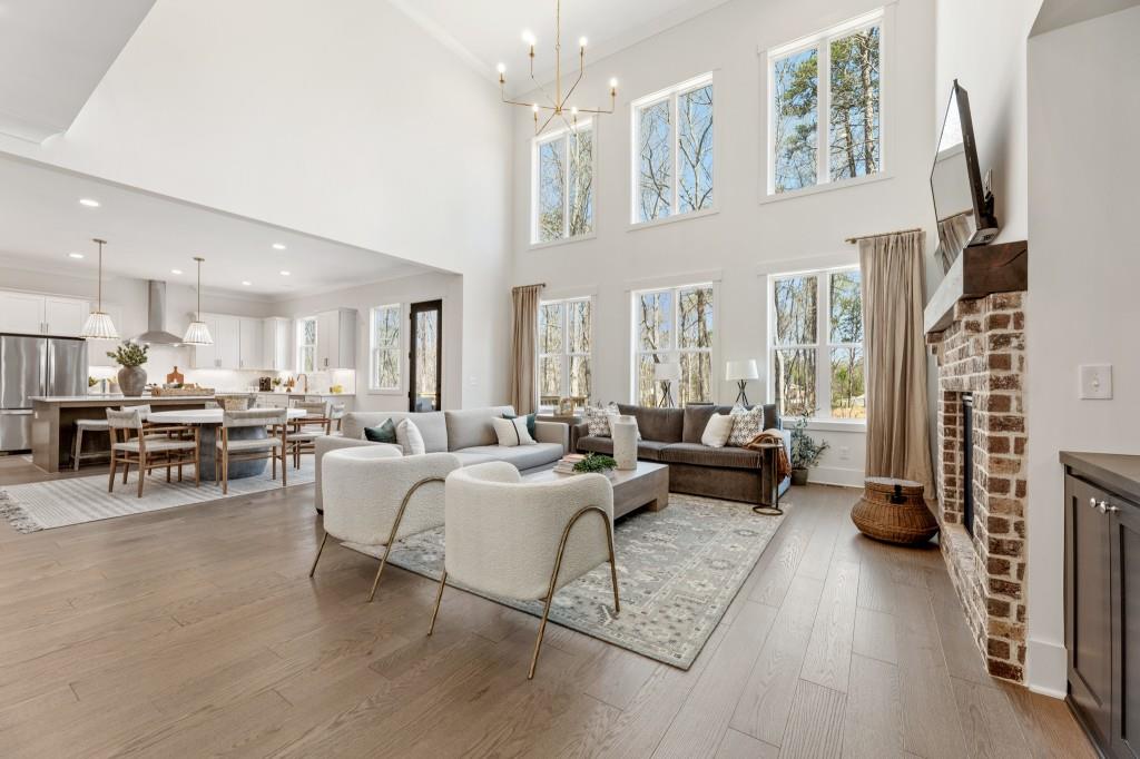 The Bellville Plan by Peachtree Residential. Our official model home! Quick Move-in! This luxurious basement estate is outfitted with all the most beautiful design features - no detail has been spared. You won't want to miss this! Welcomed in by an expansive foyer, on either side you will find a formal dining room big enough for those holiday dinners and a private in-law suite w/ wet bar perfect for guests. Continuing into the home, a towering 2-story family room w/ brick surround fireplace is supplied with vibrant natural light from the huge wall of windows. The family room is overlooked by a sparkling chef's paradise kitchen with wall oven, gas cooktop & vent hood, and gorgeous interior design selections/fixtures. Upstairs your private retreat awaits. The large owner's suite is decked out in the highest fashion with beamed ceiling leading to a spa-like bathroom w/ tile shower & garden tub, make-up counter, chic framed mirrors, and an extensive walk in closet. Rounding out the second level you will find 3 additional spacious bedrooms and 2 bathrooms. Out back is a cozy grilling deck waiting for you to cook up those seasonal meals and enjoy your coffee with the sunrise. All of this on an enormous corner lot w/ a basement makes it THE perfect home. Call TODAY! Ask about our AMAZING incentive with use of preferred lender and binding contract by 11/30/2025 and close by the end of 2025!