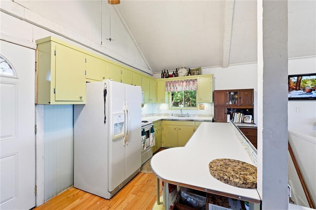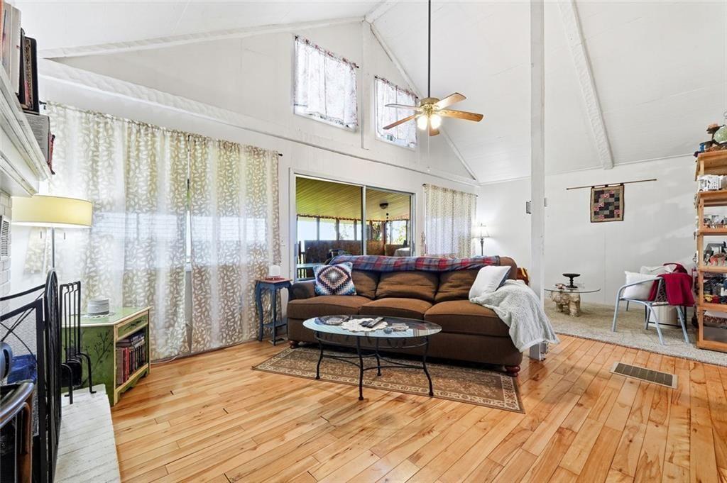 Enjoy stunning long-range mountain views from this charming cabin set on a quiet gravel road that's easily accessible from Hwy 136—no steep roads to climb and a completely level driveway with parking for two cars! Located half-way between Dawsonville and Jasper and set almost a mile from Hwy 136, the only sounds you'll hear here are the eagles and the breeze coming through your screened porch. At 1499 Eagle Ridge Road, you'll wake up every morning to panoramic mountain views right from your bedroom, which you can also enjoy from your back deck, the kitchen, the living room, the second bedroom, and your other back deck! With a completely open floor plan and windows along the length of the home, this would make the perfect full-time home with plenty of room for entertaining, a weekend getaway, or an Airbnb. The main floor features vaulted ceilings, wood floors, a brick fireplace, and oversized sliding glass doors opening to one of two 24' wide covered decks. The lower level offers two bedrooms (one with a second brick fireplace), a full bath, an additional bonus room perfect for an office or studio, as well as a second 24' wide covered deck! Rare opportunity to get a panoramic mountain view at this price point. Backs up to thousands of acres of DNR property providing longterm privacy! Home needs some TLC and renovations.