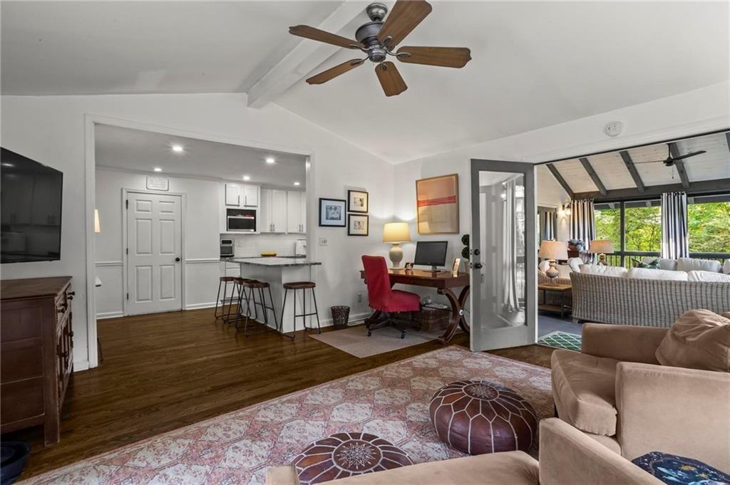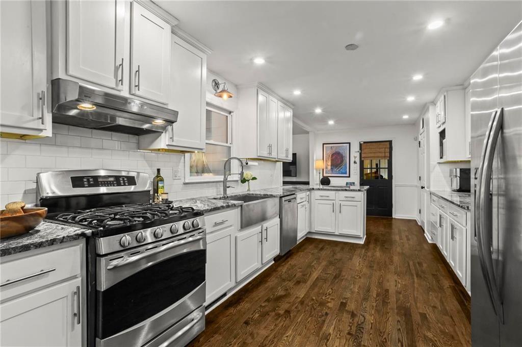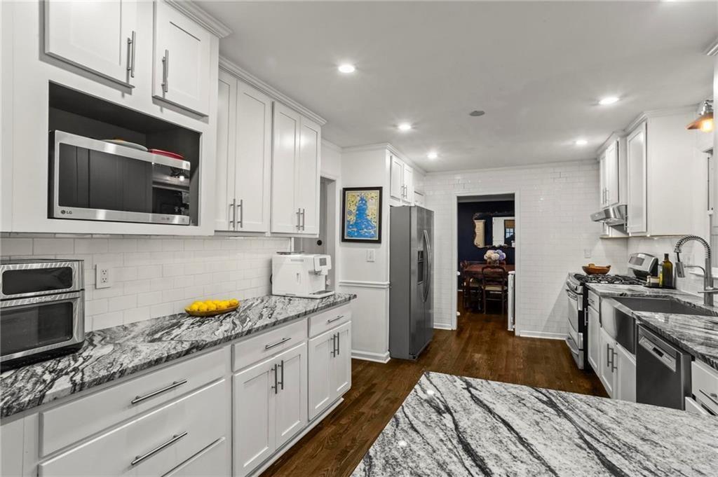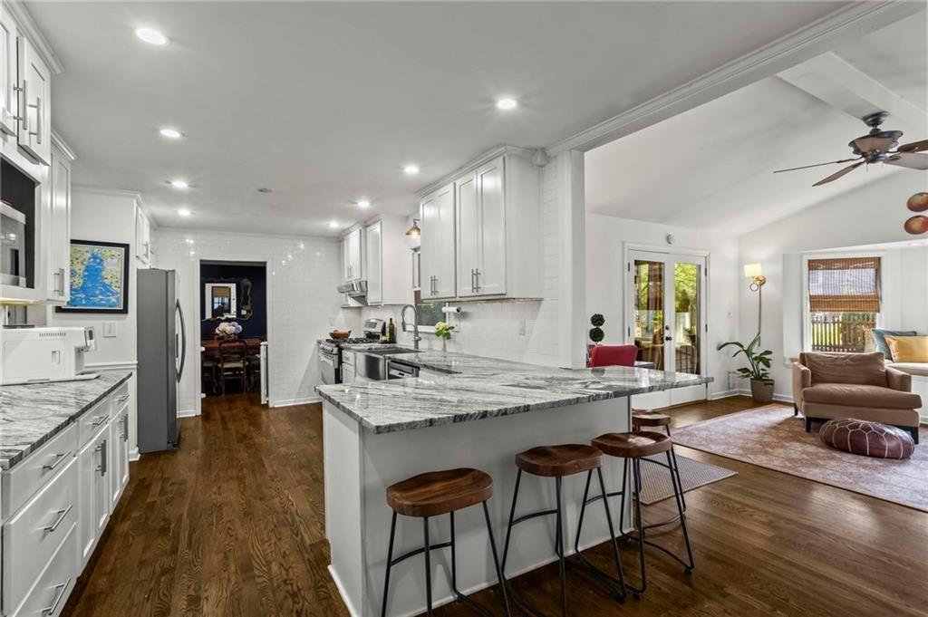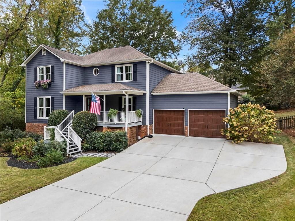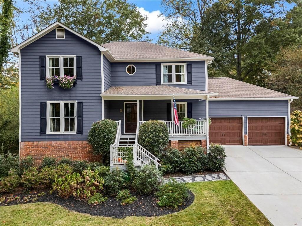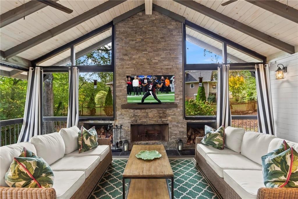 Beautifully renovated home in Walton HS offers exceptional curb appeal and a thoughtfully designed floor plan, nestled in an established neighborhood just 2 miles from Canton Street and the Chattahoochee River boardwalk. This well appointed residence combines classic charm, comfort, and great entertainment spaces. The pride and joy of this property is an expansive covered deck with a stacked stone fireplace as the focal point. Removable screens make pollen season a breeze. It is truly an outdoor living room used all year around. Inside, the sun-filled living room flows seamlessly into the dining area, which opens to the covered porch—creating a fantastic indoor-outdoor connection. A second set of double doors leads from the porch into a cozy keeping room/den, which continues onto an open-air patio, perfect for grilling and al fresco dining. In the center of it all, the workhorse of a kitchen has been renovated with white shaker cabinets, granite countertops supplying ample counter space and storage. Upstairs the oversized owner's suite is a peaceful retreat, featuring space for a sitting area, two walls of windows, and a luxurious newly renovated en-suite bath thoughtfully designed with custom cabinetry, quartzite countertops, and a classic timeless tile, this space offers an upscale experience at home. All secondary bedrooms are generously sized, filled with natural light, and freshly painted in neutral tones. Each secondary bathroom has also been renovated with fresh and modern finishes. The finished terrace level offers incredible flexibility with a spacious living area, a dedicated home office, guest bedroom, and full bath with a double vanity. A floor-to-ceiling movie screen and new LVP flooring make this space perfect for media, work, play or guests. Recent updates include new double hung windows, a newly poured driveway with parking pad, new garage doors, a professionally landscaped front yard, mahogany front door with beveled glass, and a level backyard perfect for play or pets. Enjoy swim/tennis amenities, low Cobb County taxes, award-winning schools, and quick access to GA-400. This home truly has it all—luxury, location, and lifestyle!