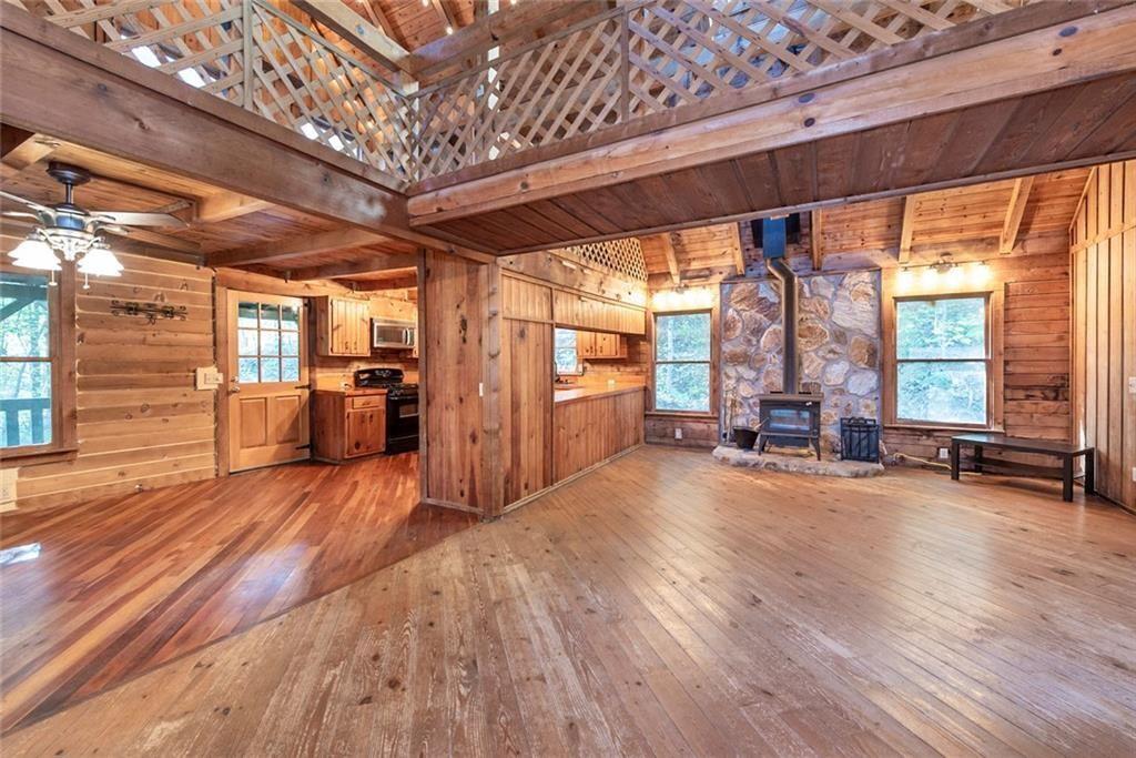 Rustic Mountain Cabin on 2.3 Acres | Burnt Mountain Estates This is your chance to own the rustic mountain cabin you’ve been dreaming of! Tucked away on 2.3 wooded acres including an additional lot, this charming 2 bedroom, 3 bath Log Cabin is located in the gated community of Burnt Mountain Estates, straddling the scenic Pickens and Dawson County line. Inside you will see the authentic log walls, open floor plan, and an abundance of natural light. The main level features a warm and welcoming great room, the kitchen with plenty of cabinets and counter space, dining area, and a spacious en-suite bedroom. From here, walk out onto the huge screened porch—perfect for relaxing, listening to nature, and taking in the peace and quiet of this beautiful mountain setting. Stay cozy year-round with a newer wood stove plus central heat. Upstairs, a large loft area offers flexibility for an office, reading nook, or guest space, along with a second bedroom and private bath. The full basement is a rare find in a cabin, complete with a finished full bath and plenty of room to use as a workshop, storage, or future living area. Recent updates and improvements make this home move-in ready—just bring your vision and love for mountain living. Whether you’re looking for a primary home or weekend retreat, this one checks all the boxes. See listing docs for list of updates. Arrow exterminators inspected late October and no evidence of termites. Letter provided upon request.