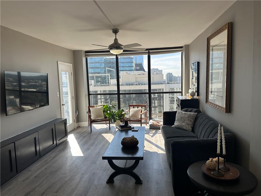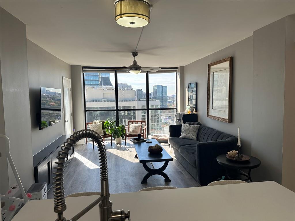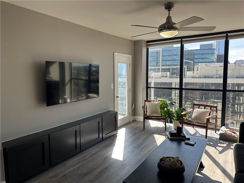 Live where your feet—not your car—take you everywhere. From the moment you step inside this 36th-floor condo, Atlanta unfolds like a personal panorama. Floor-to-ceiling windows flood the living room with natural light and frame breathtaking 180-degree views—from Midtown's skyline stretching all the way to Mercedes-Benz Stadium. Step onto your balcony, feel the breeze, and watch the city pulse beneath you. Inside, the open layout flows effortlessly, with thoughtful details at every turn. The owner's suite is your personal sanctuary—walk-in closet, updated bathroom, and direct balcony access for morning coffee rituals or unwinding under the stars. The second bedroom comes with its own full bath and spacious closet with built-in shelving. The kitchen delivers: refrigerator, range, microwave, and LG washer/dryer combo. Built-in cabinets throughout the hallway give you extra storage without sacrificing style. But here's where this building really shines—amenities that actually get used. Fully equipped fitness center, pool, basketball court, tennis and pickleball courts, indoor racquetball, billiards room, and private meeting spaces. Everything you need to move, relax, or connect with neighbors is already here. Now step outside. This is where the magic happens. Arts MARTA Station sits right across the street—your ticket to the entire city without fighting traffic or circling for parking. Walk to The High Museum for a Saturday afternoon. Catch a show at the Woodruff Arts Center or Alliance Theatre. Whole Foods is your neighborhood grocery store. Colony Square is where you grab dinner, see a movie, or meet friends for weekend brunch. Cross the bridge and Atlantic Station opens up—shops, restaurants, bars, and entertainment all within an easy stroll. Forget the car. Your commute is a walk. Your errands are a walk. Your social life is a walk. Everything that makes Atlanta incredible is literally at your feet. Whether you're catching sunrise with coffee in hand or watching the city lights flicker on at dusk, this home puts you right in the center of it all—36 floors up, but always connected.