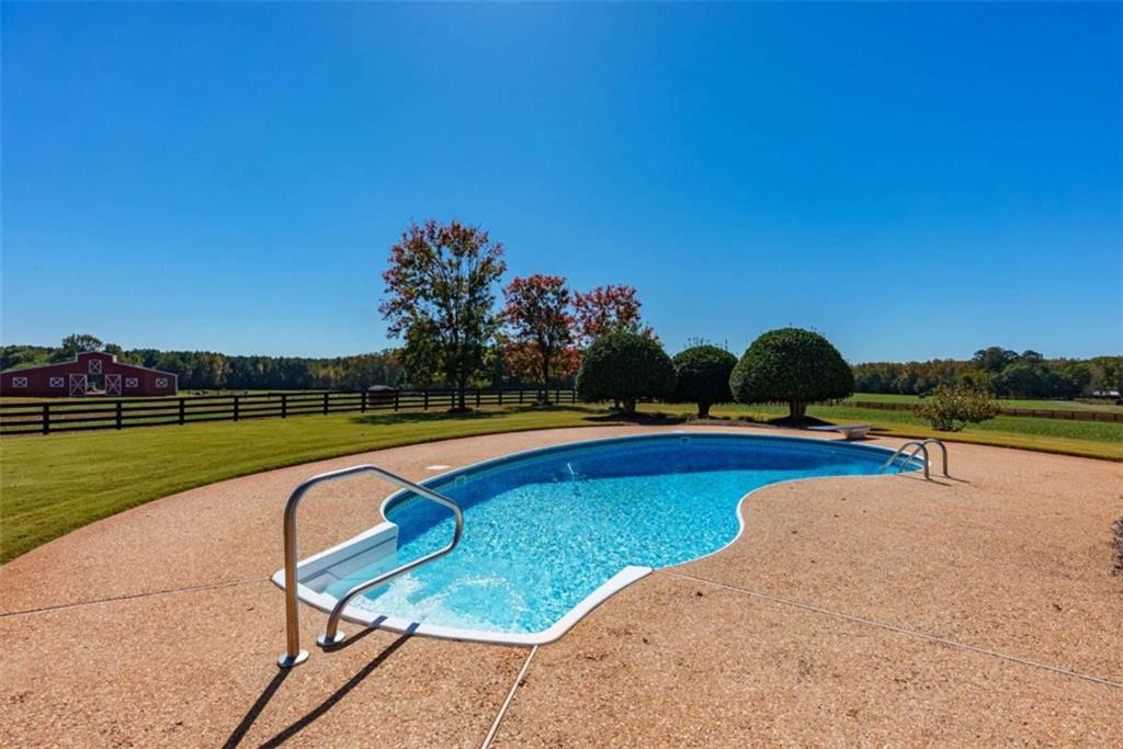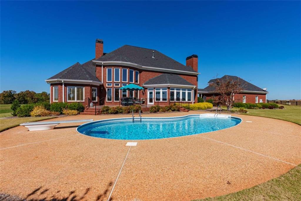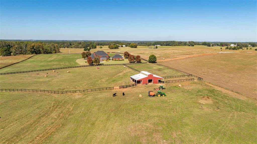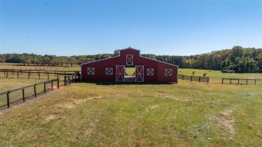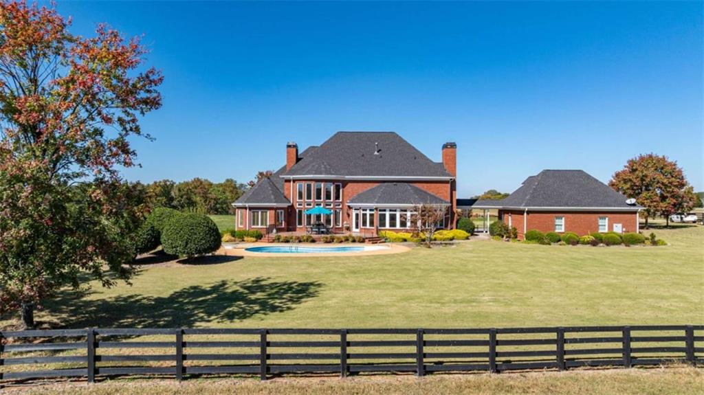 Stunning 33.47 Acre Equestrian Estate is located in a beautiful area of Madison just north of Hard Labor Creek State Park. This custom all brick home is nestled on a knoll overlooking some of the most beautiful gently rolling pasture land in Morgan County. The elegant gated entrance and paved driveway lead to a home featuring a 2 story foyer with striking staircase and a 2 story great room with floor-to-ceiling windows offering incredible views of the backyard, pool, pastures, horse barn and woodlands. Along the back of the house, floor-to-ceiling windows offer more unobstructed views through the chef's kitchen and keeping room. The kitchen features all stainless steel appliances, a large center island with sink, a breakfast bar, a dining area, gas range, and double wall oven. It opens to a keeping room with fireplace. The home is perfect for entertaining, with a large dining room and butler's pantry, ideal for hosting family and friends for the holidays. The main level also includes a vaulted ceiling office, half bath, extra large laundry room and primary suite. The primary features spacious tiled master bath with separate jetted tub, large glass enclosed tiled shower and 2 separate extra long vanities. Upstairs are 3 large guest bedrooms with walk-in closets. 1 guest bedroom features a private full bath and the other 2 bedrooms share a Jack and Jill full bath. This home features an attached 2 car garage as well as a detached 2 car garage. The lovely established landscaping, porches, patios, 4 board fenced and cross fenced pastures and 5 stall horse barn with tack/feed room and shed roofed tractor/hay storage area complete this wonderful property. It is a must see! Estate Sale Nov 7,8,9th 9am-4pm. Agent On Duty Fri Nov 7th & Saturday Nov 8th noon-4pm
