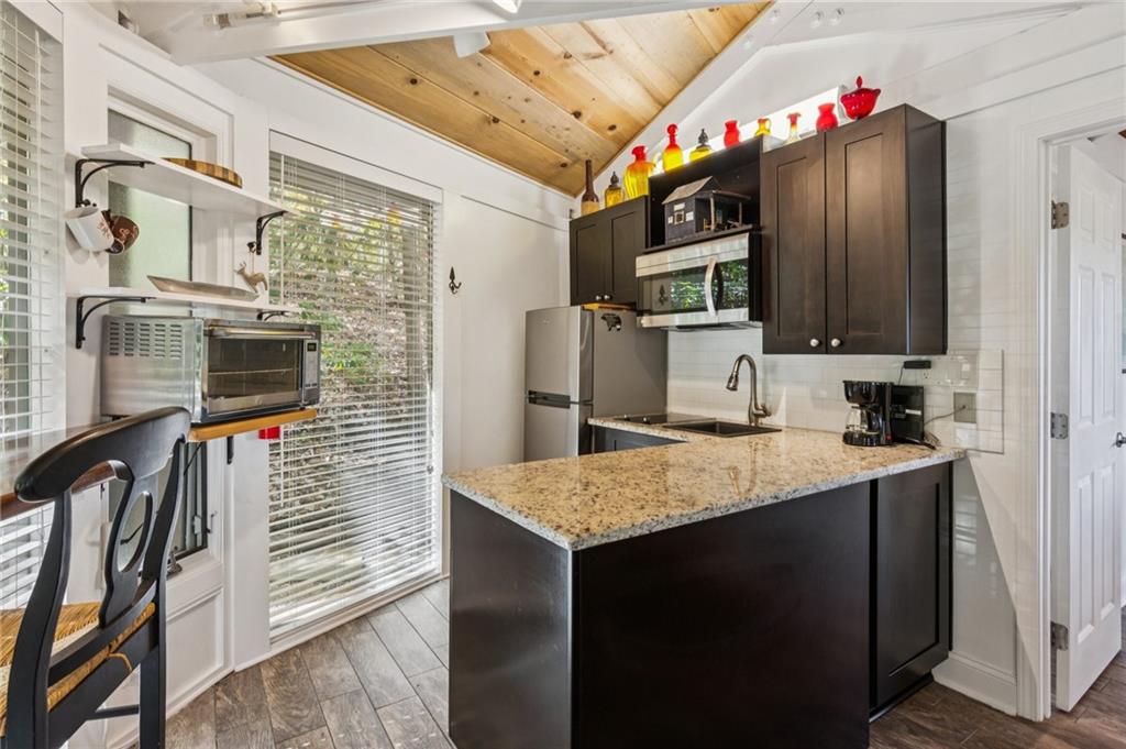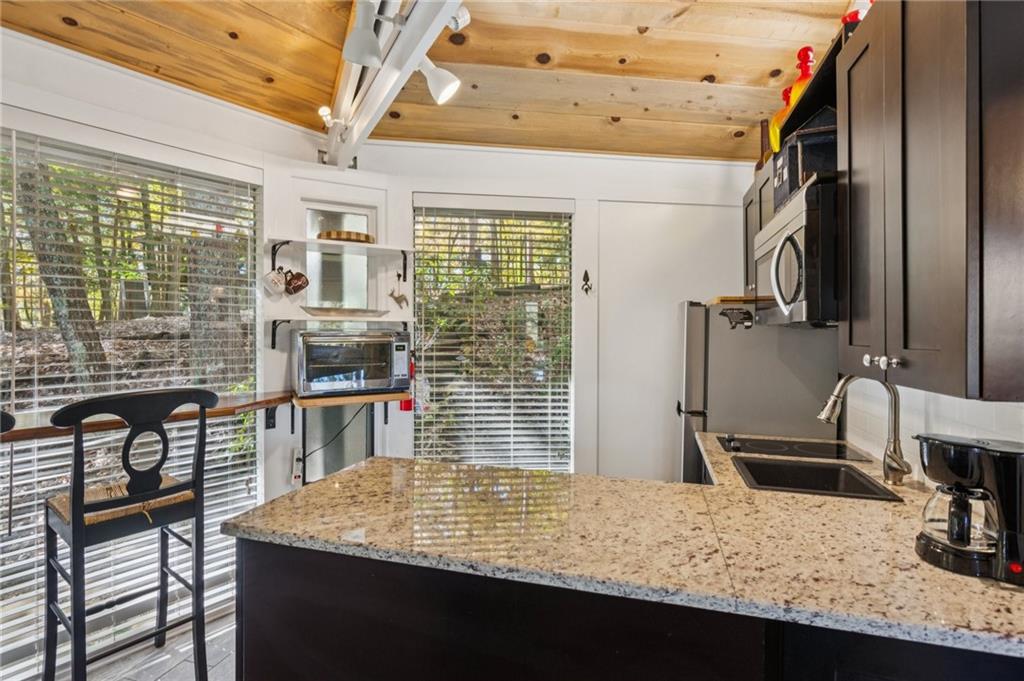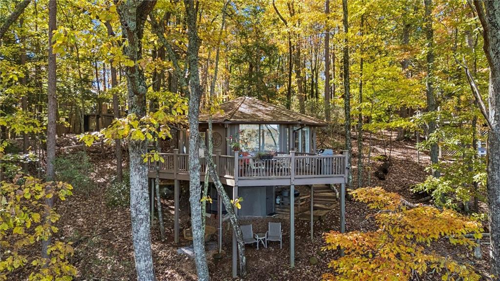 Experience tranquility and breathtaking views at this beautifully renovated one-bedroom, one-bath chalet overlooking Lake Petit and the North Georgia Mountains. Wake up each morning to the sunrise reflecting off the lake and enjoy peaceful evenings surrounded by nature. Inside, you’ll find a completely updated and tastefully furnished chalet—everything is brand new and designed for comfort. The bedroom features a king-size bed, and the living room includes a queen sleeper sofa for visiting guests. The modern bathroom offers a walk-in shower, and the fully equipped kitchen has everything you need—just bring your favorite food and wine. Relax in the cozy living room with a 54-inch Smart TV for streaming your favorite shows, or unwind in the bedroom with a 32-inch TV. Step out onto the spacious deck with ample seating and soak in panoramic views of Lake Petit and the surrounding mountains—perfect for morning coffee or evening wine. There is also a spacious laundry room in the lower level and the home is being sold fully furnished so all you need is your toothbrush! Located within the gates of Big Canoe, a premier mountain resort community just one hour north of Atlanta, you’ll have access to over 8,000 acres of pristine woodlands, meadows, lakes, and streams. Big Canoe offers world-class amenities, including a newly renovated Clubhouse with in and outdoor dining, championship golf courses, indoor and outdoor tennis courts, a fitness center with indoor pool, marina with pontoon, kayak, and paddleboard rentals, a trout-stocked fishing lake, over 20 miles of scenic hiking trails and wildlife abounds in this conservation community—you may spot deer, wild turkey, and other native animals right outside your door. This cozy mountain escape is perfect for a weekend getaway, full time residence or investment opportunity.