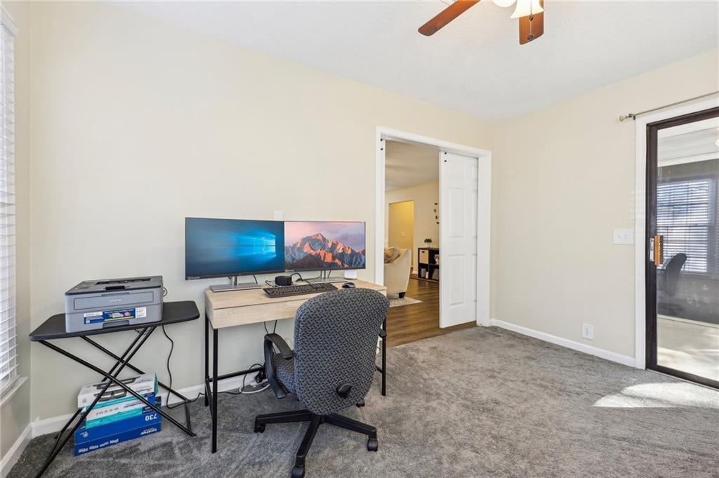 Discover this lovely 2 bedroom, 2 bathroom top-floor condo ideally located just steps from Marietta's Laurel Park. Designed for both comfort and style, the bright and open living space features large windows providing a generous amount of natural light and a cozy fireplace for those relaxed evenings. This roommate-style floor plan features a spacious dining area, sleek kitchen with ample storage and an enclosed den awaiting your personal touch and vision. The primary bedroom offers the ultimate retreat with a private en suite bathroom. The covered balcony is the perfect space for your morning coffee or unwinding after work. Don't miss out on this perfect blend of convenience, comfort and a low-maintenance lifestyle in the heart of Marietta.