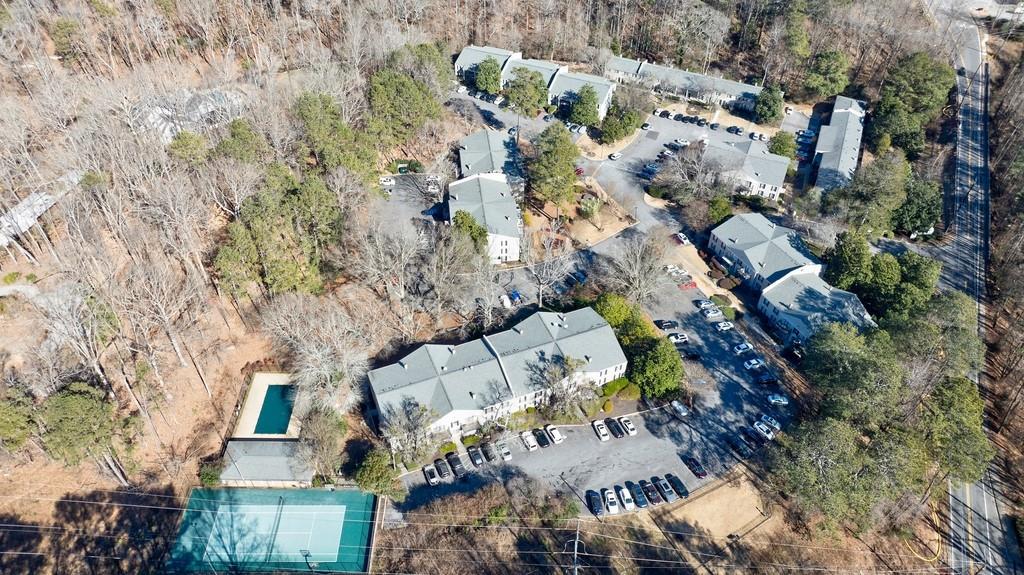 Welcome to Essex House, a sought-after community offering the country club like amenities, including a pool, fitness center, tennis courts, pickleball, and a dog park—all set amidst beautifully landscaped grounds. Conveniently located inside the perimeter, you'll enjoy easy access to I-75 and I-285. You're just minutes from The Battery, The Galleria, and Cumberland Mall. The Chattahoochee Nature Park is within walking distance for outdoor enthusiasts, perfect for walking, biking, kayaking, fishing, or tubing down the river. This top-floor unit is a rare find overlooking new landscaping! Featuring a cozy wood-burning fireplace and serene wooded views, it offers privacy and tranquility. Unlike many units, this one does not face Paces Mill, ensuring a peaceful living experience. French doors lead to the balcony, perfect for relaxing outdoors. The primary bedroom includes an ensuite bath with a shower/tub combo. With a coveted Cobb County address in Atlanta, you'll benefit from some of the lowest property taxes in the Greater Atlanta Area. Combined with the convenience of walking to Vinings Jubilee for exceptional shopping and dining, this home truly offers the perfect blend of luxury, location, and value. Don't miss the opportunity to own this turn-key home in an ideal setting!