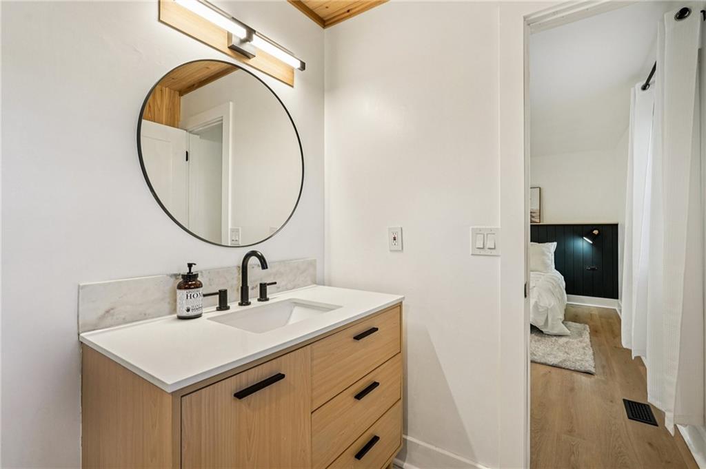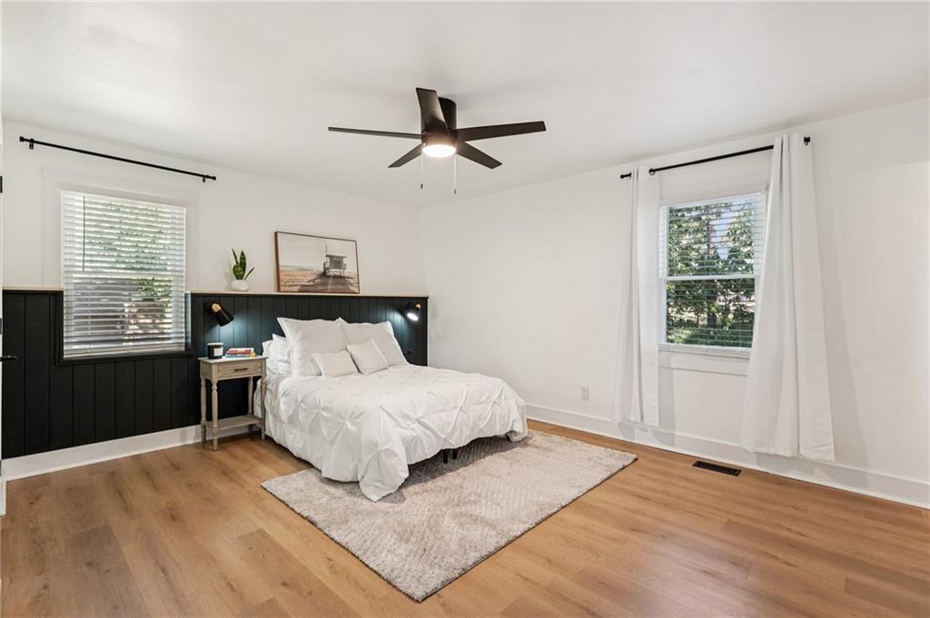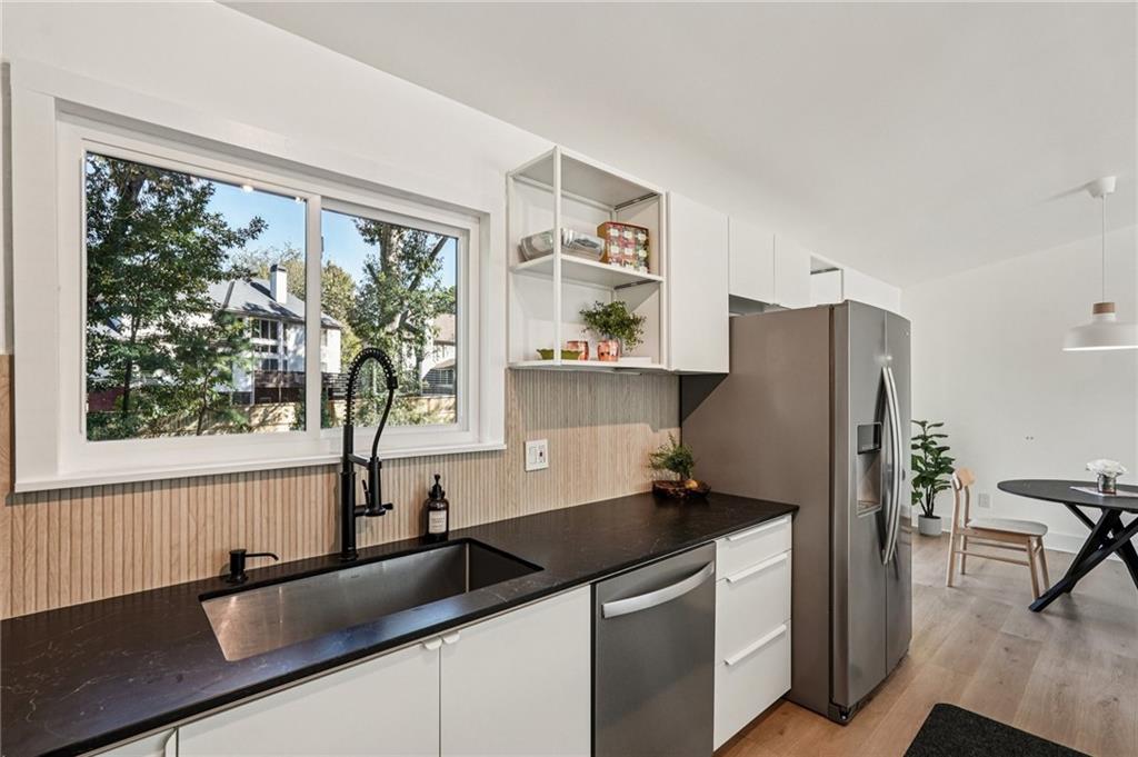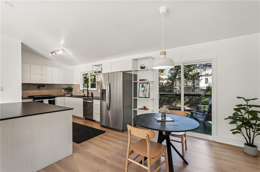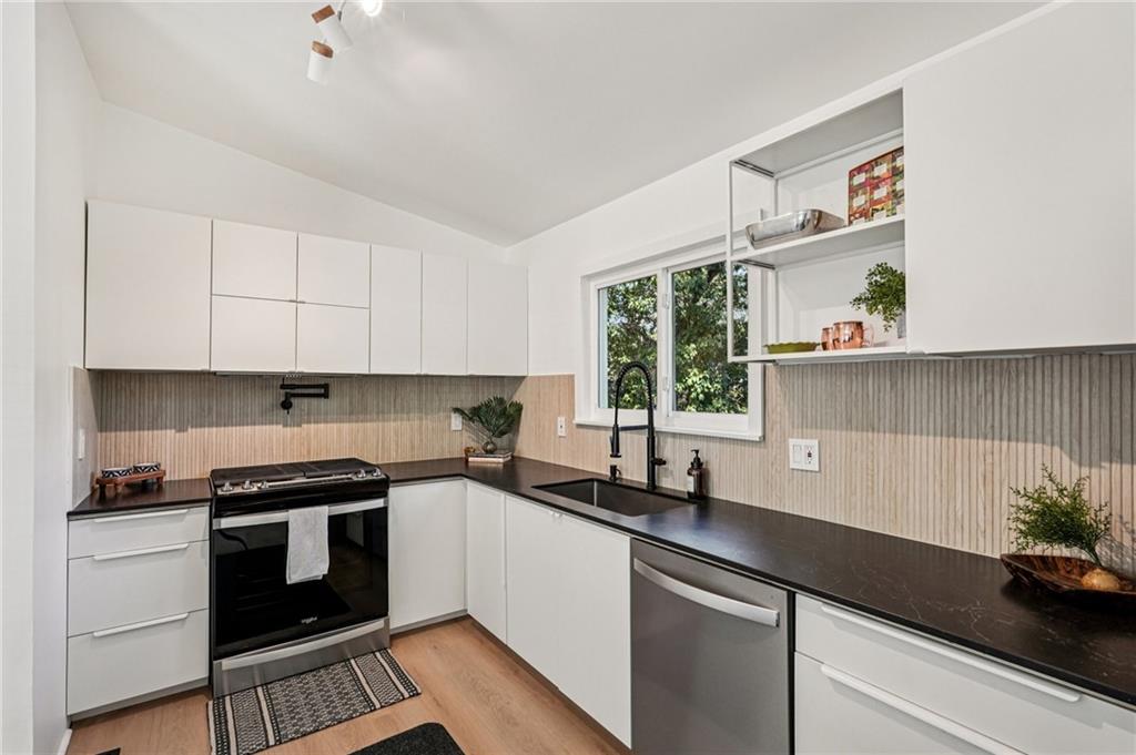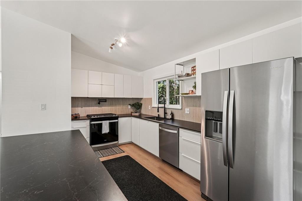 Discover modern living with classic charm in this fully renovated 1985 contemporary home in the heart of Smyrna. Perfectly positioned just steps from the Silver Comet Trail—with neighborhood access—and minutes from local favorites like 7Brew, Heritage Park, the Historic Covered Bridge District, and an array of shops, restaurants, and amenities, including Wellstar Cobb Medical Center. From the moment you enter through the split foyer, the home welcomes you with an airy open-concept layout that seamlessly connects the living room, kitchen, and dining area. Every detail has been refreshed, including new flooring, kitchen, bathrooms, HVAC system, windows, and a beautifully finished basement. The main floor offers three spacious bedrooms, including the primary suite with a modern stylish bathroom, plus two additional bedrooms that share a contemporary, recently renovated hall bath. The lower level features a versatile bonus room and a fourth bedroom with a convenient half bath—ideal for guests, a home office, or recreation space. Outdoor living shines here. Step out onto the back deck overlooking a private backyard perfect for entertaining or unwinding. Gather around the fire pit for fall festivities, or enjoy friendly competition on the patio designed for cornhole and casual get-togethers. With a two-car garage, turnkey renovations, and a location that balances quiet neighborhood living with quick access to Smyrna’s best destinations, this home delivers the perfect blend of style, comfort, and convenience.