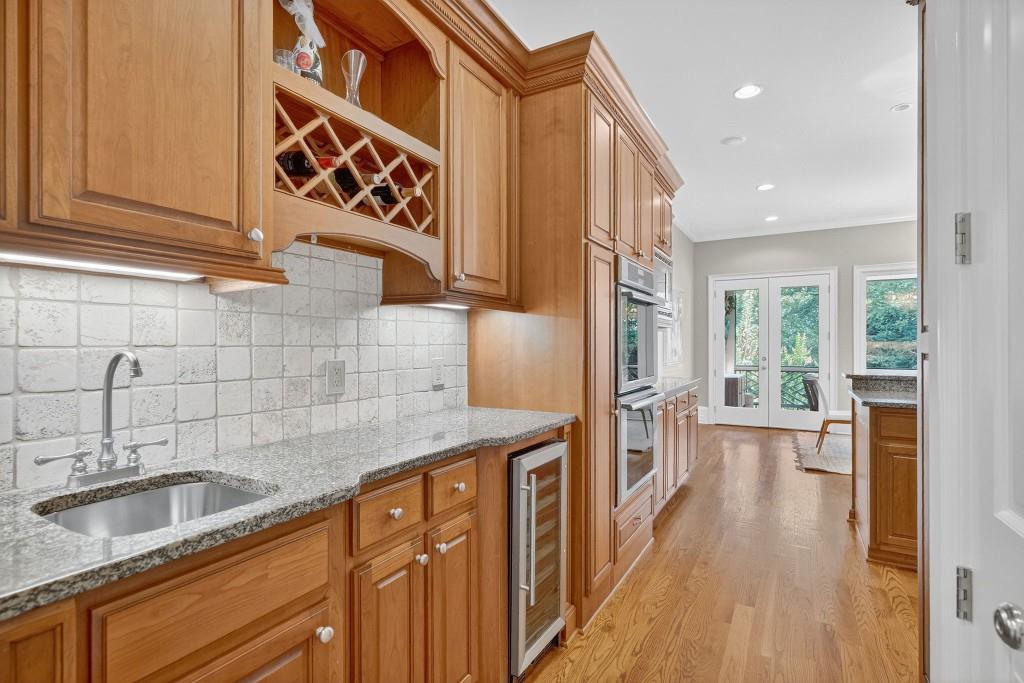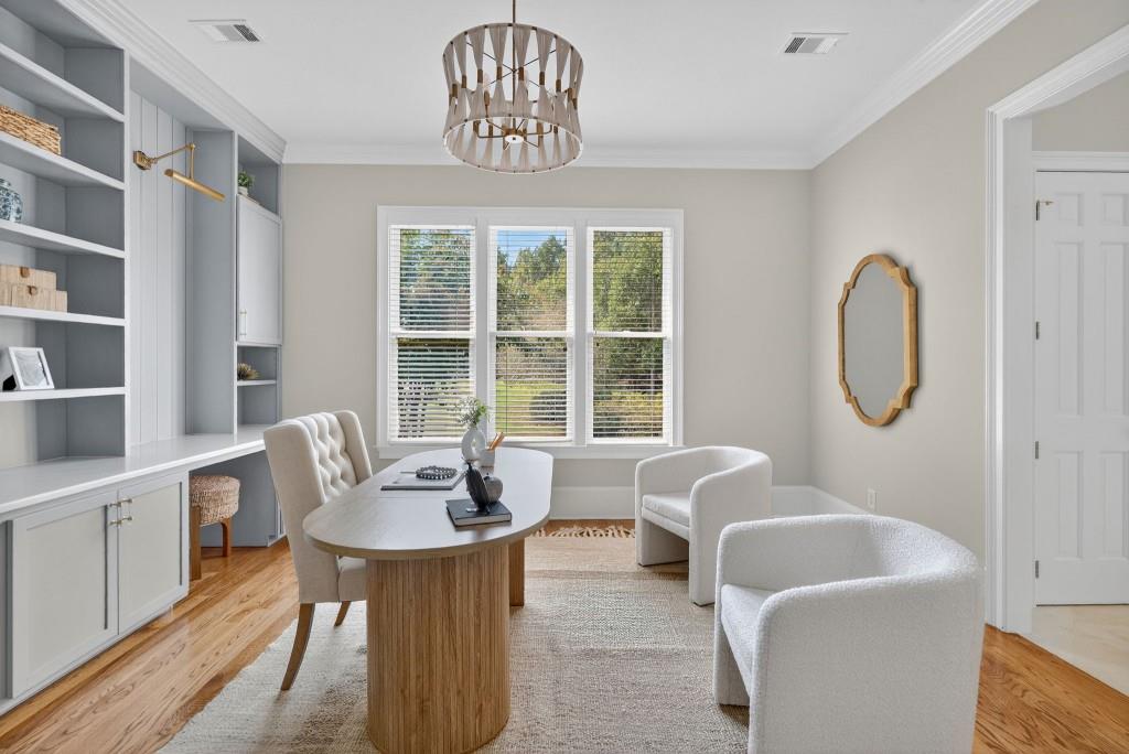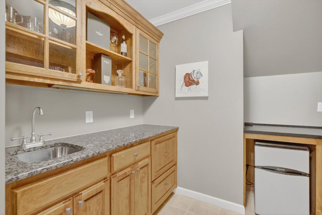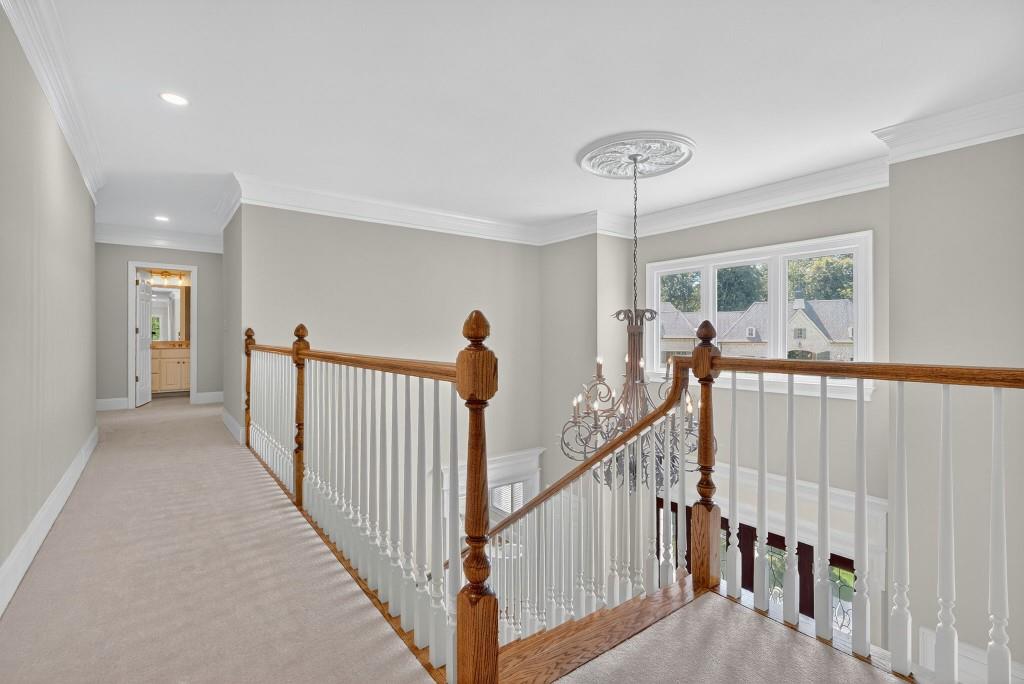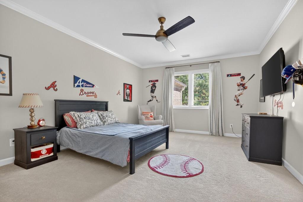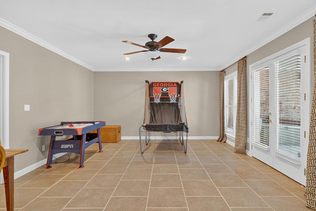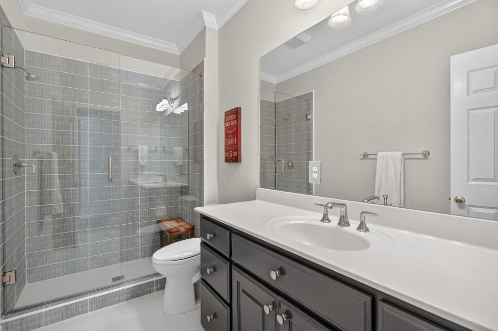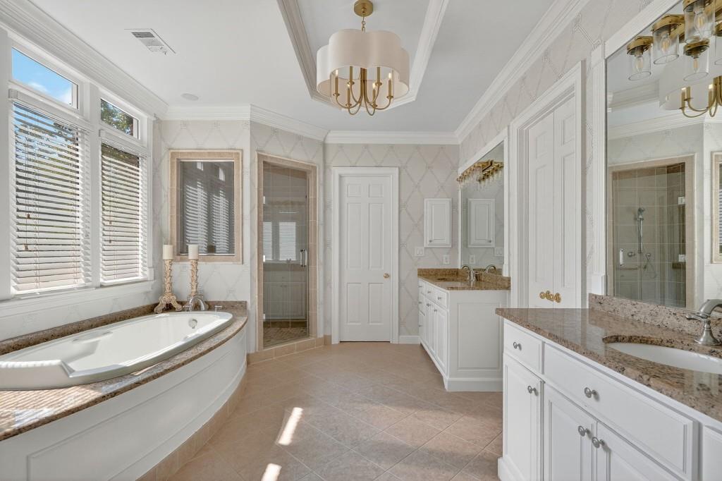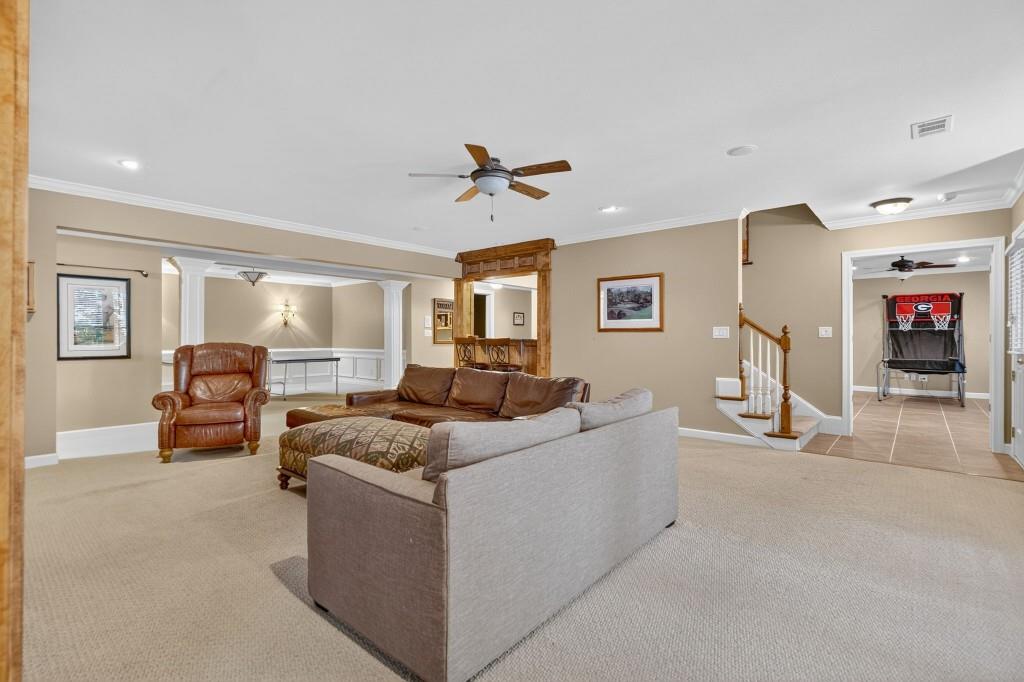 Experience resort-style living in this elegant estate on a private cul-de-sac in the highly sought-after community Winfield on the River, a one-of-a-kind gated neighborhood nestled on the serene banks of the Chattahoochee River. With its timeless brick architecture and natural landscaping, this home is a special retreat with luxurious amenities and exceptional indoor-outdoor living on +/- 0.70 acres. Step inside to a grand two-story foyer flanked by a formal dining room and a flexible office/library/den space-perfect for both elegant entertaining and everyday living. The expansive ceilings and wall of windows in the family room flood the space with natural light, while the open-concept layout flows seamlessly into the gourmet kitchen, complete with high-end appliances, abundant cabinetry, and an entertainer's island. Just off the kitchen, a spacious screened porch and deck overlook your private and spacious backyard oasis. Outside, your own backyard paradise awaits, featuring a stunning saltwater pool with a waterfall, framed by lush, manicured landscaping for maximum privacy and relaxation. The main level owner's suite is a peaceful retreat with a spa-like ensuite and serene views. Upstairs are three spacious bedrooms, three bathrooms, and a versatile bonus room-ideal for a playroom, teen suite, or additional living space. A large unfinished space with a private entry also has the potential to be an additional private suite for guests or multigenerational living. The daylight terrace level is a versatile space for everyday entertainment or hosting guests, offering a full pool bath, tiled playroom with closet, expansive rec room, gym, private office or 5th bedroom with full bath, fireside family room with wet bar, workshop, and extensive storage. Off the terrace level is an additional large covered patio space. Bordering a beautiful river across from a national park with recreation space and hiking trails, the neighborhood feels private and secluded, yet boasts proximity to premier shopping and dining at The Forum and top-rated public and private schools, including Johns Creek High School, Autrey Mill Middle School, Medlock Bridge Elementary School, Perimeter Christian School, and the Wesleyan School. The Atlanta Athletic Club is just minutes away. This home truly combines classic elegance with modern luxury in one of Johns Creek's most desirable gated communities.