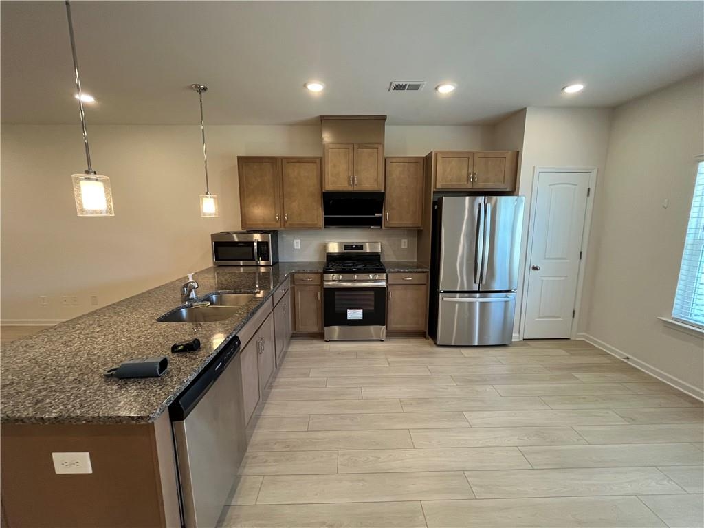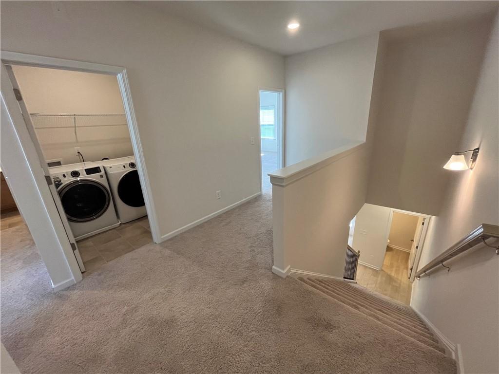 Lowest price in the community! Move in Ready ! Only half a year old, looks like new. Enjoy lots of natural light. The spacious kitchen has granite countertops with beautiful cabinetry and an upgraded stainless steel appliance package. Upgraded Vinyl Plank flooring adorns the first floor. Covered back patio great for outdoor entertaining. A wide staircase with iron rails leads to the secondary bedrooms and owner's suite. The owner bath has a double vanity, linen closet and separate tub and shower. Nine foot ceiling heights on both levels. Lawn maintenance is included in your HOA! Just minutes from Downtown Sugar Hill and Lake Lanier! Close to shopping, top-rated schools, and scenic trails, this one checks every box. Free new powerful range hood, Samsung washer and dryer.