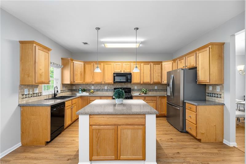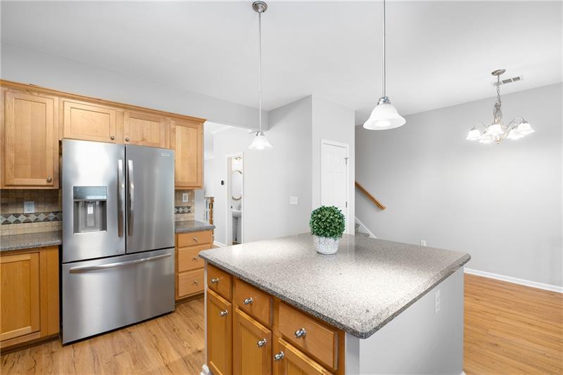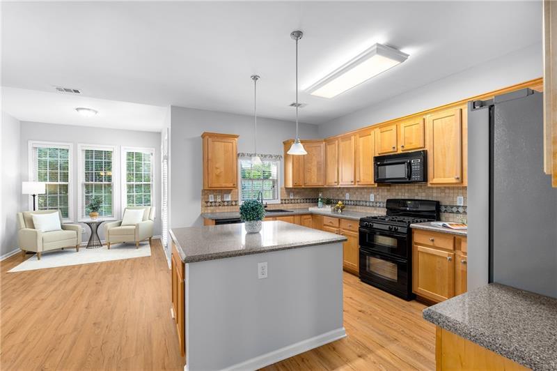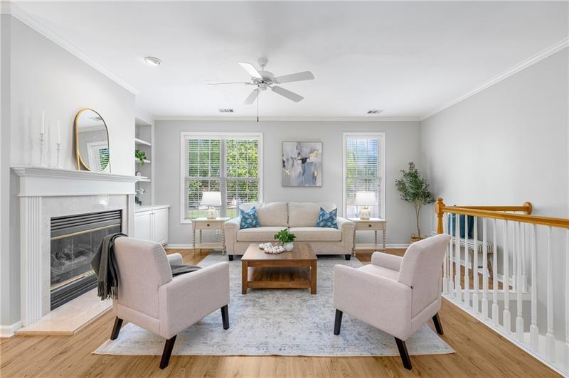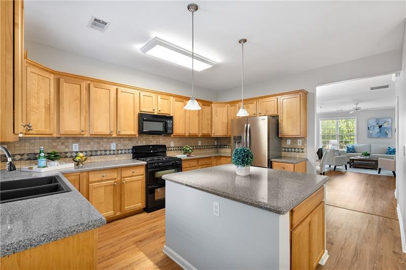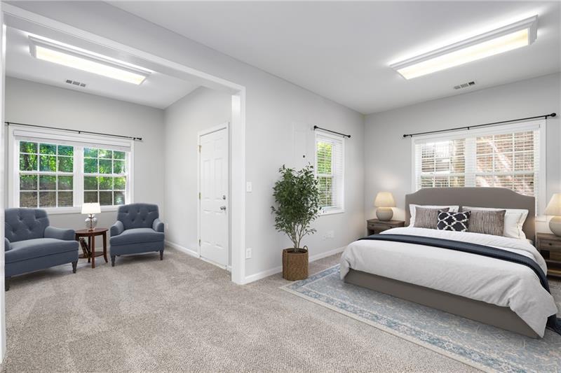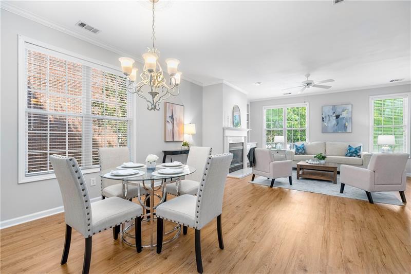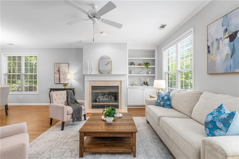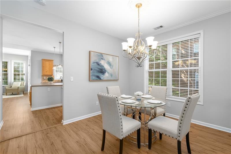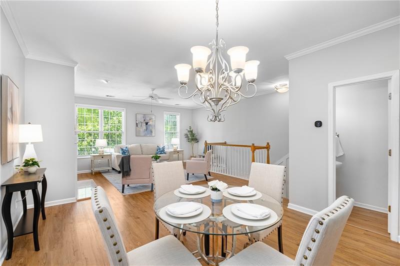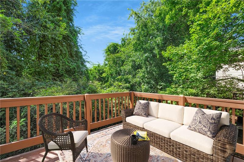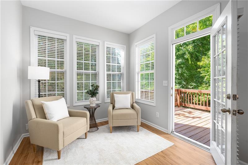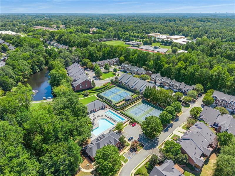 Welcome Home to this sought-after end-unit townhome in gated Heritage at Roswell offering over 2,500 sq. ft. of living space. This 3 bedroom, 3.5 bath home features an open floor plan with hardwood floors, high ceilings, and abundant natural light. The spacious kitchen opens to a keeping room/flex space that flows directly to the private deck - perfect for indoor-outdoor living, casual dining, or a cozy second gathering area. Upstairs, the oversized primary suite includes a spa-like bath and walk-in closet, along with one additional guest bedroom and full bath. The lower level offers a third bedroom with full bath that can flex as a private guest suite, home office, or large additional living space. Heritage at Roswell provides gated security and low-maintenance living with resort-style amenities,including two pools, tennis courts, pond, walking trails, and a clubhouse. All just minutes from Canton Street dining, Avalon, and GA-400.
