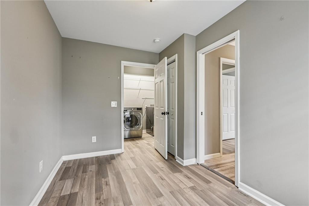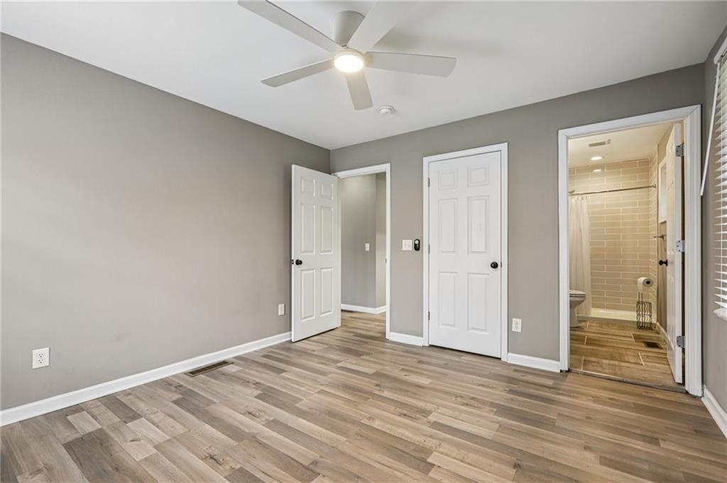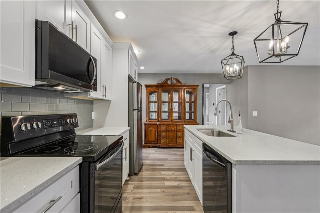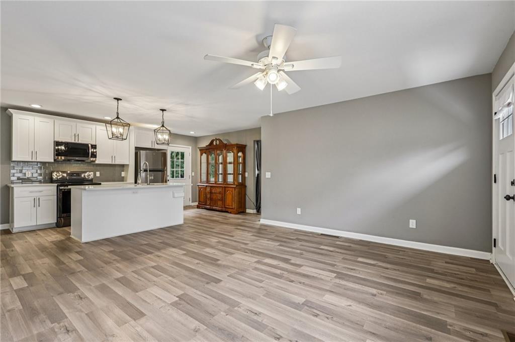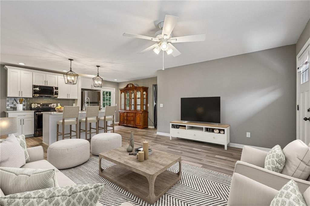 Updated Mid-Century Modern Comfort with Southern Charm! Beautifully updated with bright, open spaces and timeless touches, this home offers both style and practicality in a prime Marietta location. Step inside to discover gorgeous, easy-to-maintain laminate wood floors that flow through the sunlit living room. The on-trend kitchen impresses with stylish light fixtures, a spacious island with seating, stone countertops, and a classic tile backsplash—perfect for everyday living or entertaining. The spacious primary suite features an updated en-suite bath with a walk-in shower. Two secondary bedrooms and a full hall bath provide room for everyone! Outside, enjoy quiet mornings and peaceful evenings in a well-maintained yard fenced on three sides. Blue Jays and Cardinals flit among the trees as the sun rises over the backyard and sets behind the trees in front. The neighborhood has no HOA and offers true convenience—just 6 minutes to I-75, 8 minutes to Marietta Square, and 13 minutes to I-285. You’re close to top-rated schools (Sprayberry high school is a Georgia Blue Ribbon School of Excellence), Kennesaw Mountain, the Battery, and all that Atlanta has to offer. Don't miss your opportunity to book your tour today!