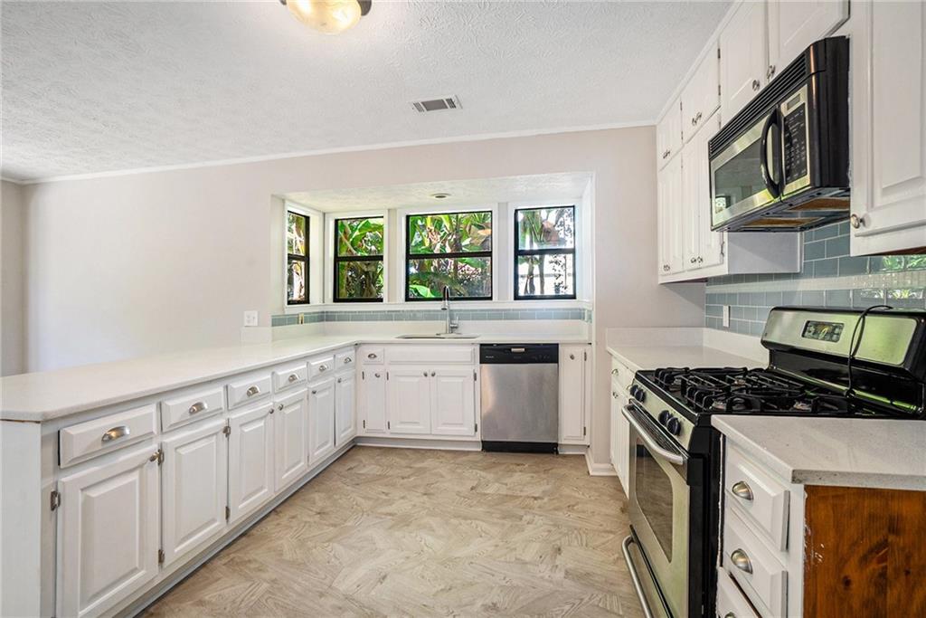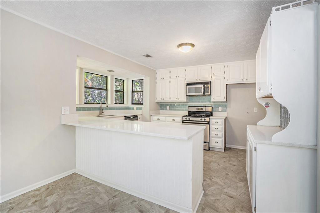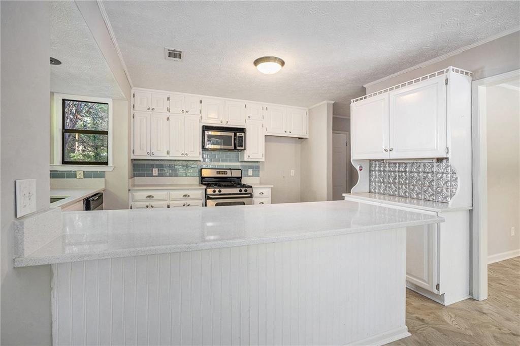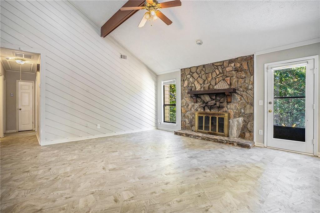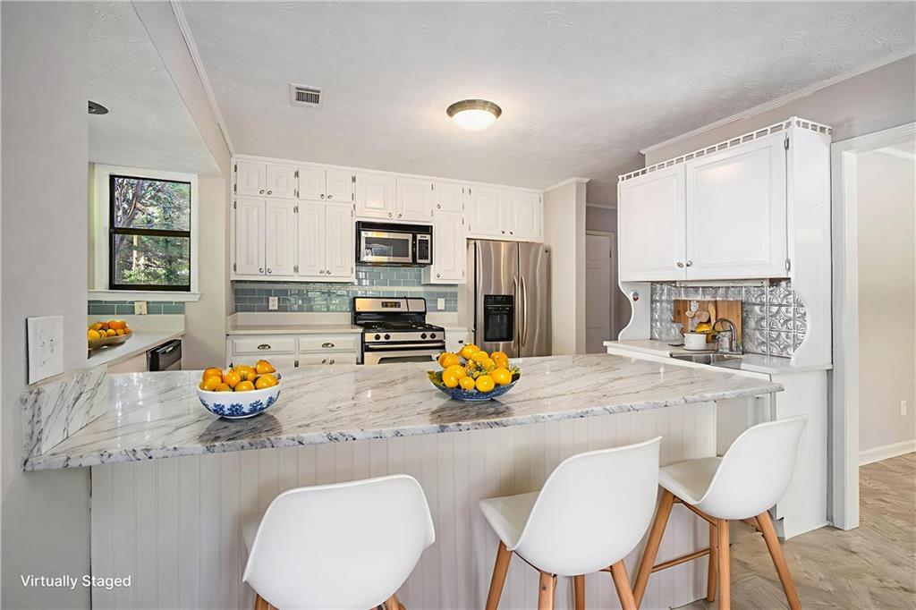 Don’t Miss Out on This Modern Mid-Century Gem! Why just scroll when you could own this stunningly remodeled 3BR/2BA mid-century ranch in the heart of Stone Mountain? Every inch of this home shines with updates — from the new LVP floors to the all-white kitchen with quartz countertops, eat-at bar, and stainless steel appliances. Start your mornings in the bright bay window breakfast nook, and unwind in the vaulted living room featuring wood-beamed ceilings and a gas brick fireplace that brings instant character and warmth. The owner’s suite is your private retreat with an en suite bath and walk-in closet, while two additional bedrooms and a refreshed hall bath offer space and style for everyone. Outside, enjoy your private backyard, patio, and welcoming front porch—perfect for entertaining or relaxing. Located minutes from Stone Mountain Park, local eateries, shopping, and with easy access to I-285 and Hwy 78, this home delivers both lifestyle and location. Remodeled, move-in ready, and priced to move — this is the one buyers will wish they hadn’t waited on!