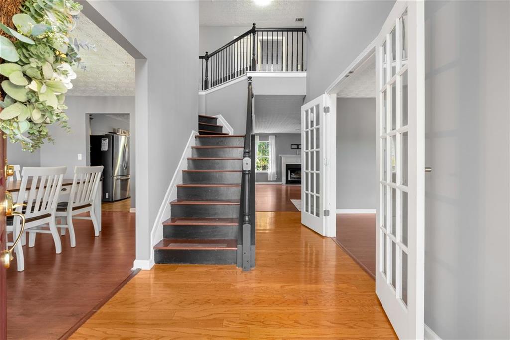 Nestled on a tranquil cul-de-sac in an esteemed Buford locale, this meticulously maintained home offers exceptional living, beginning with its beautiful curb appeal and charming, full-width front porch. Inside, the residence features a bright, open floor plan grounded by gleaming hardwood floors on the main level. The home is truly move-in ready, showcasing crisp new paint throughout and luxurious new carpeting upstairs. The second floor hosts four generously sized bedrooms and two full bathrooms, including an oversized primary suite designed for comfort and privacy. Extending the functional living space is the fully finished basement, which provides two additional rooms, highlighted by a dedicated home theater complete with surround sound—an ideal setup for modern entertainment. EC charger installed in the garage. Outdoors, enjoy serene moments on the private back deck that overlooks a spacious, level backyard, perfect for leisure and outdoor activities. Strategically located for convenient access to local amenities, shopping, and major commuter routes, and zoned for top-rated schools, this property truly offers a premium lifestyle. 3600 Bogan Mill Rd represents an outstanding opportunity for sophisticated, turn-key living.