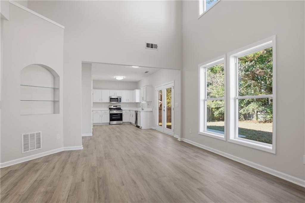 Beautifully updated 3-bedroom, 2.5-bath home featuring fresh interior paint, new LVP flooring, and stylish light fixtures throughout. The open kitchen offers white cabinets, new quartz counters, and a stainless steel appliance package including range, microwave, and dishwasher. Enjoy new carpet, refreshed bathrooms, and a spacious living room with high ceilings, large windows, and a cozy corner fireplace move-in ready with modern charm!