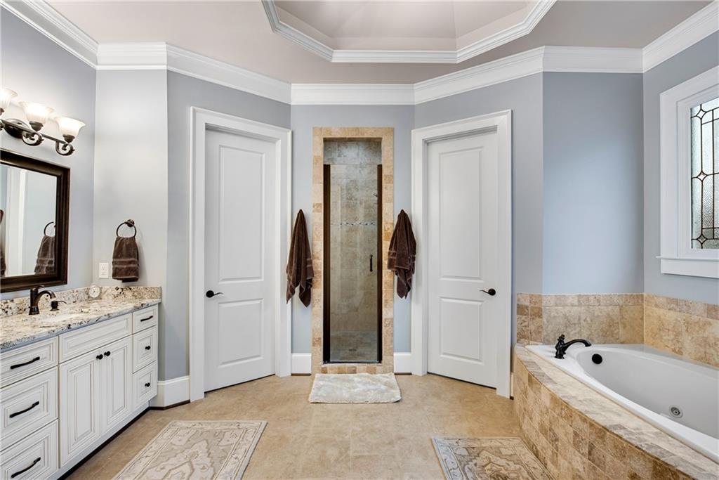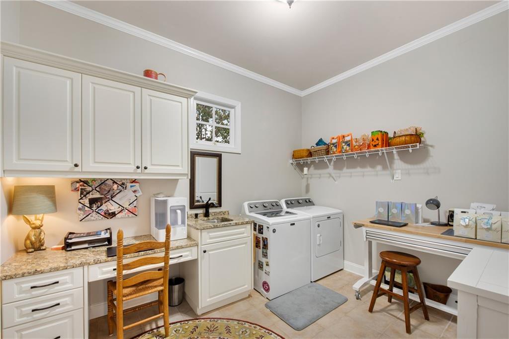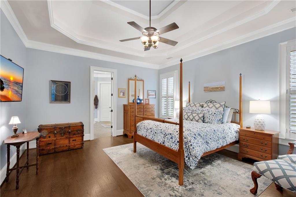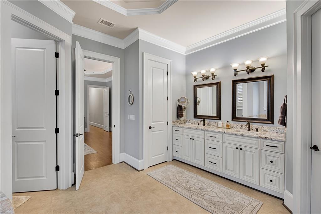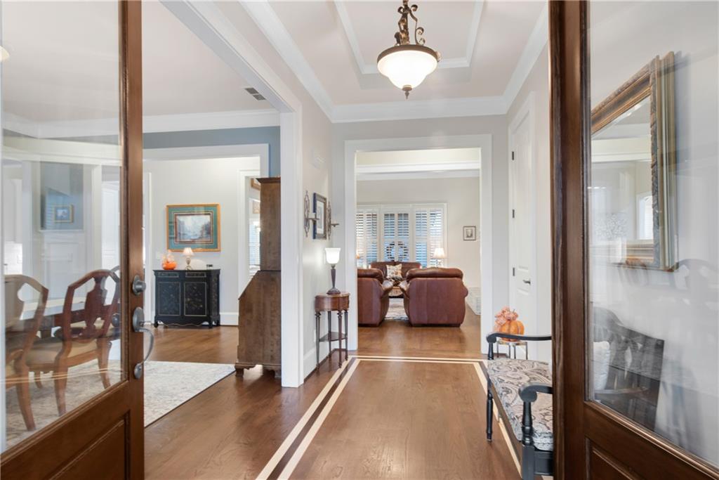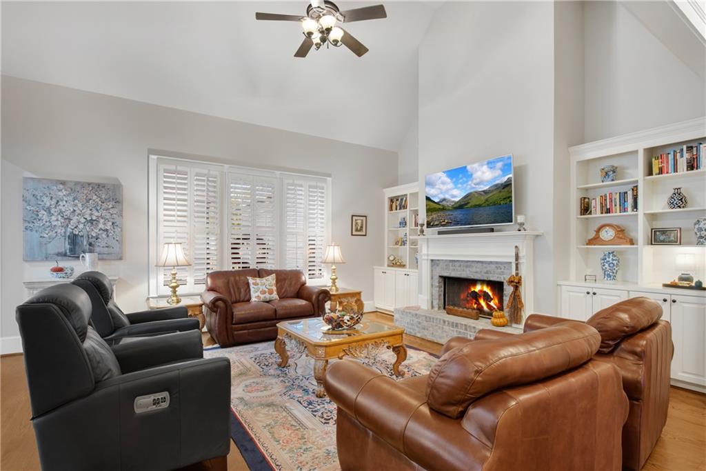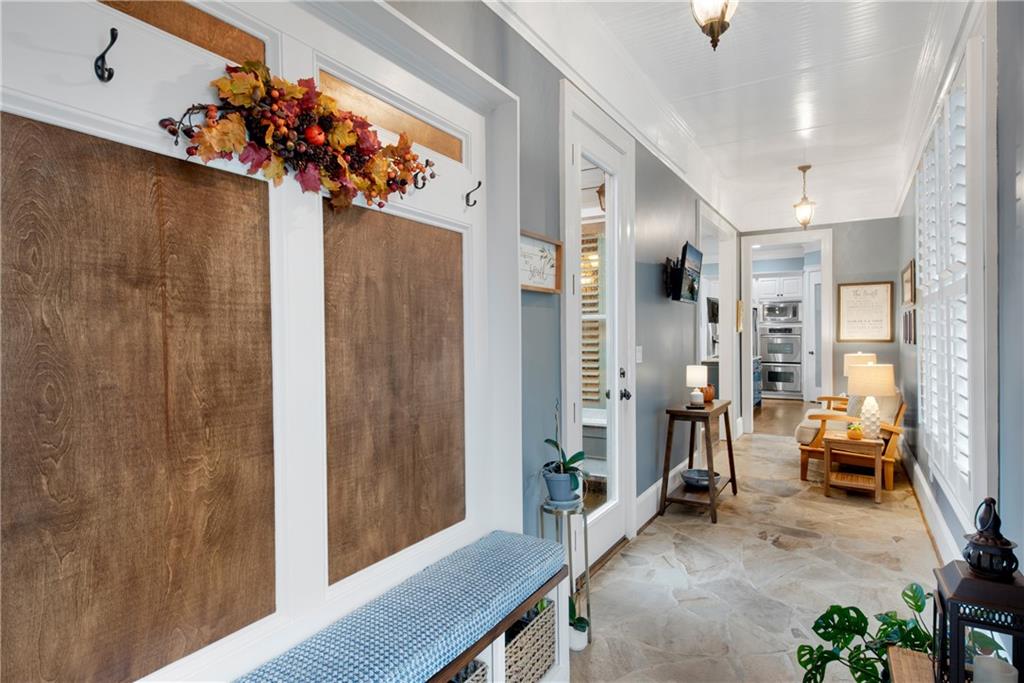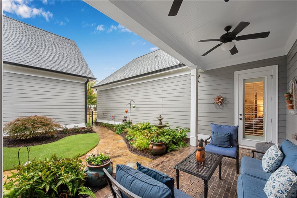 LESS than 1 year old roof! Easy lock & go flexibility in the Creekside section of Chateau Elan where lawn maintenance is included in the HOA dues! Oversized rocking chair front porch welcomes you to this beautiful Craftsman style Ranch home! The double front doors open to the foyer with site-finished hardwoods spanning the entire house - NO CARPET! 10' & higher ceilings, 8' doors, plantation shutters and an extensive trim package! True banquet sized formal dining room or study w/butlers pantry. The vaulted great room has a gas fireplace flanked by built-in bookcases and views the island kitchen. The updated kitchen features gas cooking, double ovens, custom pantry w/additional workspace and a vaulted breakfast area! Stone loggia w/mud bench leads to the 4-car garage w/walk-up attic storage. Home is built as a 3-car garage with 3rd garage featuring a car lift to accommodate a 4th vehicle! GARAGE is insulated, heated and cooled! HUGE laundry room features a built-in home management area, walk in closet and mud sink. Primary suite features direct access to the covered brick patio and gated stone courtyard w/grilling area - VERY private! Spa primary bath w/jetted tub, separate tile shower and his & her access to the custom closet. BOTH guest rooms feature double tray ceilings and share a Jack & Jill bath. This is a rare opportunity for true one level living in Chateau Elan.