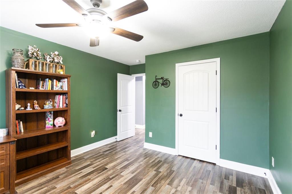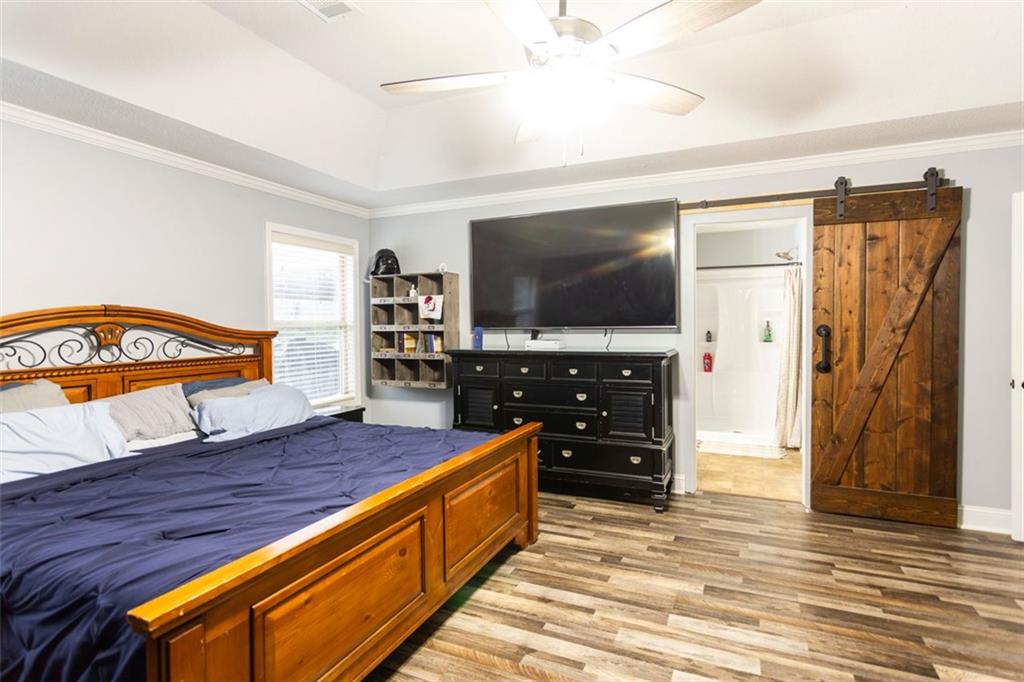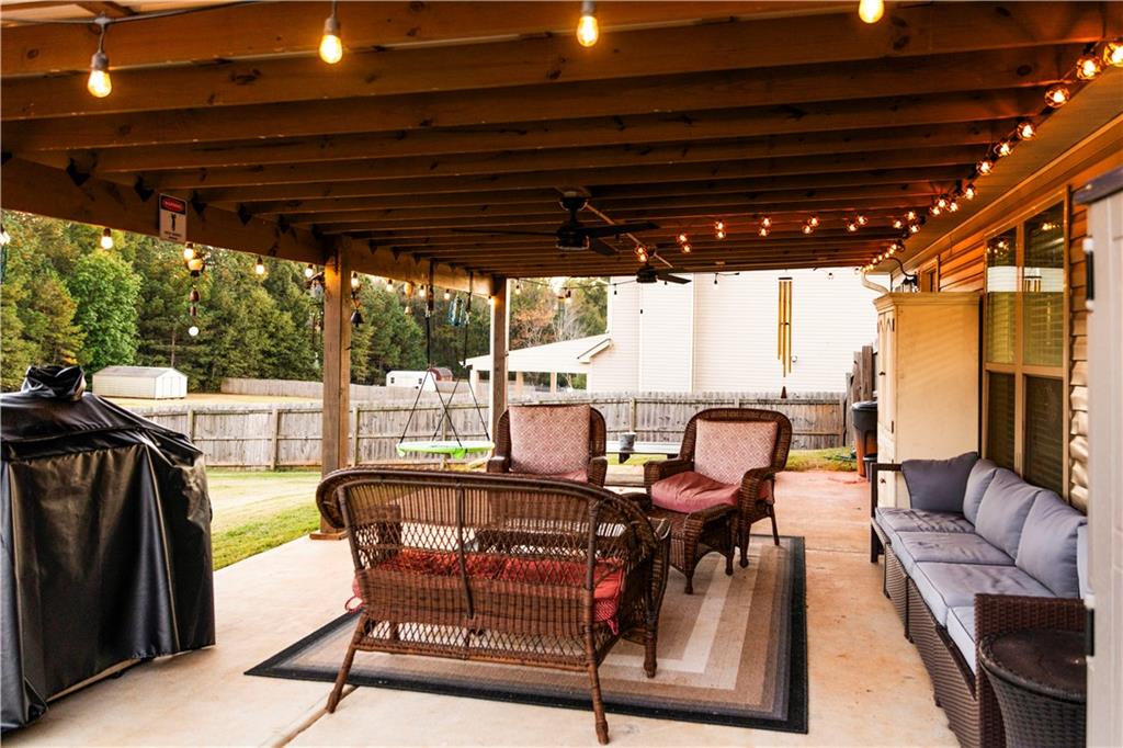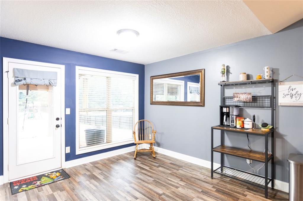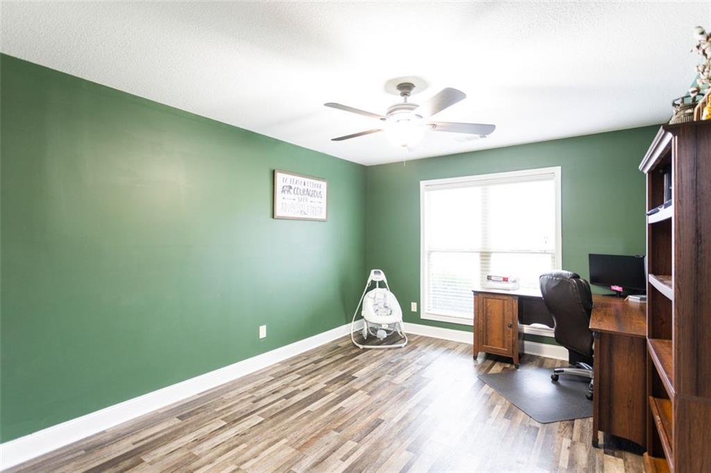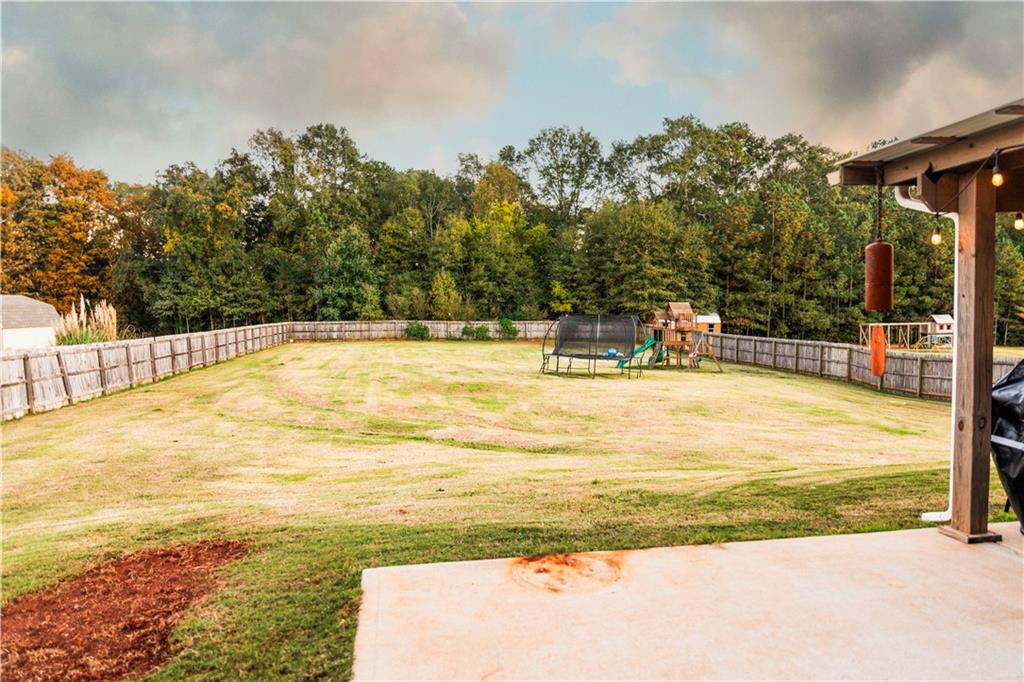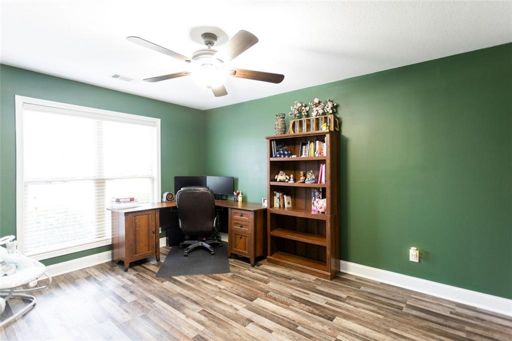 Discover your dream retreat in this stunning 4-bedroom, 2.5-bathroom ranch-style home nestled on a level lot in the peaceful Kensington Place neighborhood. Step into an inviting open-concept floor plan boasting vaulted ceilings in the main living area, a cozy wood-burning fireplace, and upgraded LVP flooring that flows seamlessly throughout. The kitchen shines with granite countertops, a spacious island, walk-in pantry, and adjacent breakfast nook, while a large dining room sets the stage for memorable gatherings. Retreat to the expansive primary suite featuring high ceilings, a large en-suite bath with double vanities, soaking tub, separate shower, and a massive walk-in closet. Three oversized guest bedrooms offer ample space for family or visitors, complemented by a convenient walk-in laundry room and shared full bathroom. Freshly updated with a new architectural roof, this great property extends outdoors to an expanded covered patio overlooking a generous fenced backyard— perfect for relaxation and entertaining. Don't miss this move-in-ready home ready for its new owner!