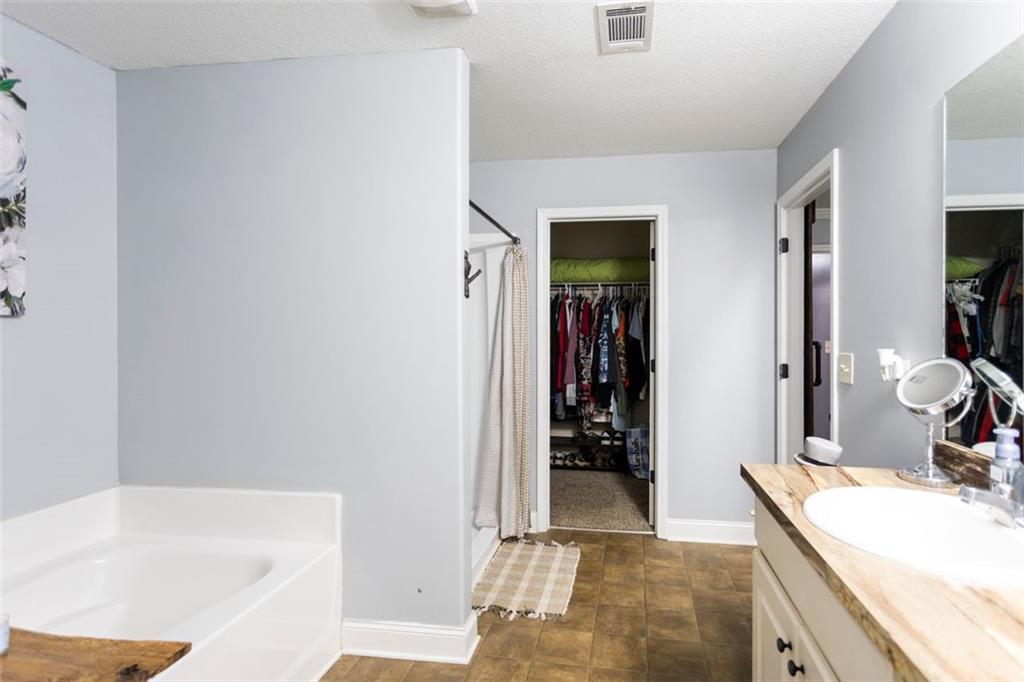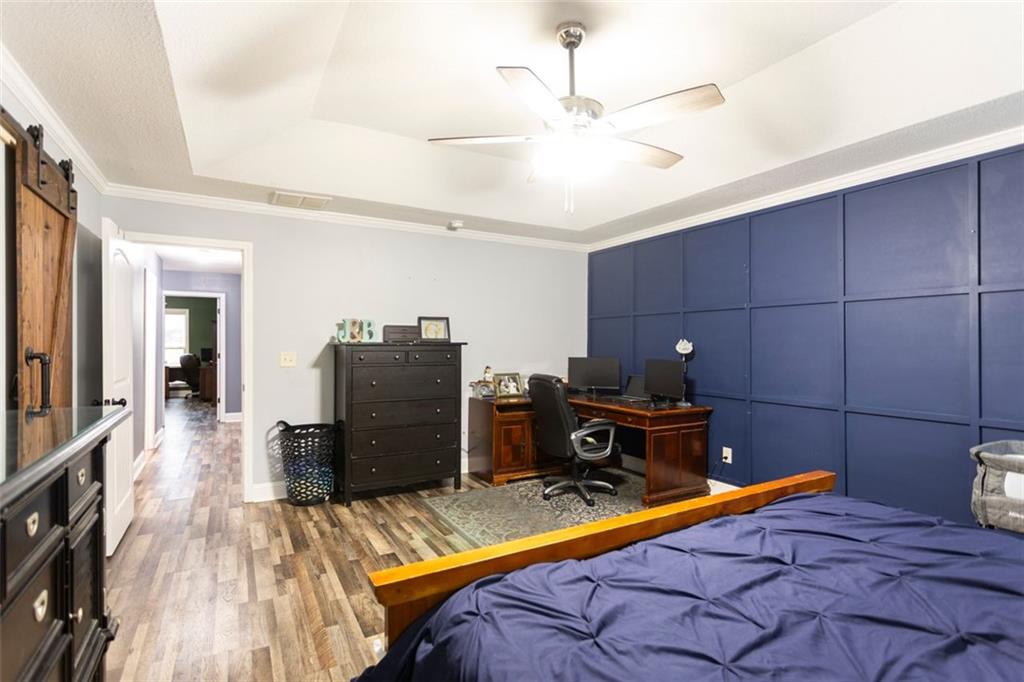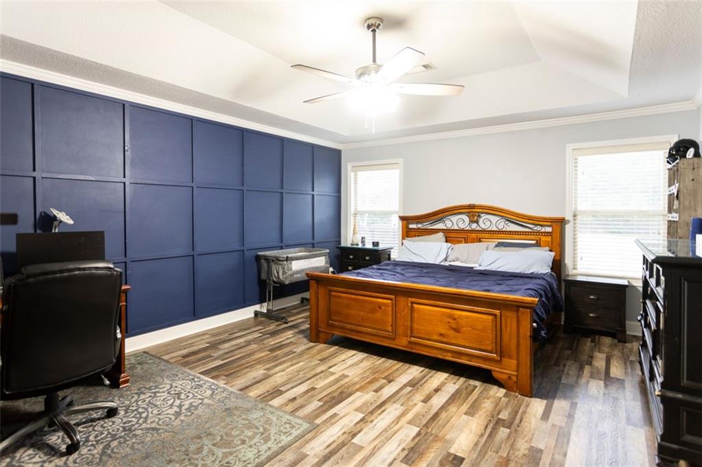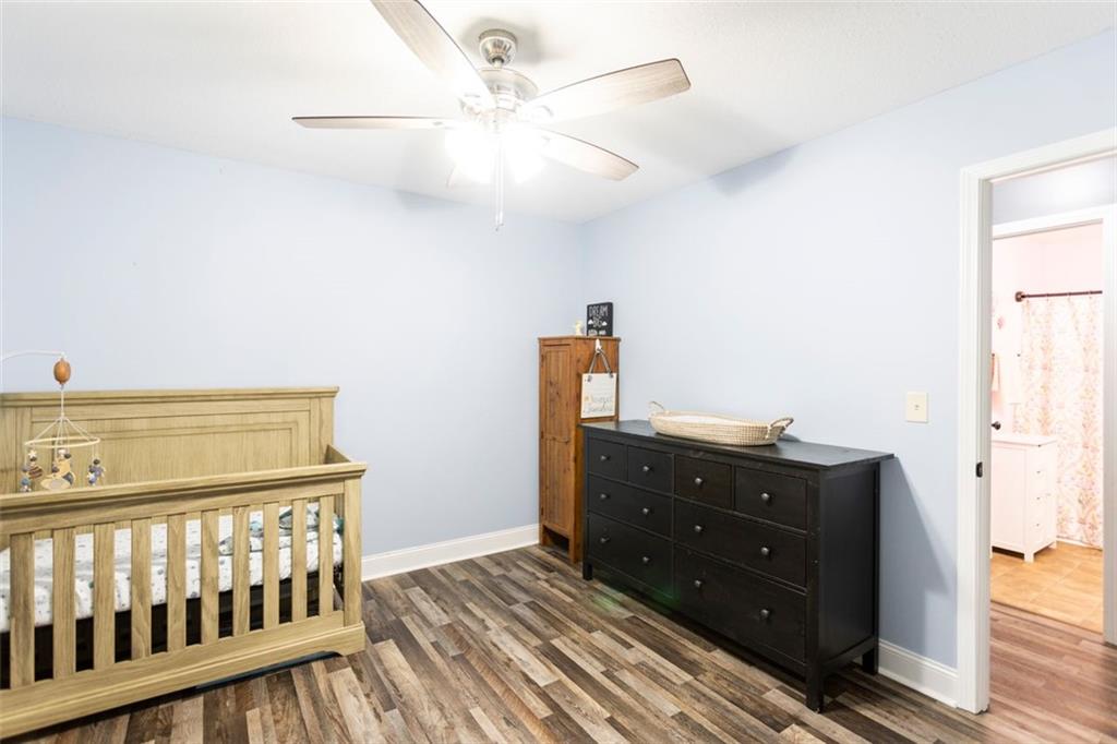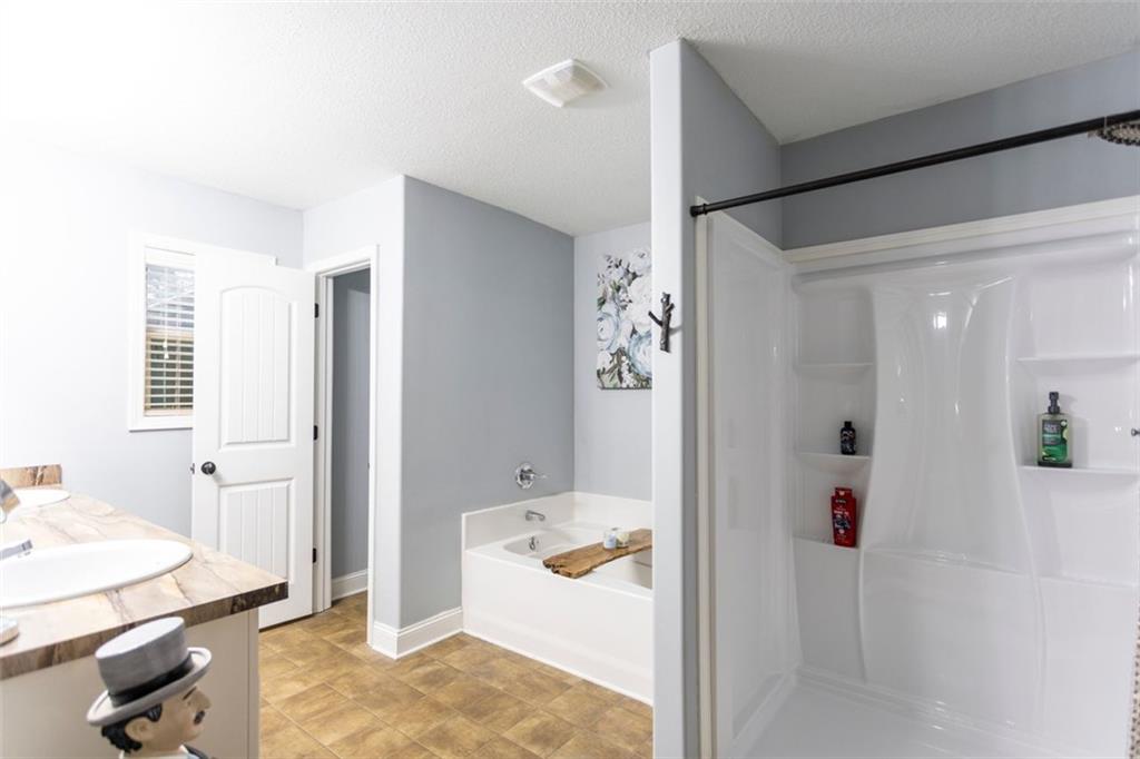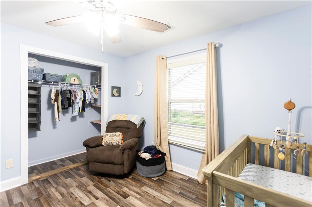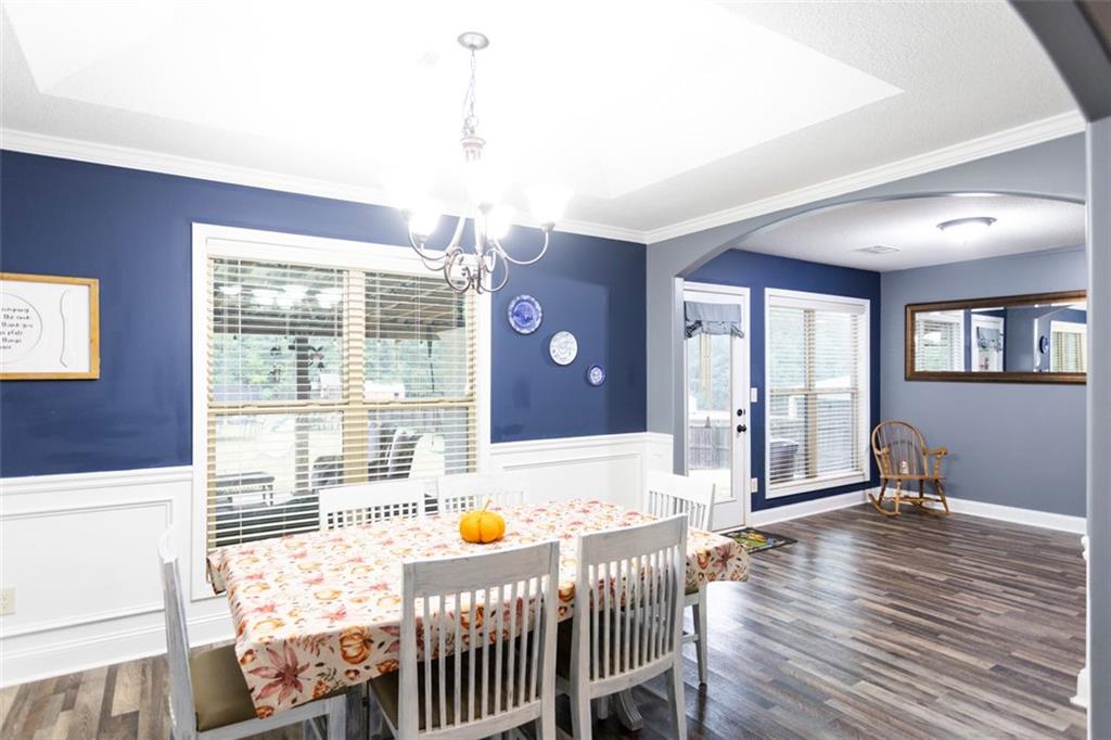 Discover your dream retreat in this stunning 4-bedroom, 2.5-bathroom ranch-style home nestled on a level lot in the peaceful Kensington Place neighborhood. Step into an inviting open-concept floor plan boasting vaulted ceilings in the main living area, a cozy wood-burning fireplace, and upgraded LVP flooring that flows seamlessly throughout. The kitchen shines with granite countertops, a spacious island, walk-in pantry, and adjacent breakfast nook, while a large dining room sets the stage for memorable gatherings. Retreat to the expansive primary suite featuring high ceilings, a large en-suite bath with double vanities, soaking tub, separate shower, and a massive walk-in closet. Three oversized guest bedrooms offer ample space for family or visitors, complemented by a convenient walk-in laundry room and shared full bathroom. Freshly updated with a new architectural roof, this great property extends outdoors to an expanded covered patio overlooking a generous fenced backyard— perfect for relaxation and entertaining. Don't miss this move-in-ready home ready for its new owner!