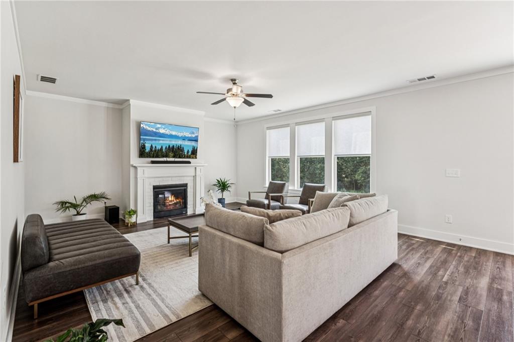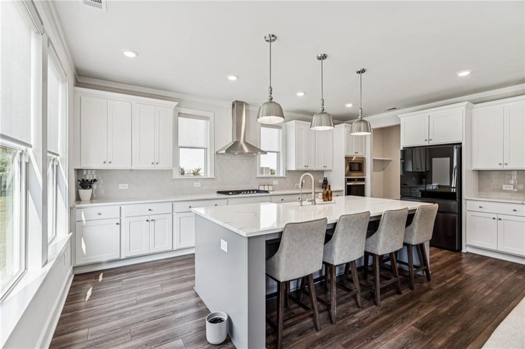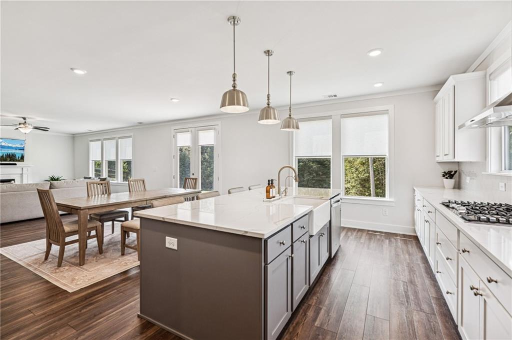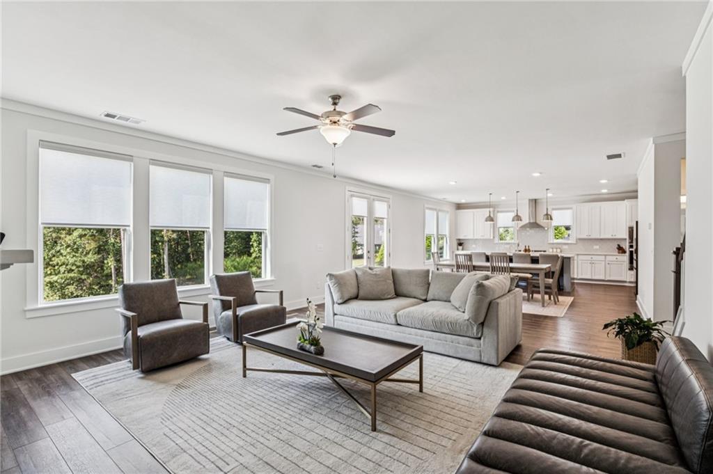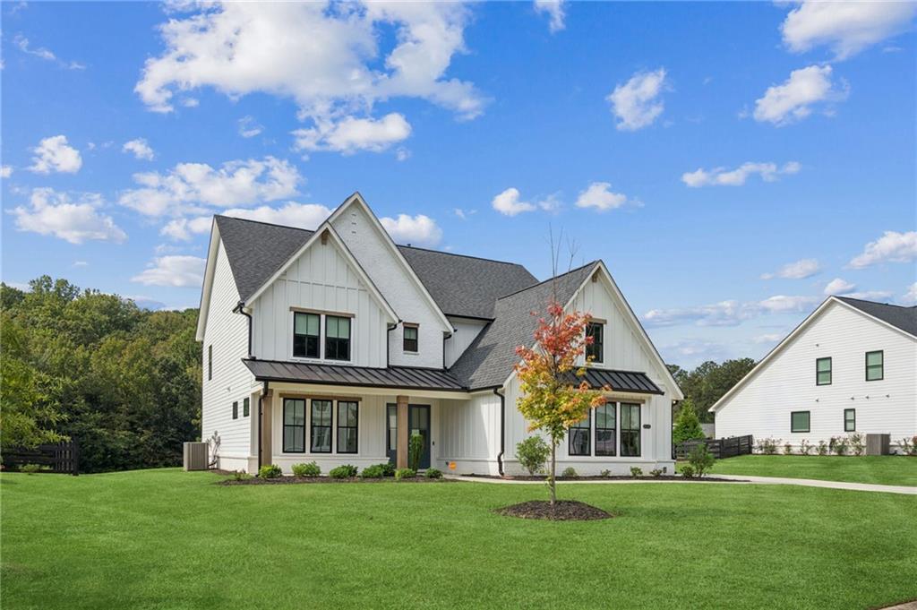 Experience luxury living in this stunning 2022-built modern farmhouse, located in the desirable Long Hollow Landing community on Lake Lanier. This thoughtfully designed home offers 5 bedrooms, 4.5 bathrooms, with floorplan showcasing elegant, functional living space—all on a private 1.3-acre lot in the East Forsyth. Inside, enjoy a bright, open-concept layout with high ceilings, designer finishes, and abundant natural light. The gourmet kitchen features an oversized island, walk-in pantry, and seamless flow into spacious living and dining areas—perfect for entertaining. The main-level guest suite includes a private full bath with walk-in shower, ideal for visitors or multi-gen living. Upstairs, the primary suite boasts a spa-like bath, huge walk-in closet, and a private bonus room hidden within the closet—perfect for a home office, gym, or storage. A loft area offers additional flexible living space. Additional bedrooms are all oversized with bathrooms. Enjoy the outdoors with a wooded lot and plenty of space to create an outdoor oasis! Community access to the pavilion, dock and Lake Lanier, perfect for boating, kayaking, or relaxing by the water. This home offers a rare blend of upscale finishes, privacy—an exceptional find!