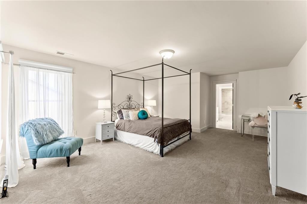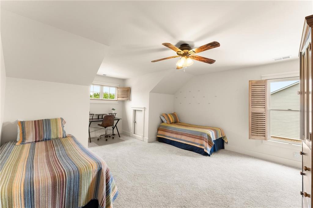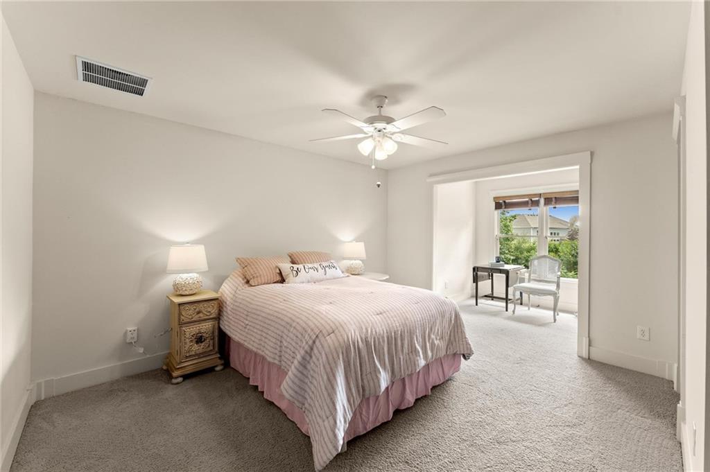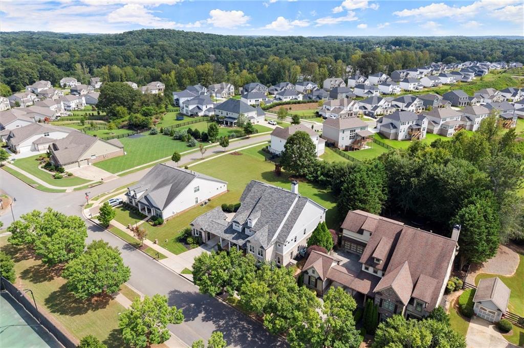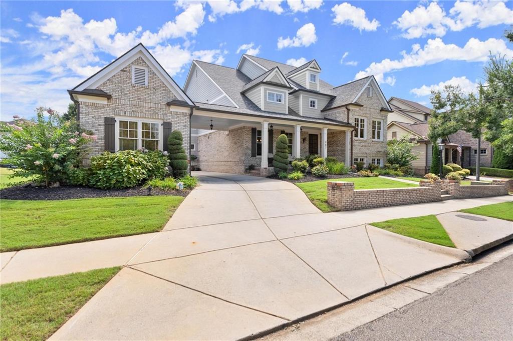 This custom Jeremy Rutenberg design in sought-after Carmichael Farms exudes timeless character and architectural charm—far exceeding your average floorplan. Perfectly situated on the community square, you’ll love the picturesque setting with street lanterns, sidewalks, and a short stroll to resort-style amenities including pool, tennis courts, clubhouse with fitness center, and a park. A welcoming front porch opens to a bright foyer and beautiful staircase, flanked by an elegant dining room with a classic swinging door leading into the chef’s kitchen—complete with custom cabinetry and vent hood, top-of-the-line stainless appliances, gas cooking, spacious island, breakfast bar, and sun-filled breakfast nook. The kitchen flows seamlessly into the fireside family room with custom built-in bookcases overlooking the expansive, level backyard and covered patio—perfect for grilling and entertaining. This unique floorplan spans three levels of living space plus an unfinished terrace level. Just a few steps up from the main level, discover the primary suite retreat encompassing an entire private floor. Designed as a true sanctuary, it features hardwoods, a spa-inspired bath with soaking tub + walk-in shower, expansive walk-in closet, and two versatile flex spaces—ideal for a sitting room, office, nursery or home fitness area. The upper level offers an amazing loft/flex space with built-in desk + computer nook, flanked by three generously sized ensuite bedrooms with spacious walk in closets. A completely separate guest suite with full bath (currently used as a private office) adds flexibility for multi-generational living, work-from-home, or extended guests. Additional highlights include gorgeous transoms and millwork throughout + fresh interior and exterior paint. Enjoy the outdoors in your professionally landscaped yard and take in the resort style amenities just a skip away! Discover Cherokee County's top-rated schools and enjoy being conveniently nestled between I-575 and GA-400 and close to shopping, dining, parks, and charming downtown destinations. Don't miss this opportunity!