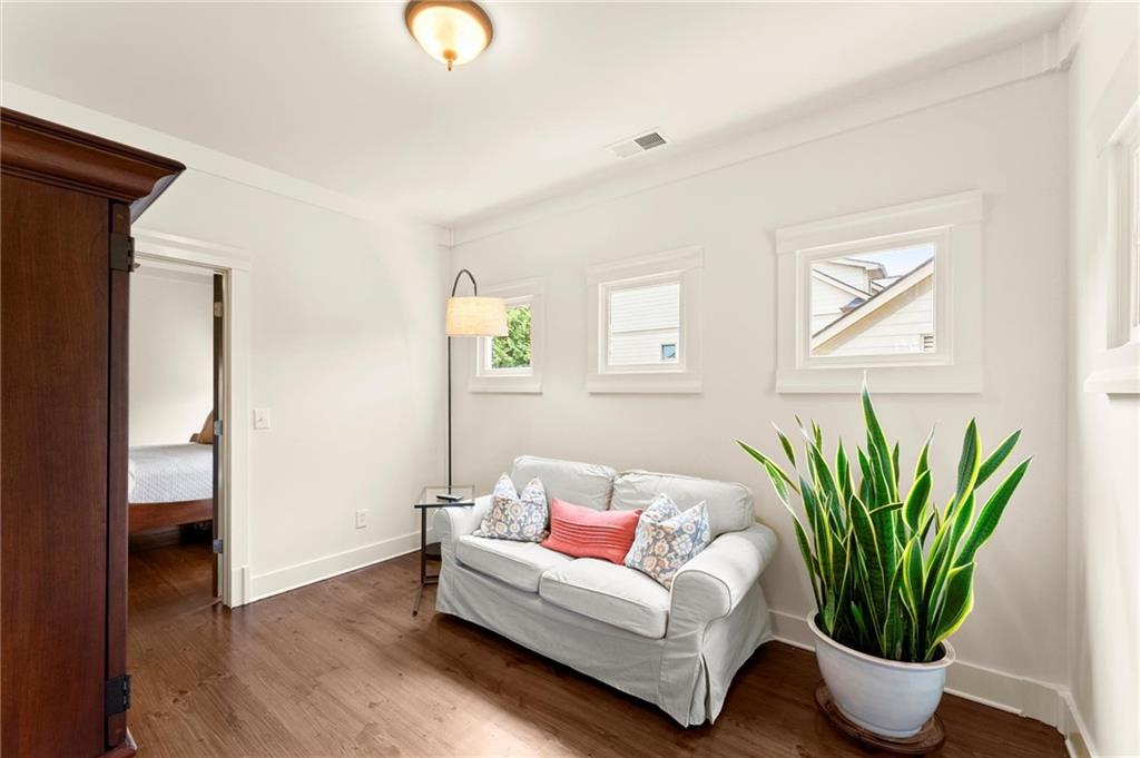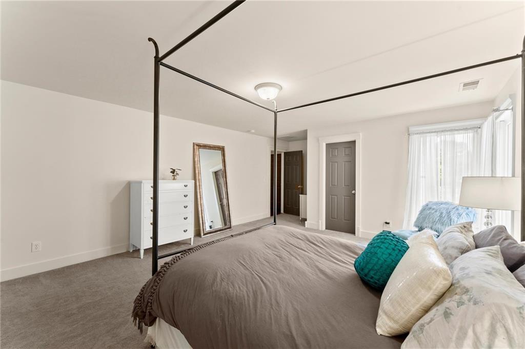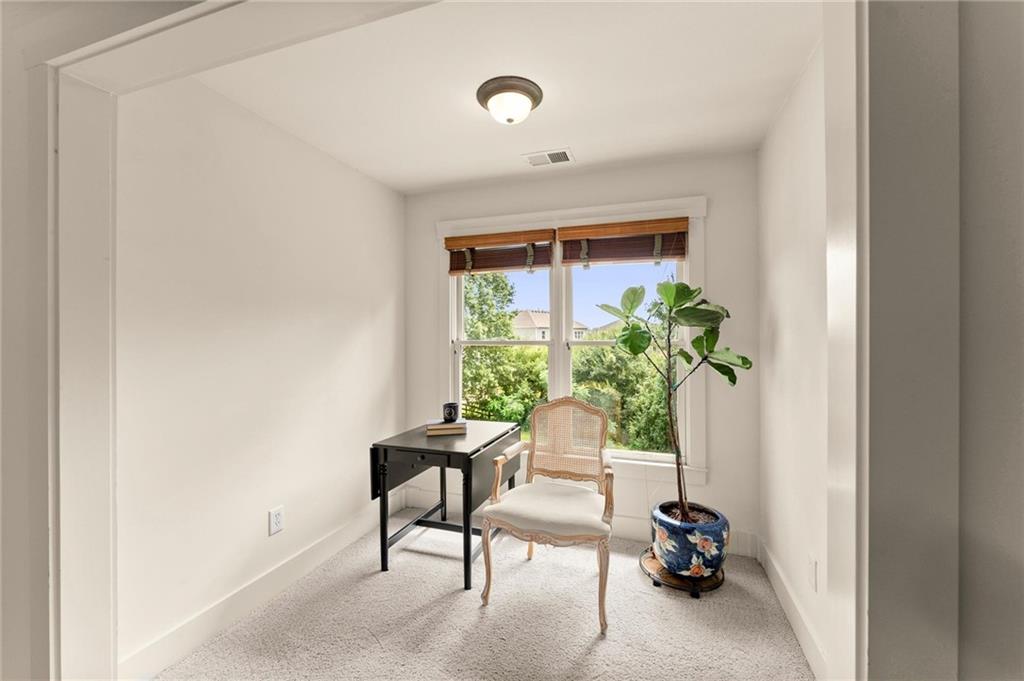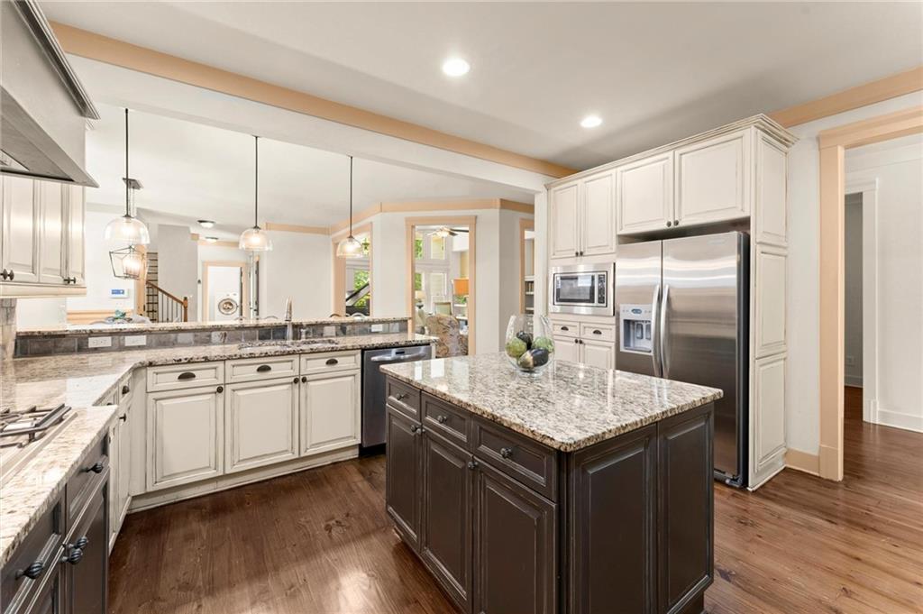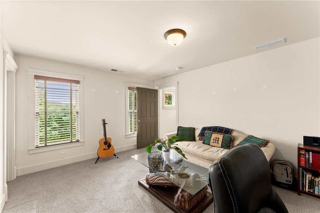 This custom Jeremy Rutenberg design in sought-after Carmichael Farms exudes timeless character and architectural charm—far exceeding your average floorplan. Perfectly situated on the community square, you’ll love the picturesque setting with street lanterns, sidewalks, and a short stroll to resort-style amenities including pool, tennis courts, clubhouse with fitness center, and a park. A welcoming front porch opens to a bright foyer and beautiful staircase, flanked by an elegant dining room with a classic swinging door leading into the chef’s kitchen—complete with custom cabinetry and vent hood, top-of-the-line stainless appliances, gas cooking, spacious island, breakfast bar, and sun-filled breakfast nook. The kitchen flows seamlessly into the fireside family room with custom built-in bookcases overlooking the expansive, level backyard and covered patio—perfect for grilling and entertaining. This unique floorplan spans three levels of living space plus an unfinished terrace level. Just a few steps up from the main level, discover the primary suite retreat encompassing an entire private floor. Designed as a true sanctuary, it features hardwoods, a spa-inspired bath with soaking tub + walk-in shower, expansive walk-in closet, and two versatile flex spaces—ideal for a sitting room, office, nursery or home fitness area. The upper level offers an amazing loft/flex space with built-in desk + computer nook, flanked by three generously sized ensuite bedrooms with spacious walk in closets. A completely separate guest suite with full bath (currently used as a private office) adds flexibility for multi-generational living, work-from-home, or extended guests. Additional highlights include gorgeous transoms and millwork throughout + fresh interior and exterior paint. Enjoy the outdoors in your professionally landscaped yard and take in the resort style amenities just a skip away! Discover Cherokee County's top-rated schools and enjoy being conveniently nestled between I-575 and GA-400 and close to shopping, dining, parks, and charming downtown destinations. Don't miss this opportunity!