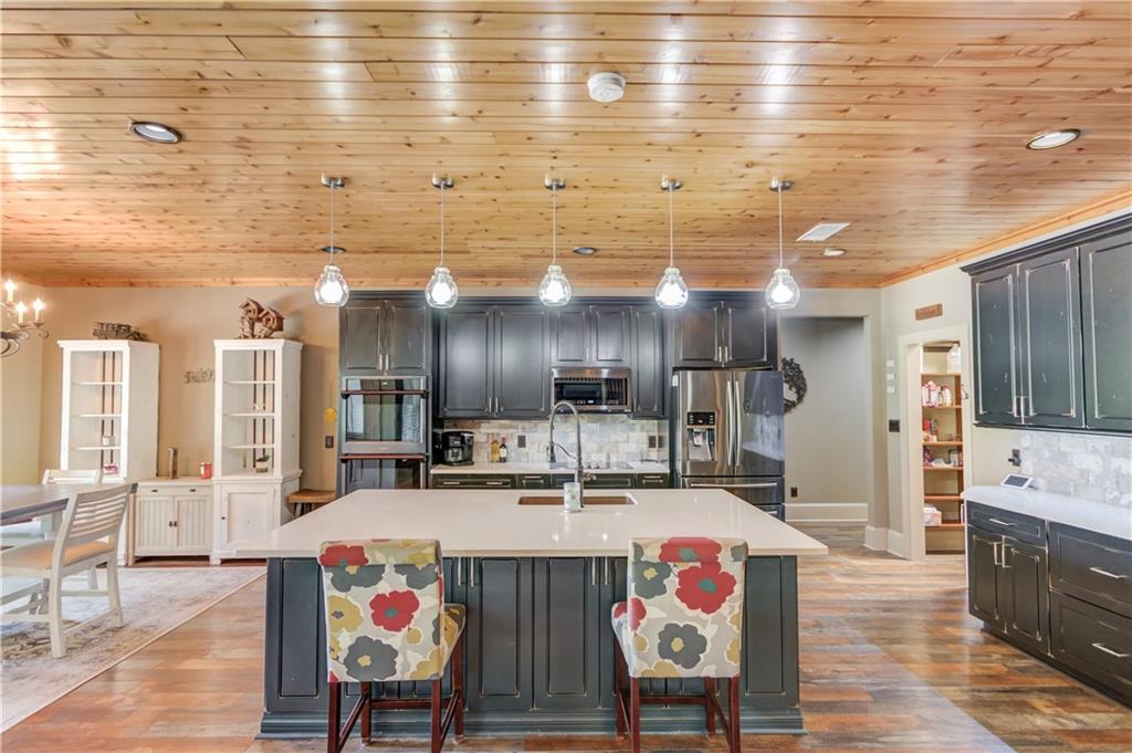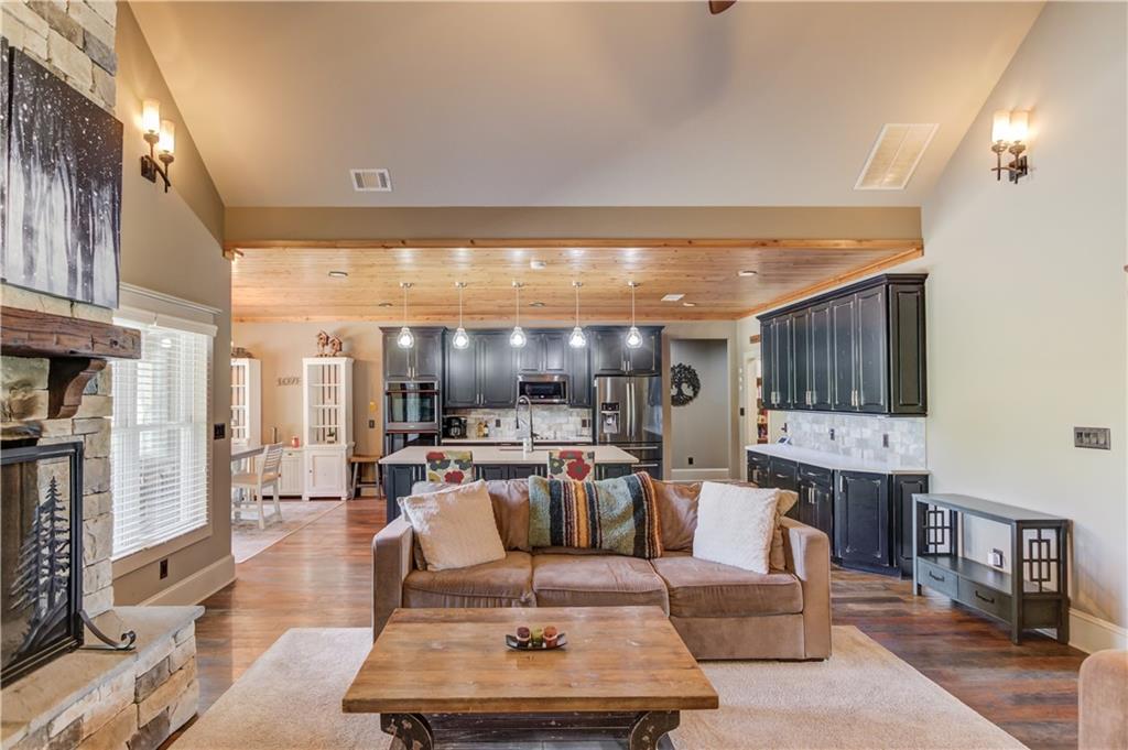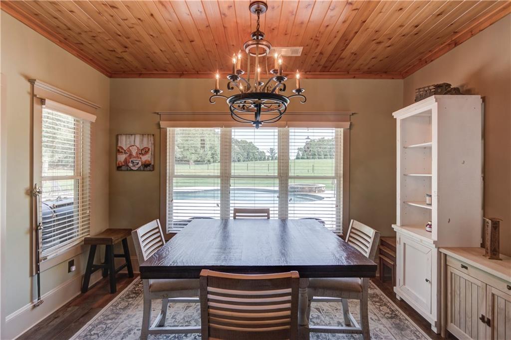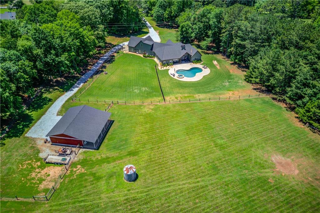 Welcome to your private slice of the countryside. Set on 7.832 acres of open pastureland, this stunning Craftsman home captures the best of country living with elegance and charm. The long gravel drive leads to a home that instantly impresses with its curb appeal and sweeping views. Inside, every detail shines with a wood ceiling foyer, a floor to ceiling stone fireplace, and a private office featuring a hidden storage room behind built ins. The kitchen is the heart of the home, offering a large island, custom cabinetry, shiplapped ceilings, and a beautiful walk in pantry. The oversized primary suite provides a spa style bath with a soaking tub, separate shower, and a spacious walk in closet that connects directly to the laundry room. Three additional bedrooms and two full baths, including a Jack and Jill, complete the main level. Upstairs, a bonus room, bedroom, and bath create the perfect private suite, complete with a secret attic passage. The home also includes an air conditioned three car garage, perfect for the car enthusiast or those needing extra space for storage or hobbies. Step outside to a covered patio overlooking a custom in ground pool surrounded by wide open pasture views. A detached shop with a garage bay adds even more versatility to this remarkable property, offering space for projects, tools, or equipment. This home perfectly combines space, comfort, and a peaceful lifestyle.