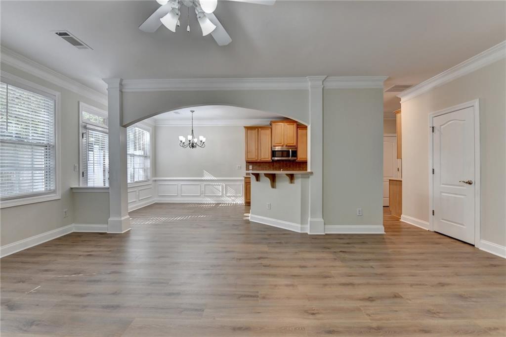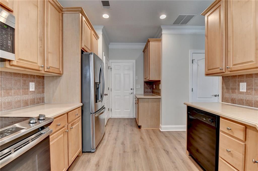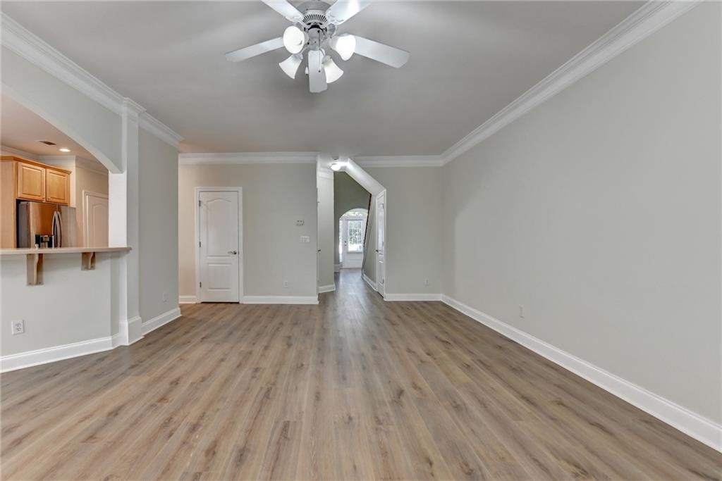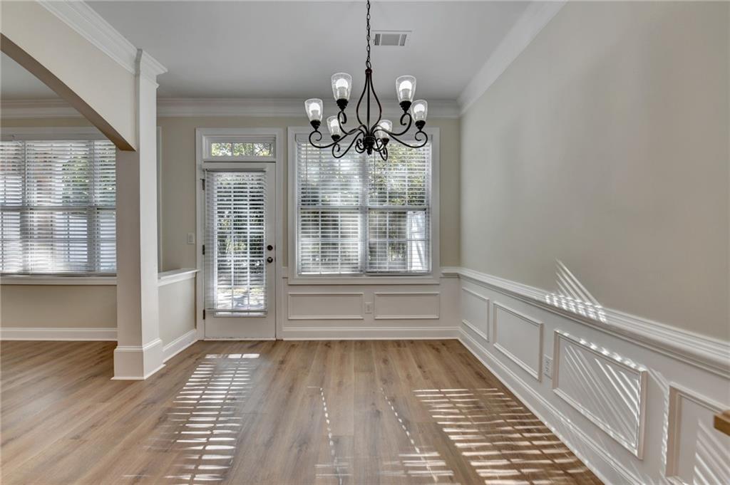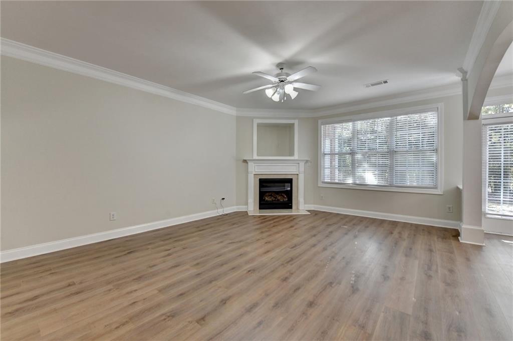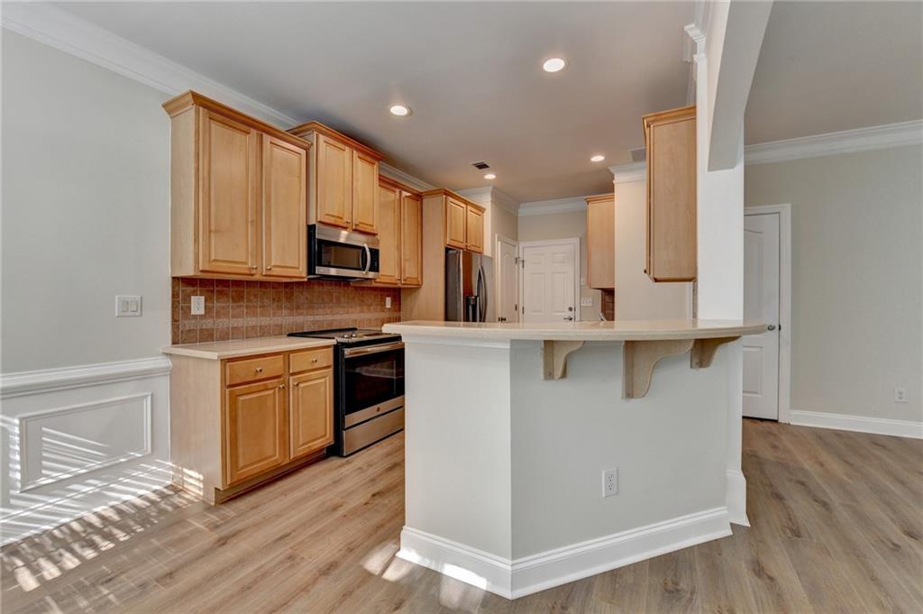 Great two story townhouse at amazing location! Gorgeous front brick townhouse situated at the heart of Duluth. Low maintenance home with a pacious open floor plan with lots of natural light. Fresh new paint and new hardwood flooring throughout the whole house. Open view from kitchen to family room and dining area, spacious master with trey ceiling, and two other spcacious bedrooms. Great neighborhood and great schools. Better than new! Private backyard with beautiful views. Close to I-85, shopping, restaurants, Gas South Arena, schools, parks and many other major streets. Don't miss this great opportunity.