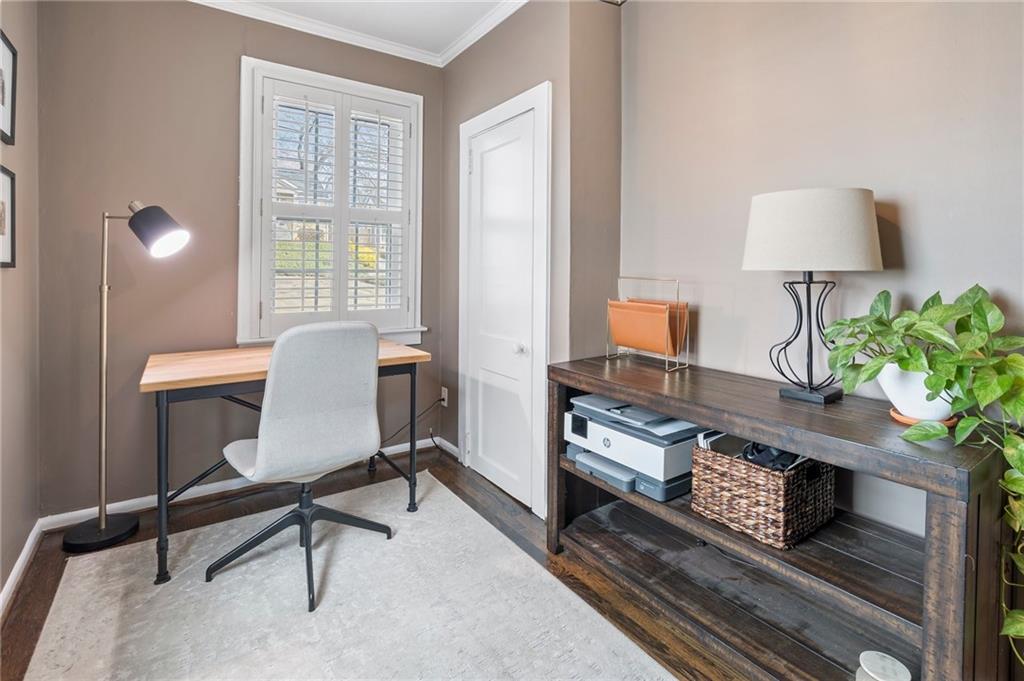 The one you've been waiting for - an updated ranch with fireside living space, an oversized primary suite, a dedicated office space, and a spacious outdoor entertaining deck. You'll walk into the light-filled living space with original mantle. A dedicated dining space allows for easy entertaining. The kitchen has been updated with white cabinetry plus lots of storage space, and views to the outdoor entertaining deck. The primary suite features vaulted ceilings and tons of natural light - step inside the en-suite bathroom and walk-in closet for easy living. A dedicated office space or peloton room are located off of the living room. Guests will enjoy two, spacious secondary bedrooms and updated hall bathroom. Recent updates include the new HVAC (2023), new dishwasher (2024), updated lighting throughout, and recently landscaped and hardscaped backyard. Enjoy plenty of off-street parking with space to turn around in the driveway! Walkable to the new beltline access and conveniently located near Atlanta's popular westside, shops/ restaurants, and easy interstate access!