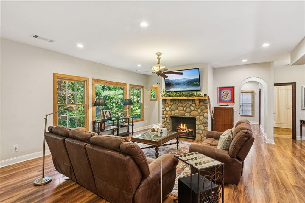 Escape to Big Canoe — North Georgia’s premier gated mountain and lake community, just one hour from Atlanta and 45 minutes from Avalon in Alpharetta. Nestled in Hillside at Cox Mountain, the only non-rental neighborhood in Big Canoe, this move-in-ready home offers the perfect blend of luxury, low-maintenance living, and resort-style amenities. This fully renovated 3-bedroom, 4.5-bath home showcases modern design and mountain comfort. The light-filled great room features vaulted ceilings, a stone fireplace, and views of 12 acres of protected woodlands that will never be developed. The gourmet kitchen, renovated in 2025, is ideal for entertaining family and friends and includes a large island, quartz countertops, stainless appliances, workstation sink, and custom cabinetry. The primary suite on the main level is a serene retreat with a spa-style bath, featuring a freestanding soaking tub, frameless glass shower, and custom closets. Upstairs, you’ll find two ensuite bedrooms, a loft, and flex space perfect for guests or a home gym. On the terrace level, enjoy a full entertainment suite with a bar, wine storage, fireplace, and private home office for easy work-from-home convenience (could be easily converted to 4th bedroom). Relax outdoors year-round with two screened porches and a welcoming front porch. A flat driveway, new roof, fresh paint, updated lighting and flooring make this a true turnkey home. Living in Big Canoe means access to incredible amenities: 27-hole championship golf course (no initiation fee), multiple lakes for fishing, kayaking, and boating, beach and swim area, marina, pickleball, tennis, racquetball, and bocce courts, wellness and fitness center with classes, indoor pool and gym, over 100 clubs and social activities for every interest, gated security, paved roads. This home is two minutes from the clubhouse, pro shop and wellness center, six minutes from the main gate, and is ideal for anyone searching for a primary residence or second home close to Atlanta where golf, fitness, hobbies and nature come together in one exceptional community. Experience the best of North Georgia mountain living with resort amenities, modern comfort, and peaceful privacy.