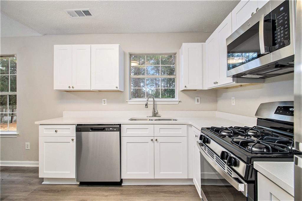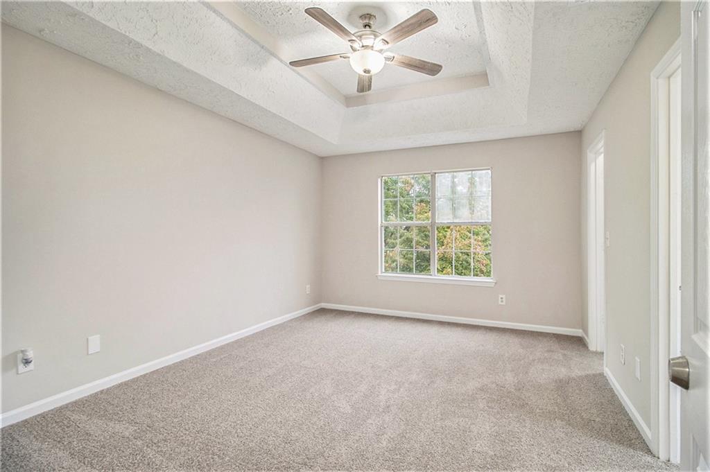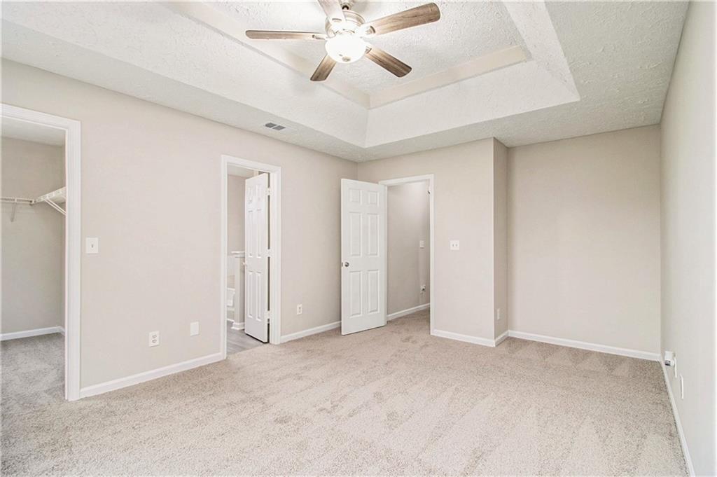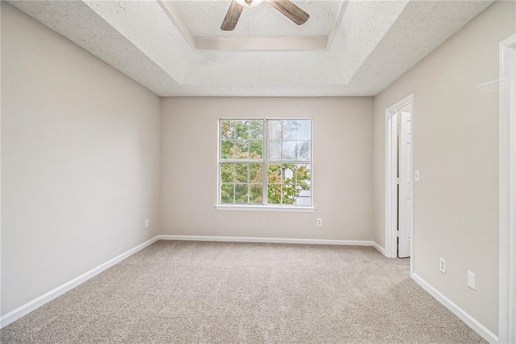 Spacious home featuring both a living room and a cozy family room with fireplace. The eat-in kitchen offers solid surface countertops and plenty of space for casual dining. The primary suite boasts a tray ceiling, walk-in closet, and an ensuite bath with a separate shower and relaxing soaking tub. Two additional spacious bedrooms provide comfort and flexibility for guests or a home office. Enjoy outdoor living on the patio and the convenience of a 2-car garage. No HOA!
