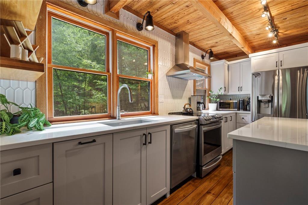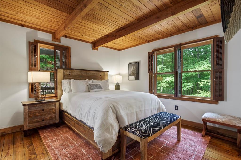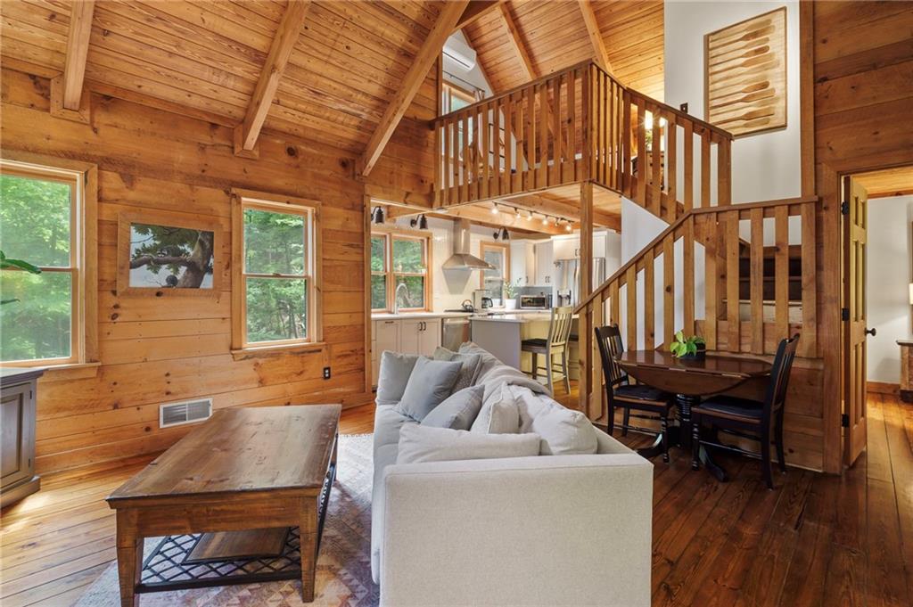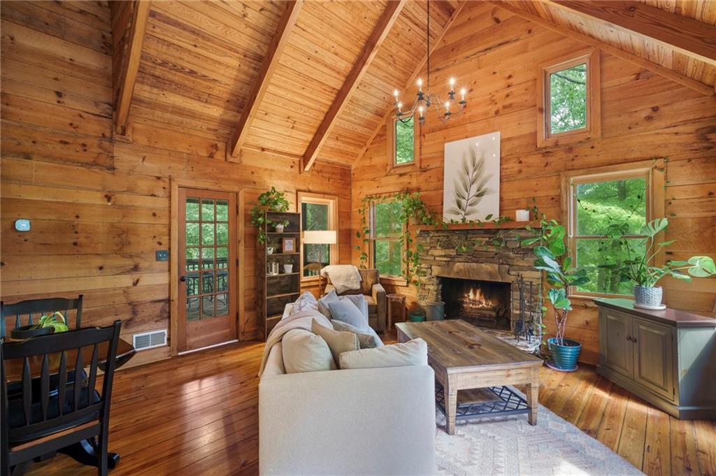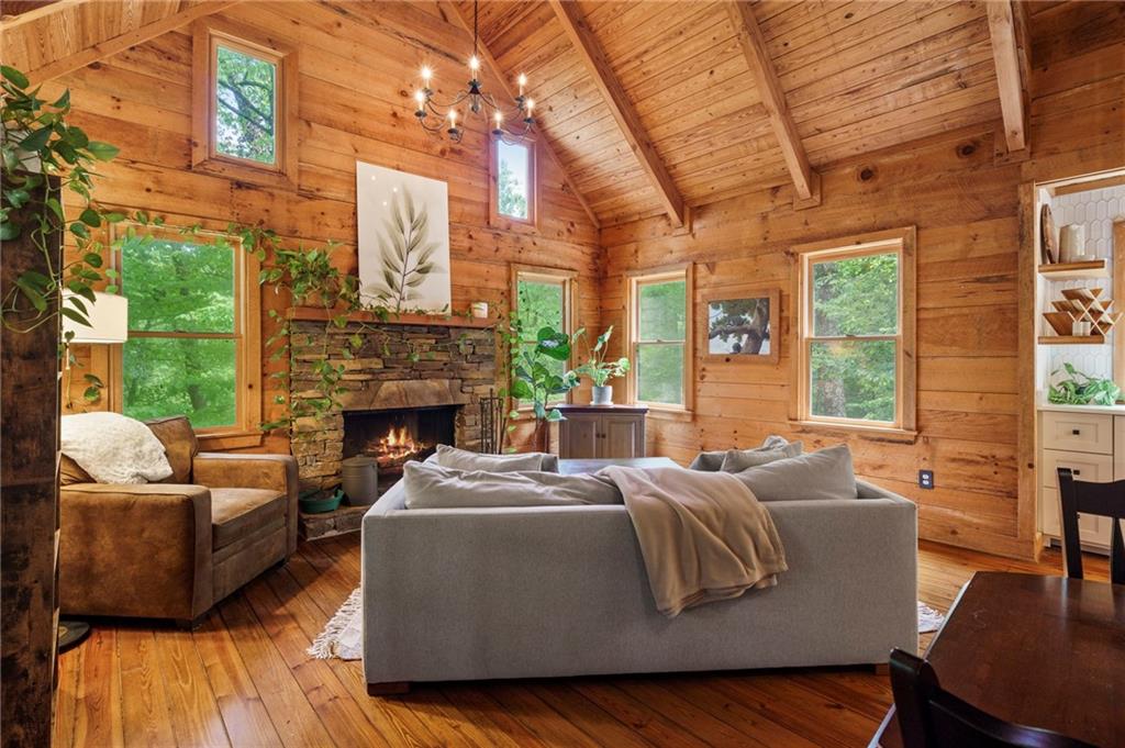 3 BR/2 1/2 BA fabulous Plummer cabin--recently renovated and without sacrificing the charm of the coveted Plummer-designed cabin. Privacy, privacy, privacy! Wonderful great room with its original wood burning Tennessee stacked stone fireplace. Wide plank pine flooring throughout. Conveniently located near walking trails and Indian Rocks Park. Master on main, with another master on the terrace level--and each with full bathroom. Upstairs is your 3rd bedroom, half bath, & a quiet loft with hvac "split" for added comfort. Home is available fully furnished. Buyer to verify all information and dimensions deemed important.