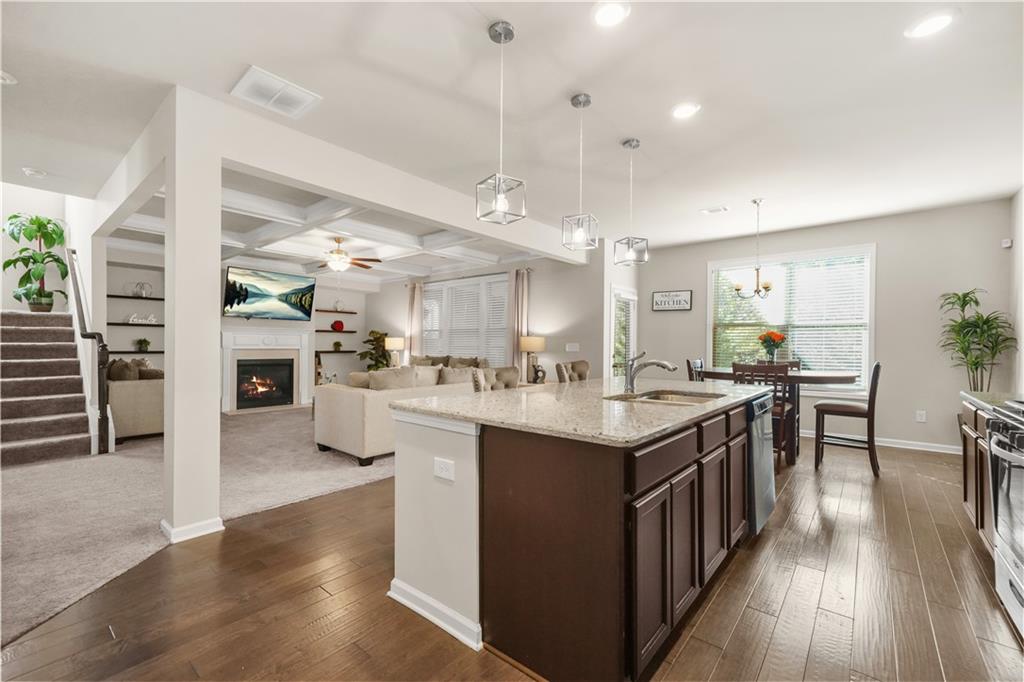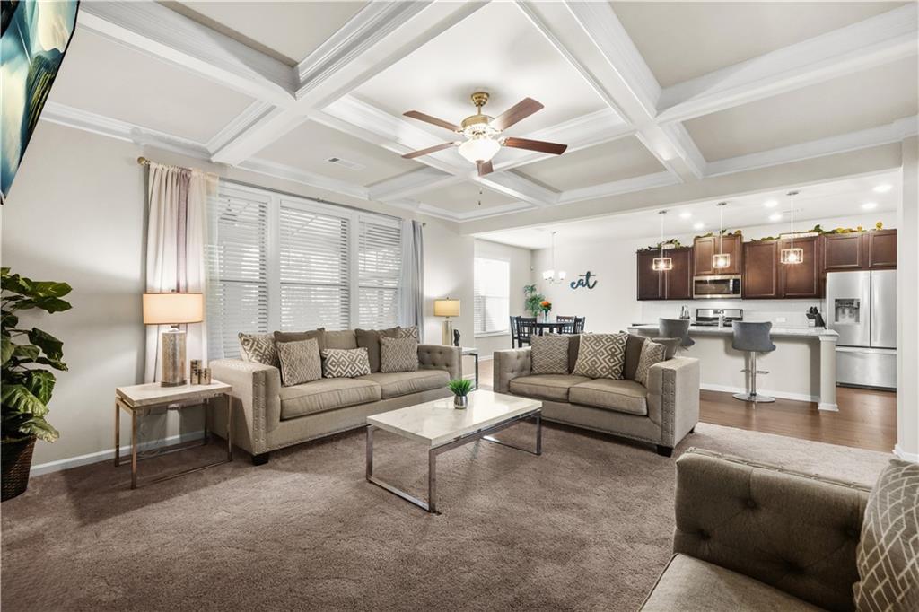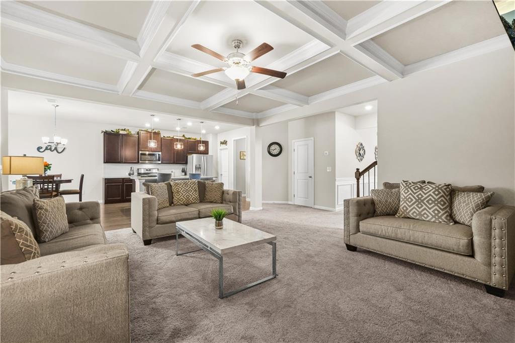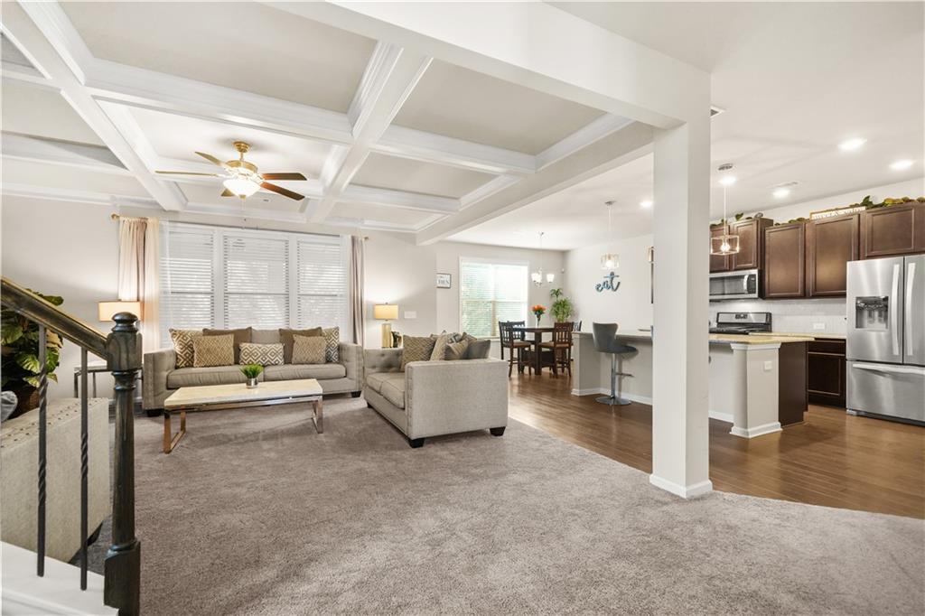 Welcome to your new chapter at 208 Evergreen Way - a beautiful, move-in ready 4-bedroom, 2.5-bath home built in 2019 in vibrant Loganville. Nestled on a quiet, well-maintained lot in a sought-after neighborhood, this residence delivers modern comfort with timeless style. Step inside to an open-concept great room with a coffered ceiling where light flows seamlessly into the gourmet kitchen - complete with a large island, breakfast bar, and walk-in pantry. The adjacent formal dining area offers the perfect space for gatherings, while casual meals move easily to the breakfast nook. Upstairs you'll find a spacious primary suite with dual vanities, separate tub and oversized shower, and a generous walk-in closet. Three additional bedrooms and a full hall bath provide plenty of space for family, guests or a home office. A convenient upstairs laundry adds ease to everyday routines. Outside you'll discover a backyard retreat with a covered patio and fireplace. Perfect for entertaining or just relaxing at home. Location is key, and this one delivers: highly-regarded schools, nearby shopping and dining, and easy access to Atlanta and beyond. Whether you're hosting a formal dinner, relaxing with a book in the cozy breakfast nook, or prepping for the week ahead in your enviable owner's suite, this home offers smart design, refined finishes and a lifestyle you'll love coming home to. Don't miss the opportunity to make 208 Evergreen Way your next place to call home.