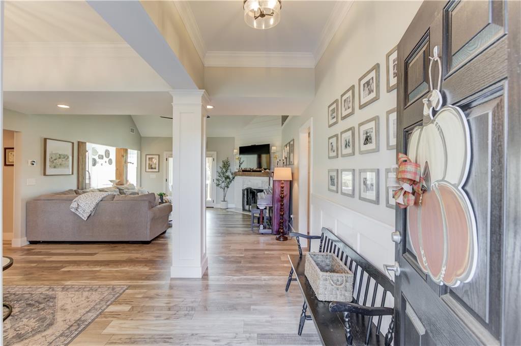 Nestled in the heart of the beautiful Finch Landing community, 18 Raven Ridge is a stunningly renovated craftsman-style home that perfectly blends timeless charm with modern comfort. Situated on a spacious, flat corner lot and just a short stroll from the neighborhood swimming pool, this home truly has it all. Step inside to find a thoughtfully designed floor plan that feels both open and inviting. The main living area flows effortlessly between the kitchen, dining, and family rooms—ideal for entertaining or simply enjoying time together. The formal dining room is a showstopper with gorgeous new floor-to-ceiling built-in bookshelves, offering the flexibility to use it as a home office, library, or cozy keeping room. The fully remodeled kitchen is a dream come true—featuring brand-new cabinets, gleaming granite countertops, a stylish neutral backsplash, and all-new stainless steel appliances. The addition of rustic wooden beams brings an earthy warmth and charm that ties the space together beautifully. Just off the kitchen, you’ll find a large pantry and a bright breakfast nook overlooking the lush backyard. The primary suite is conveniently located on the main level and offers a peaceful retreat with a tray ceiling and a beautifully updated en suite bathroom. Two additional bedrooms and a shared bath are tucked away on the opposite side of the home, providing privacy and comfort for family or guests. Upstairs, a spacious bonus room offers endless possibilities—a playroom, guest suite, home office, gym, or media room—the choice is yours! Enjoy your mornings or unwind in the evenings on the large screened-in porch, perfectly sized for outdoor dining or relaxing with friends while watching the big game. Out back, a 24x20 powered workshop with a roll-up garage door provides incredible versatility—ideal for storage, a hobby space, a home gym, or even a golf simulator setup! Throughout the home, you’ll appreciate the thoughtful upgrades—luxury vinyl plank flooring on the main level, new carpet upstairs, custom craftsman trim, paneled interior doors, wainscoting, and designer lighting. Located in a welcoming community close to excellent schools and all that Jefferson living has to offer, 18 Raven Ridge is more than just a house—it’s the place you’ll love to call home. Don’t miss your chance to make Finch Landing your new address!