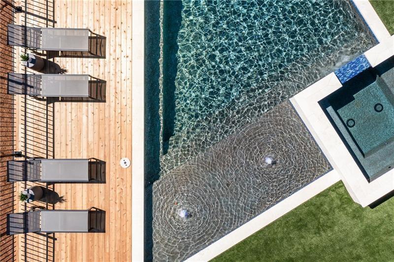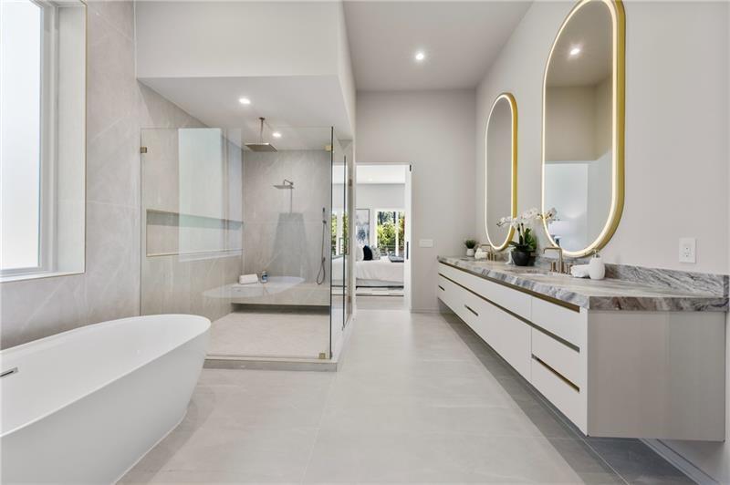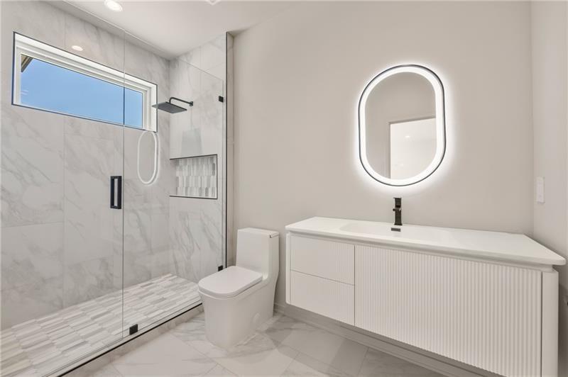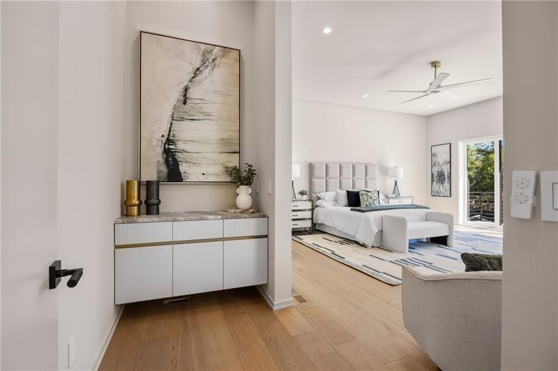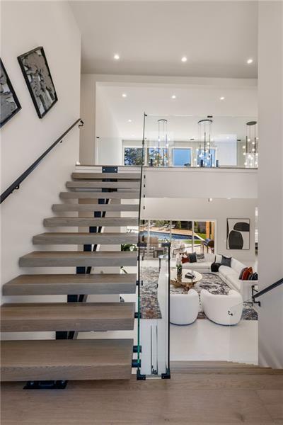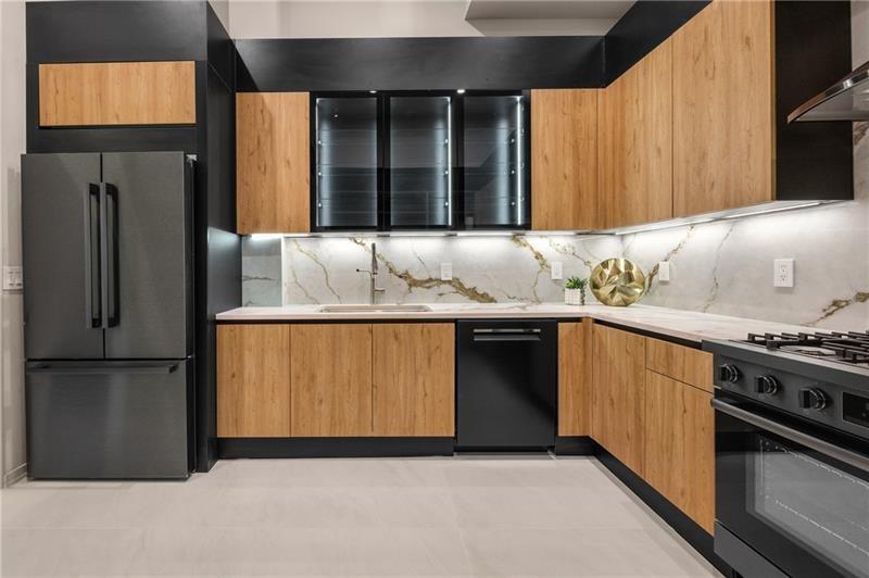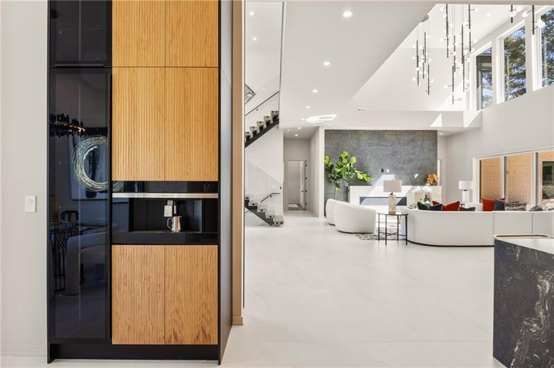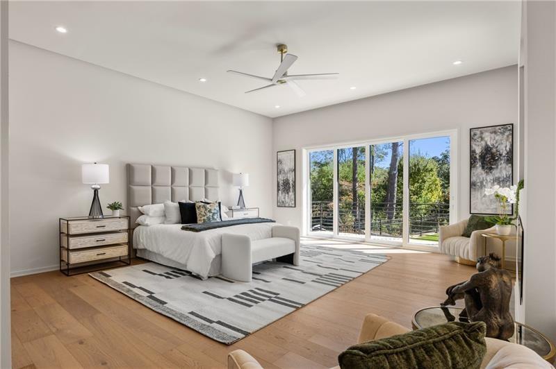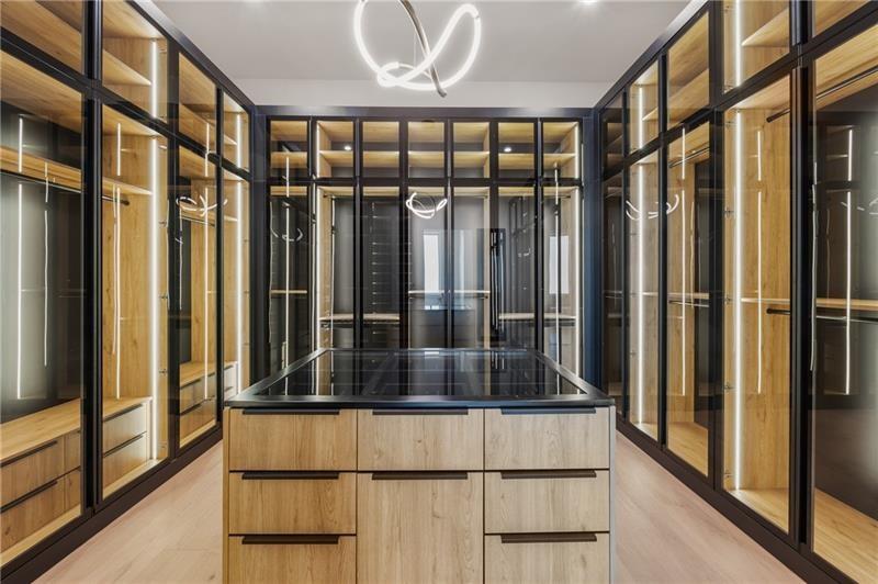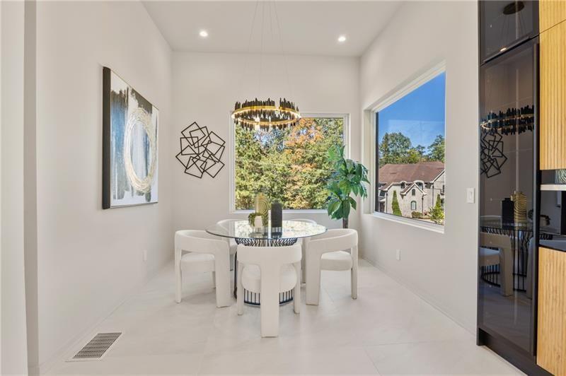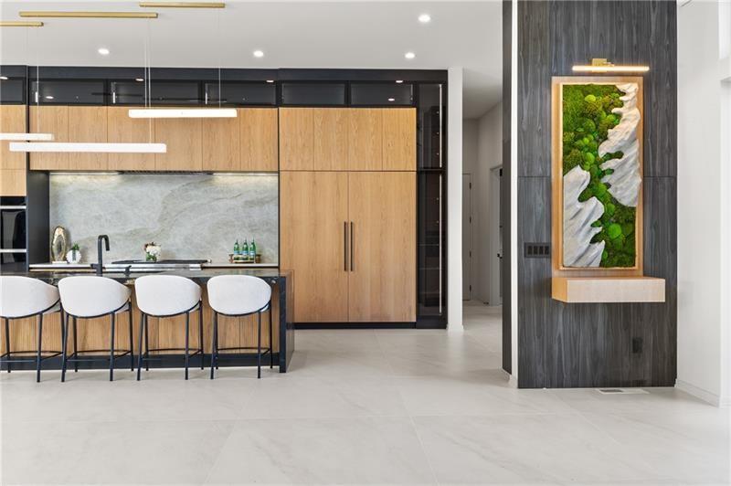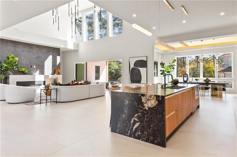 Welcome to this extraordinary modern estate, an architectural gem with a bold flat roofline, rooftop balconies, and an interior that radiates sophistication and style at every turn. Spanning multiple levels, this one-of-a-kind residence features a striking open floor plan, anchored by a two-story great room with floor-to-ceiling windows and a linear gas fireplace. The heart of the home is the chef’s kitchen that is nothing short of world-class: fully equipped with Sub-Zero and Wolf stainless steel appliances including double ovens, dishwasher, a dramatic 6-burner gas range, custom-crafted wood cabinetry with LED lighting, a full coffee station, and wine refrigeration. A modern floating staircase with glass railings ascends to the upper level, where you’ll find four expansive bedrooms, each with beautiful custom tile design en-suite baths and custom walk-in closets. The primary suite on the main floor offers a gorgeous bathroom with dual sinks, custom tile, soaking tub and walk-in custom closets with LED lighting that is the epitome of luxury in closet design, blending privacy with indulgence in a space designed to soothe and impress. An additional main-level bedroom or executive office adds versatility and convenience. The main level showcases 48x48 custom designer tile flooring, while wide-plank hardwoods bring warmth and elegance to the primary bedroom and upper level. A fully equipped second kitchen—complete with a gas range, refrigerator, sink, and dishwasher—offers added flexibility for entertaining or extended living. The walk-in pantry provides generous storage, and the mudroom, thoughtfully positioned just off the 4-car garage, adds seamless functionality. For ultimate convenience, the home includes two laundry rooms, one on each level. The partially finished basement expands the living space with an additional bedroom, full bathroom, and home gym. Five separate HVAC units ensure optimal comfort and energy-efficient climate control throughout this exceptional residence. Outside, the experience continues with a resort-style pool and spa, an expansive covered outdoor living area with a gas top of the line grill area equipped with stove, and beverage fridge and integrated lighting designed to complement the home’s clean architectural lines. Ideally situated in the heart of prestigious Sandy Springs, this exceptional residence offers effortless access to City Springs, top-tier schools, and premier dining—seamlessly blending luxury living with an unrivaled location.