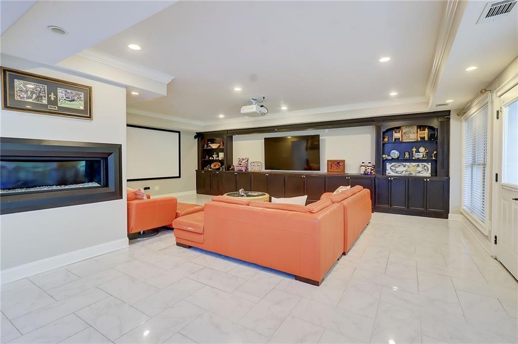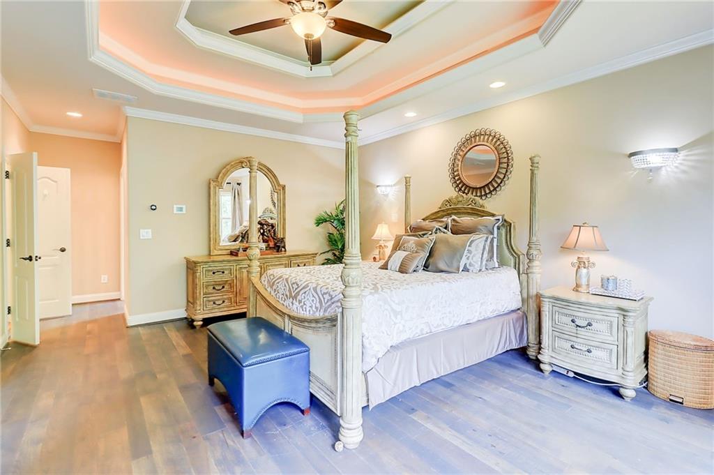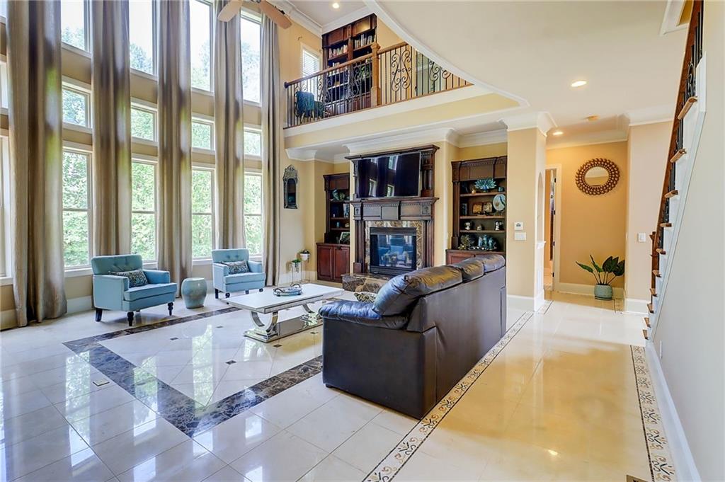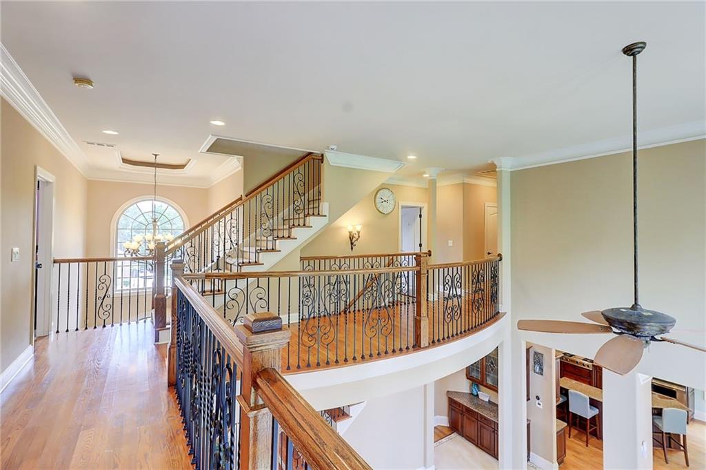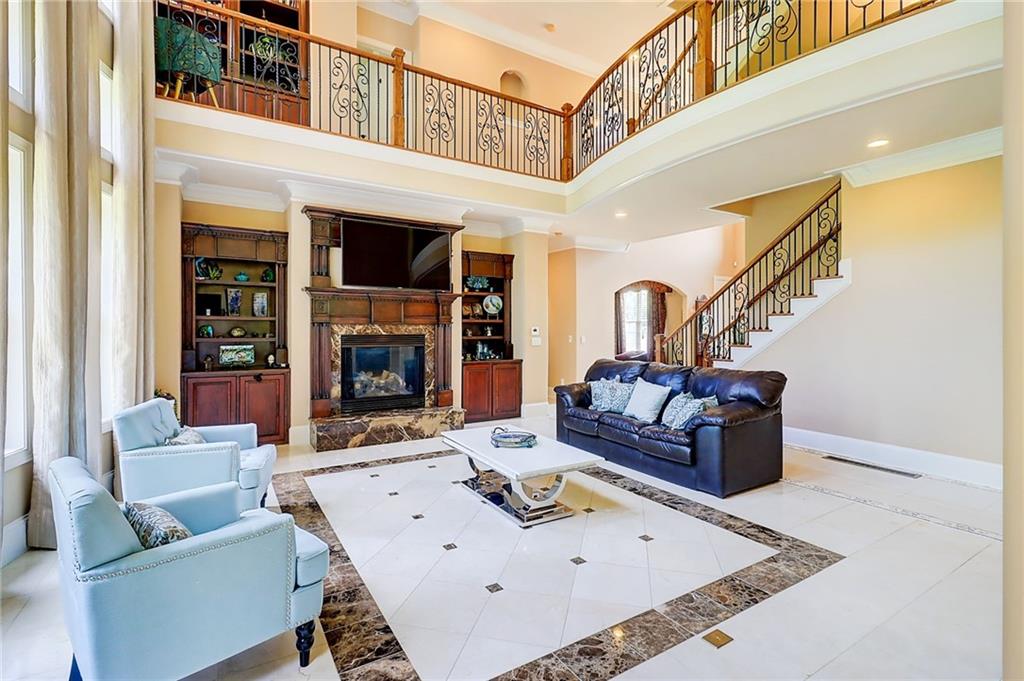 PRICE IMPROVEMENT!!!! Welcome to this exceptional estate - Nestled on over an acre in a quiet cul-de-sac within a prestigious gated Country Club community, this 4-sided brick estate offers 4 FULL LEVELS of luxury and space designed for both grand entertaining and everyday comfort with endless upgrades! Featuring 6 bedrooms and 7 full baths, expansive living and dining spaces along with a stunning family room highlighted by dramatic three-story bowed windows that fills the home with natural light and architectural elegance. Additional detailed features includes new designer tile flooring on main, fresh interior paint, built-in bookcases, and a striking fireplace. Full bedroom and bath on main add flexibility for guests or multigenerational living. Gourmet kitchen is a chef's dream with Viking appliances, BOSCH refrigerator, double wall ovens, built-in microwave, and a spacious breakfast area that opens to the extended deck featuring a remote-controlled oversized awning, extended deck with staircase to the yard. Upstairs, the luxurious primary suite boasts a sitting room, trey ceilings, abundant natural light, and an oversized custom designed closet. The spa-like primary bath features dual vanities, a deep soaking air-jetted jacuzzi tub, and a separate tiled shower. Laundry room located off primary suite. Each of the secondary bedrooms upstairs has its own private ensuite bath, and the 4th level loft includes a full bath - ideal for guests, work, or play. The fully finished basement continues the wow factor with a second full kitchen featuring high-end Viking appliances, pot filler, ice-maker, and a massive island - perfect for entertaining. Enjoy the open layout, fireplace, custom room addition with MURPHY BED INCLUDED, a theater room with and exercise room with glass mirror doors. BONUS:BRAND NEW ROOF, NEW HOT WATER HEATERS, SONO MUSIC SYSTEM! Exterior landscape offers irrigation system, and the convenience of a 3-car side-entry garage. Resort style amenities with 27 holes of golf on Tom Fazio design courses, upscale clubhouse, dining, Tennis, Pickleball, swimming, events and more. Eagles Landing Country Club is less than 30 minutes to downtown Atlanta and the Atlanta airport. Schedule your private tour and experience the lifestyle at 805 Cog Hill!