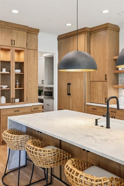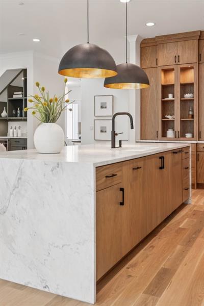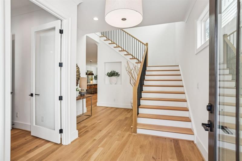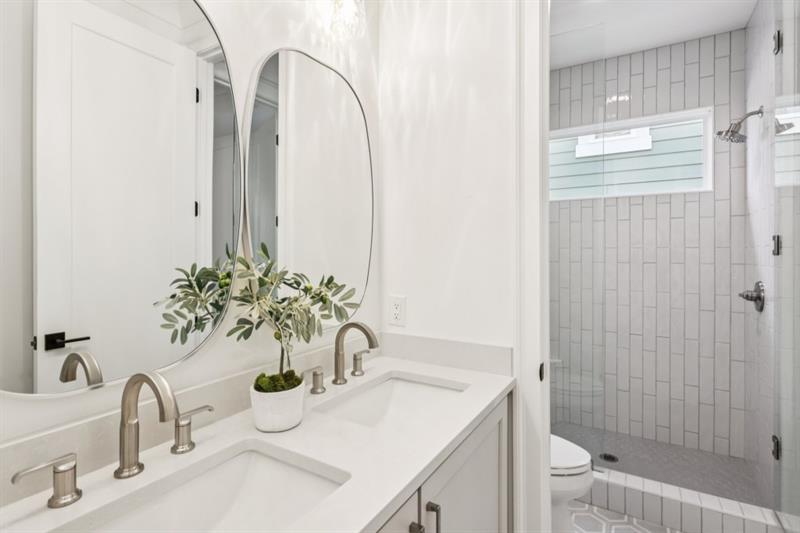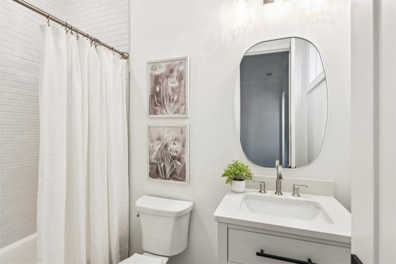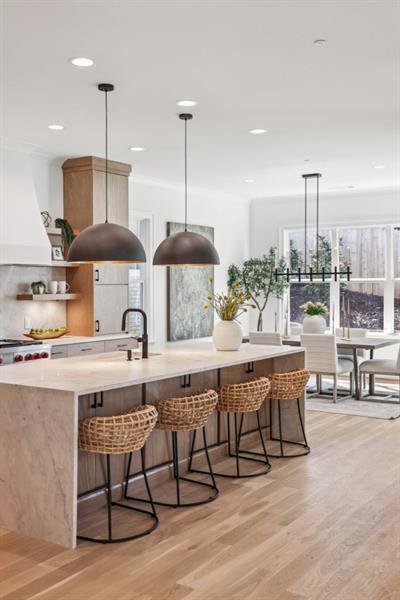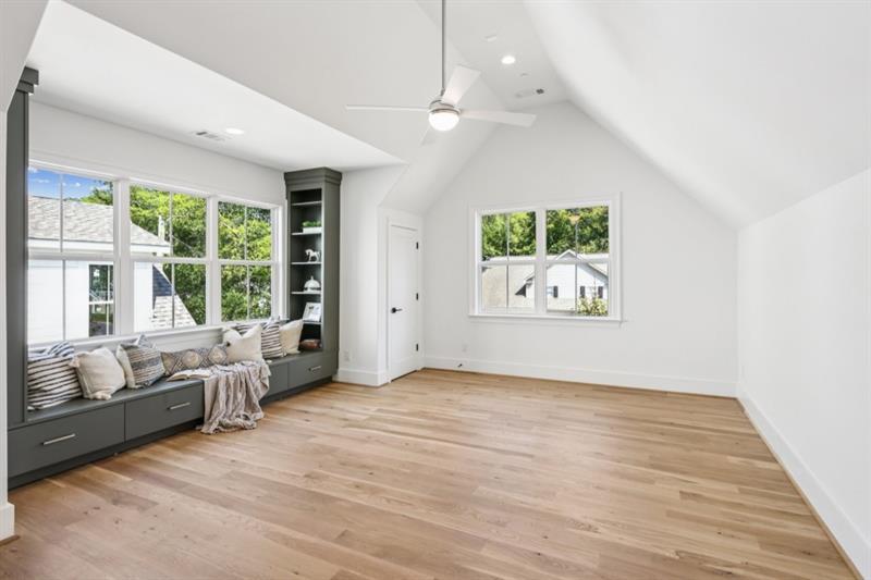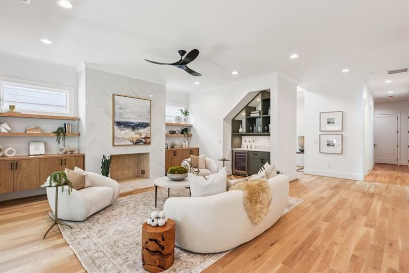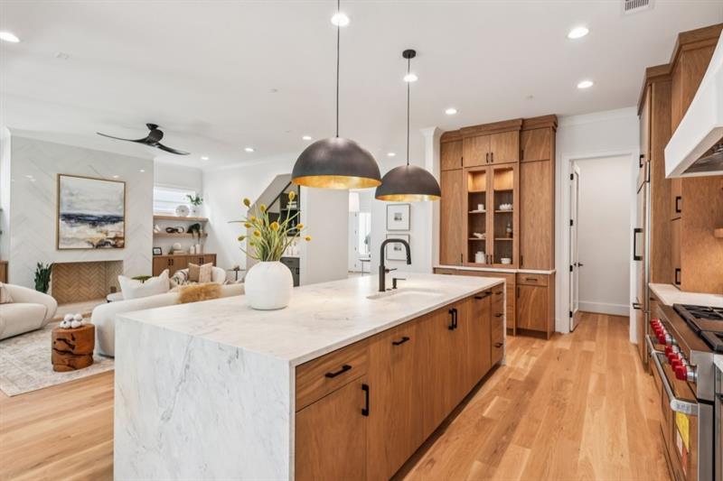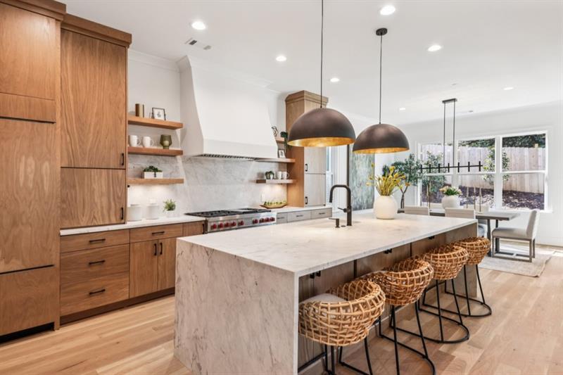 Now is the perfect time to secure your dream home near historic downtown Marietta! Completed in September 2025, this luxurious residence combines modern comfort with timeless design and is ideally located near upscale dining, boutique shopping, wine bars, and seasonal festivals. This home offers 4 spacious bedrooms, 3 full baths, a large flex room, and a dedicated office. The gourmet kitchen is the heart of the home, boasting a Sub-Zero refrigerator, Wolf gas range, Bosch dishwasher, Sharp microwave, stone countertops, custom inlaid soft-close cabinetry, walk in pantry with built in cabinets and drawers and a large prep island with open views to the family room. A stylish bar area adds convenience for entertaining and casual gatherings. Throughout the home, you'll find 5" site-finished hardwoods, abundant natural light, and designer details including high end light fixtures and upgraded tiles. The primary suite is a private retreat with a custom accent wall, while the spa-like bath showcases vaulted ceilings with beams, dual vanities, a free-standing soaking tub, a frameless glass shower, and a spacious walk-in closet with direct access to the laundry room. A main-level guest suite provides comfort for visitors, while upstairs offers two additional bedrooms plus a versatile bonus room perfect for media, play, or relaxation. Enjoy outdoor living year-round on the covered patio with a large fireplace. Built with exceptional attention to detail, this home features a 30-year architectural roof, tankless hot water heater, spray foam insulation, and rounded wall corners blending efficiency with beauty.