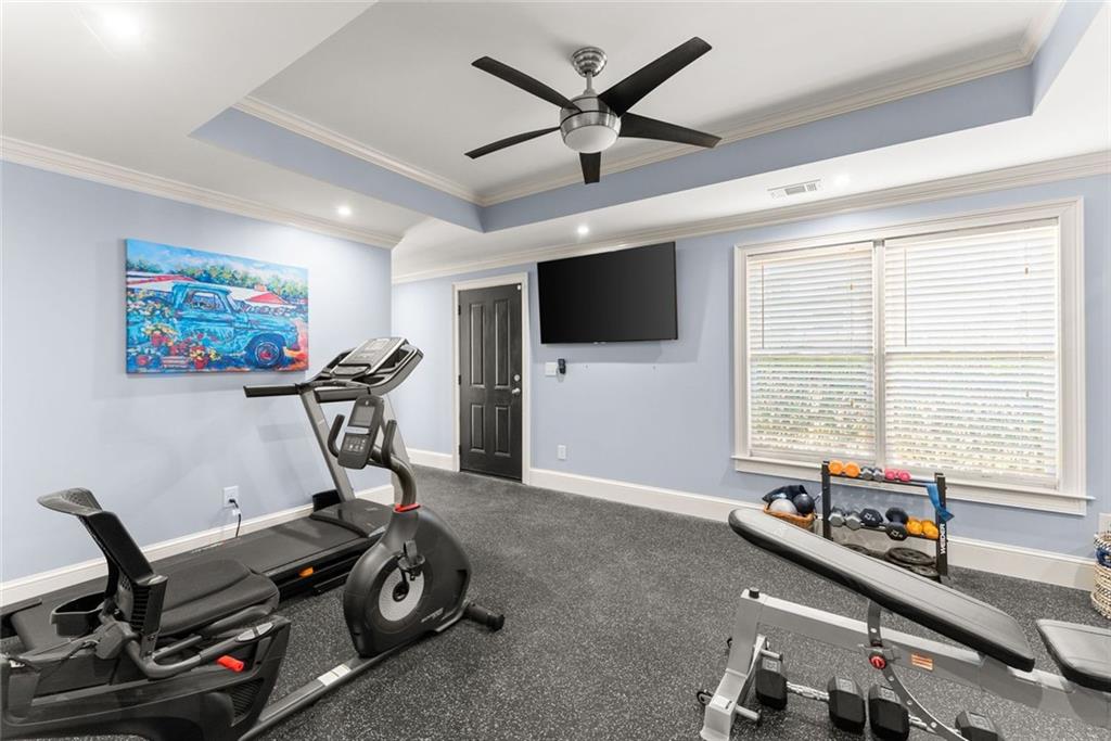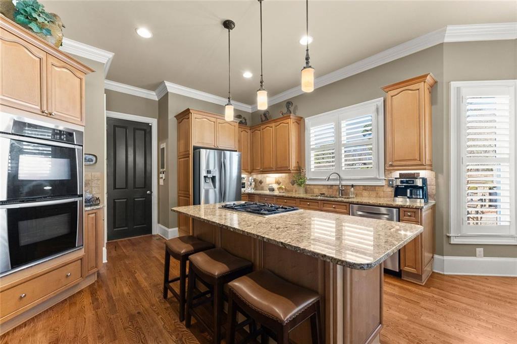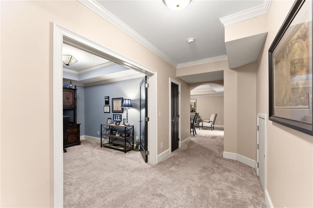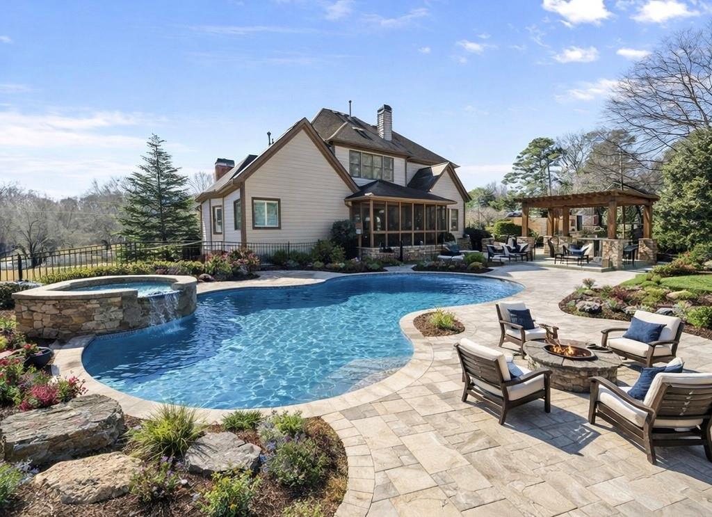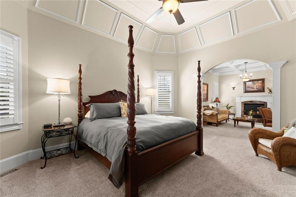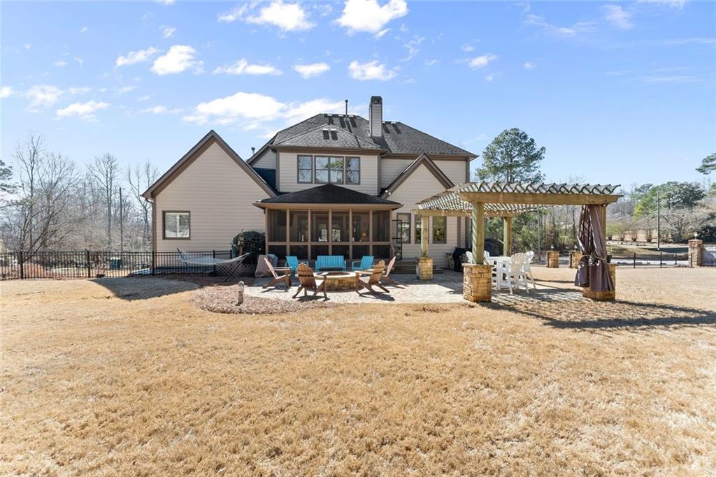 Experience refined living in this exceptional luxury estate with top rated schools and perfectly situated on a large, flat, fenced yard with endless possibilities — including plenty of room for the pool of your dreams. With NO HOA and abundant privacy, this property offers both freedom and tranquility while still delivering every modern luxury. Step inside the grand foyer, where soaring cathedral ceilings and abundant natural light create an unforgettable first impression. Just off the entry, a stunning separate dining room showcases an elegant trey ceiling, setting the stage for memorable gatherings. The heart of the home is the expansive great room, featuring a dramatic stone double-facing fireplace shared with the inviting keeping room. A trey ceiling elevates the space, while rich hardwood floors flow seamlessly throughout the main level. The adjoining gourmet kitchen is thoughtfully designed for both entertaining and everyday living, offering a large breakfast area, double ovens, a separate gas cooktop, generous counter space, and effortless connection to the keeping room. Retreat to the oversized owner’s suite on the main level — a true sanctuary complete with a private sitting room, cozy fireplace, and built-in desk. The spa-inspired master bath features double vanities, a soaking tub, and a spacious shower, along with an expansive walk-in closet thoughtfully designed with separate his-and-her sides. Upstairs, a versatile bonus room accompanies three generously sized bedrooms, each with private bathroom access, providing comfort and privacy for family and guests alike. The fully finished basement is an entertainer’s dream. Enjoy a state-of-the-art theater room, dedicated exercise room, private office space, half bathroom, a second family room, and a large bedroom currently used as a recreation room — offering incredible flexibility for your lifestyle needs. Outdoor living is equally impressive. Relax year-round on the screened porch overlooking the expansive backyard, perfectly suited for a future pool. Evenings can be spent gathered around the custom fire pit and built-in grilling station, creating the ultimate setting for entertaining under the stars. Additional highlights include a spacious three-car garage, ample additional parking, and thoughtful design details throughout. This extraordinary property blends timeless elegance, modern comfort, and unmatched privacy — a rare opportunity to own a truly remarkable home. The property across the street is in the process of being developed. It will have (2) luxury homes built on it and the existing structures will no longer exist. Sidewalks are also coming all along Southers Circle.