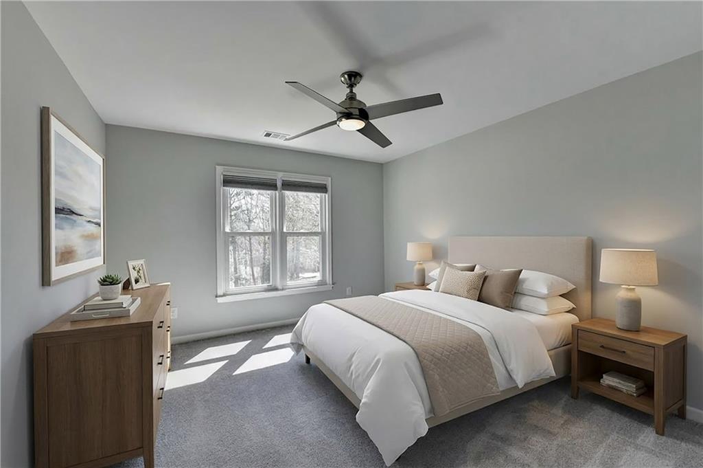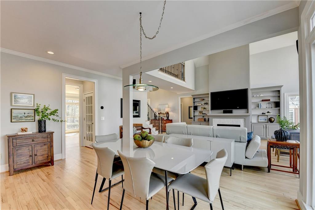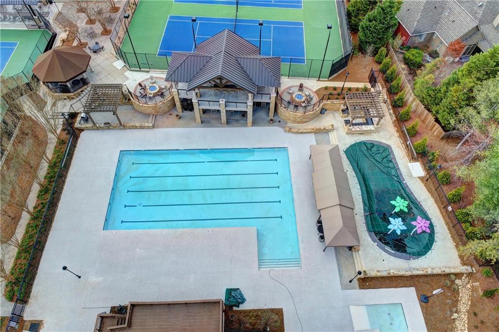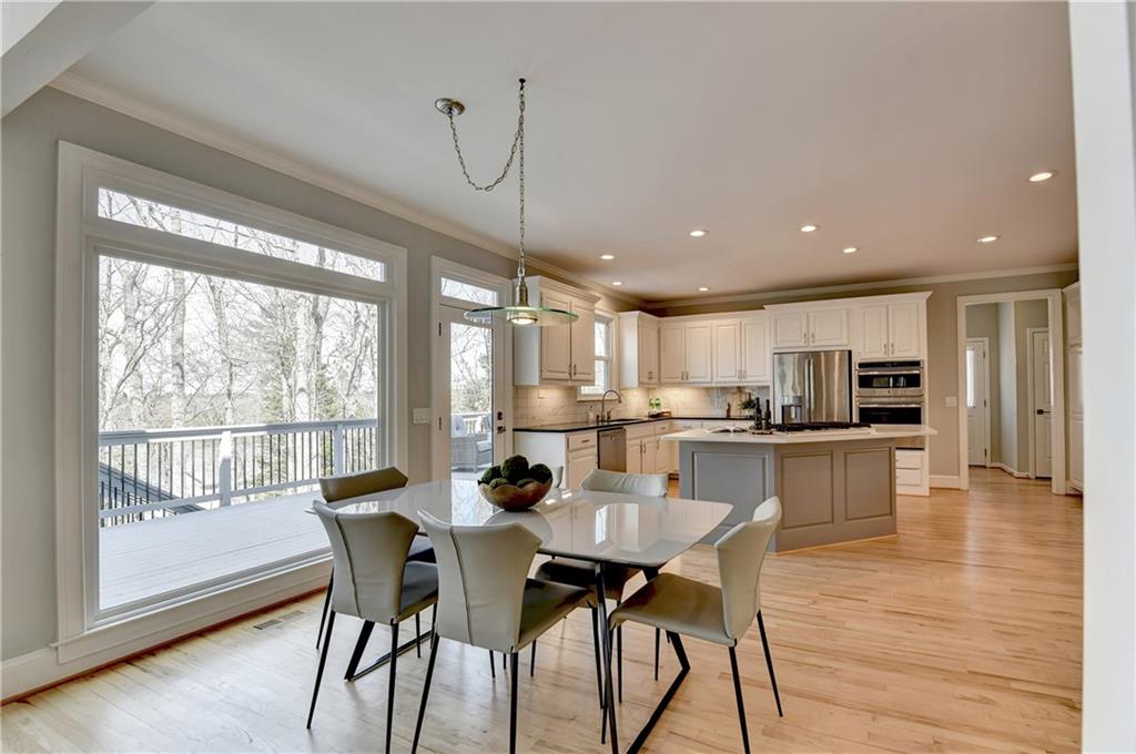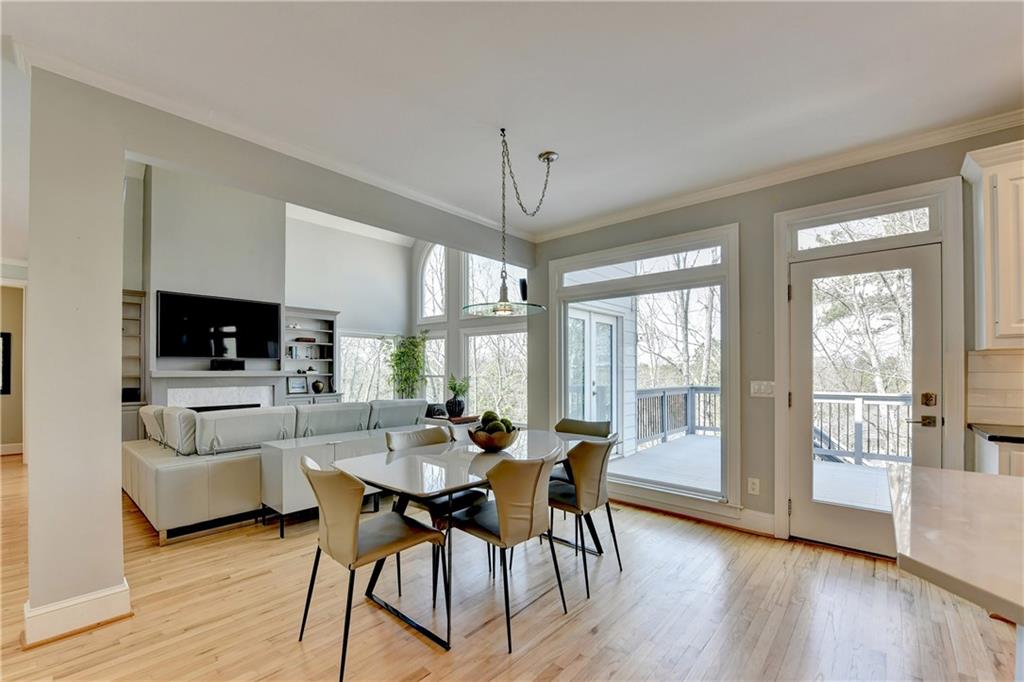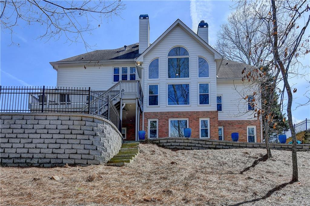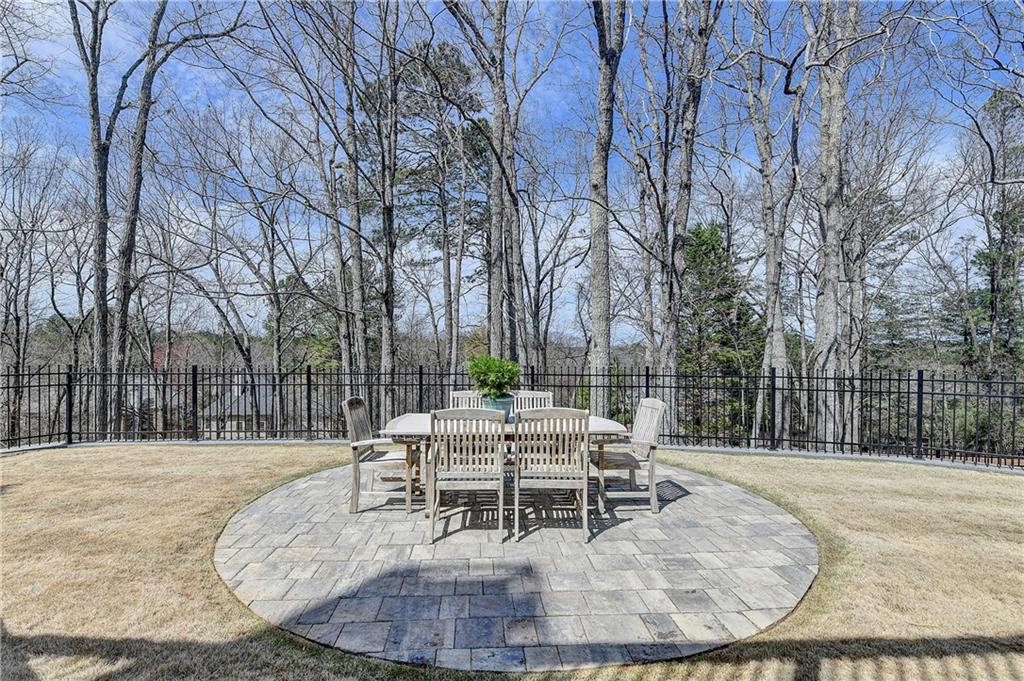 This lovely brick traditional home is located in the Nesbit Lakes community in Alpharetta. Upon entering, you are welcomed by a neutral color palette, a spacious dining room with modern lighting, and a large living room or office with abundant natural light. The two-story fireside family room features built-in bookshelves and a wall of windows that flood the space with light. The updated kitchen offers an island with a gas cooktop, white cabinetry, stone countertops, an updated backsplash, and stainless steel appliances. The eat-in breakfast area overlooks the family room and opens to a generous deck, which looks out over a private backyard with a flat grassy area ideal for entertaining and an expansive natural area. The main floor also includes an ensuite guest bedroom with an updated bathroom and a large laundry room. Upstairs, there are two spacious guest bedrooms with generous closets, each featuring an updated ensuite bathroom with new vanities, granite countertops, and new tile. The oversized owner’s retreat includes a fireside sitting area with built-in bookshelves and separate his-and-hers closets. The newly updated spa-like owner’s bathroom showcases a soaking tub with a freestanding faucet, a large walk-in shower, double vanities, and ample storage. The terrace level offers a family room, guest bedroom, full bathroom, theater room, sauna, and a bonus room that can serve as an exercise room or additional bedroom. This level opens to a patio and the backyard, providing another great space for relaxation or entertaining. Recent upgrades include newer windows, fresh interior paint, updated modern lighting, refinished deck (2024), new under decking over patio area (2024), garage doors replaced (2025), backyard retaining wall rebuilt and fresh backyard landscaping(2022). The home is conveniently located near Newtown Park, restaurants, shopping, and Georgia 400. Nesbit Lakes residents enjoy sidewalks, a clubhouse, pool, tennis courts, pickleball courts, and a lake for fishing and kayaking.