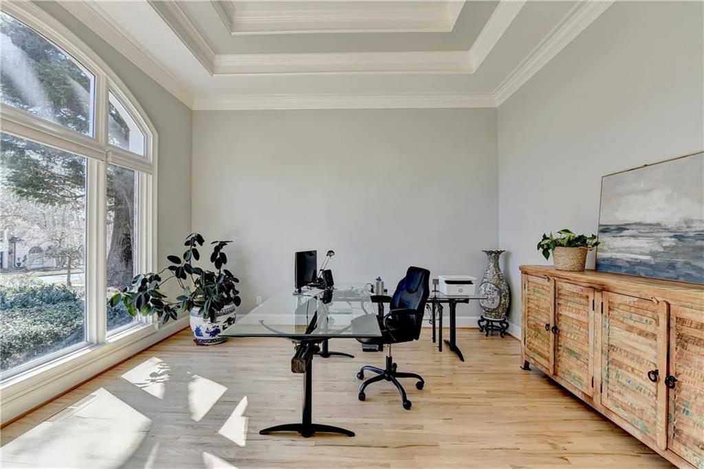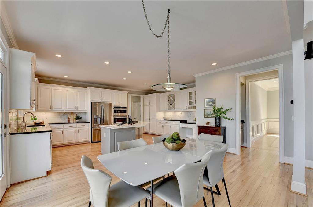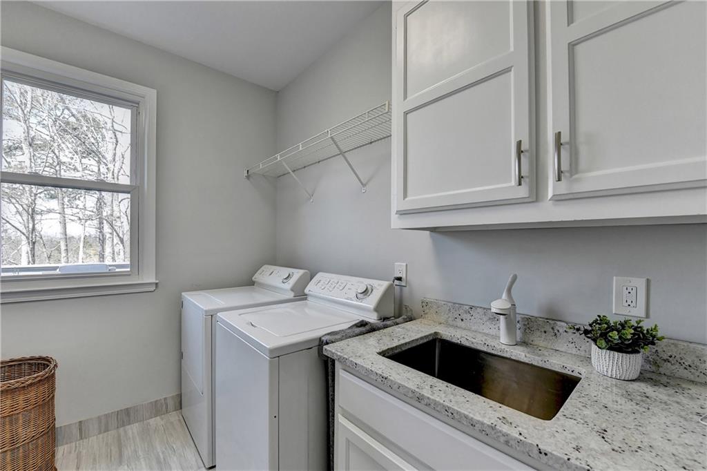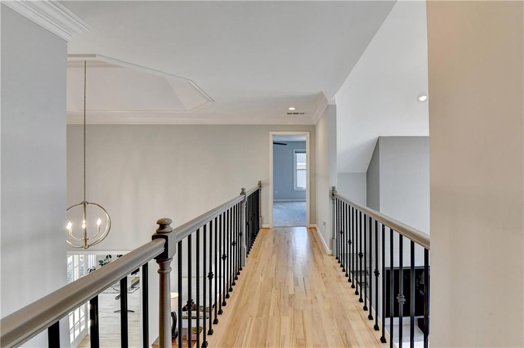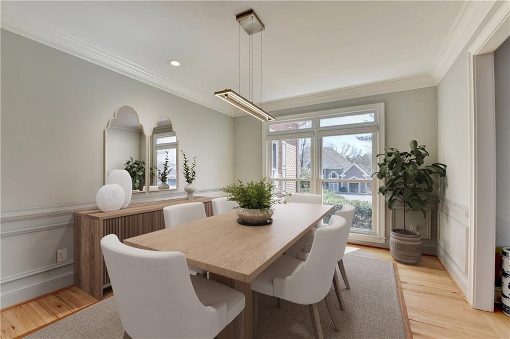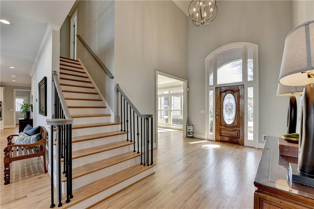 This lovely brick traditional home is located in the Nesbit Lakes community in Alpharetta. Upon entering, you are welcomed by a neutral color palette, a spacious dining room with modern lighting, and a large living room or office with abundant natural light. The two-story fireside family room features built-in bookshelves and a wall of windows that flood the space with light. The updated kitchen offers an island with a gas cooktop, white cabinetry, stone countertops, an updated backsplash, and stainless steel appliances. The eat-in breakfast area overlooks the family room and opens to a generous deck, which looks out over a private backyard with a flat grassy area ideal for entertaining and an expansive natural area. The main floor also includes an ensuite guest bedroom with an updated bathroom and a large laundry room. Upstairs, there are two spacious guest bedrooms with generous closets, each featuring an updated ensuite bathroom with new vanities, granite countertops, and new tile. The oversized owner’s retreat includes a fireside sitting area with built-in bookshelves and separate his-and-hers closets. The newly updated spa-like owner’s bathroom showcases a soaking tub with a freestanding faucet, a large walk-in shower, double vanities, and ample storage. The terrace level offers a family room, guest bedroom, full bathroom, theater room, sauna, and a bonus room that can serve as an exercise room or additional bedroom. This level opens to a patio and the backyard, providing another great space for relaxation or entertaining. Recent upgrades include newer windows, fresh interior paint, updated modern lighting, refinished deck (2024), new under decking over patio area (2024), garage doors replaced (2025), backyard retaining wall rebuilt and fresh backyard landscaping(2022). The home is conveniently located near Newtown Park, restaurants, shopping, and Georgia 400. Nesbit Lakes residents enjoy sidewalks, a clubhouse, pool, tennis courts, pickleball courts, and a lake for fishing and kayaking.