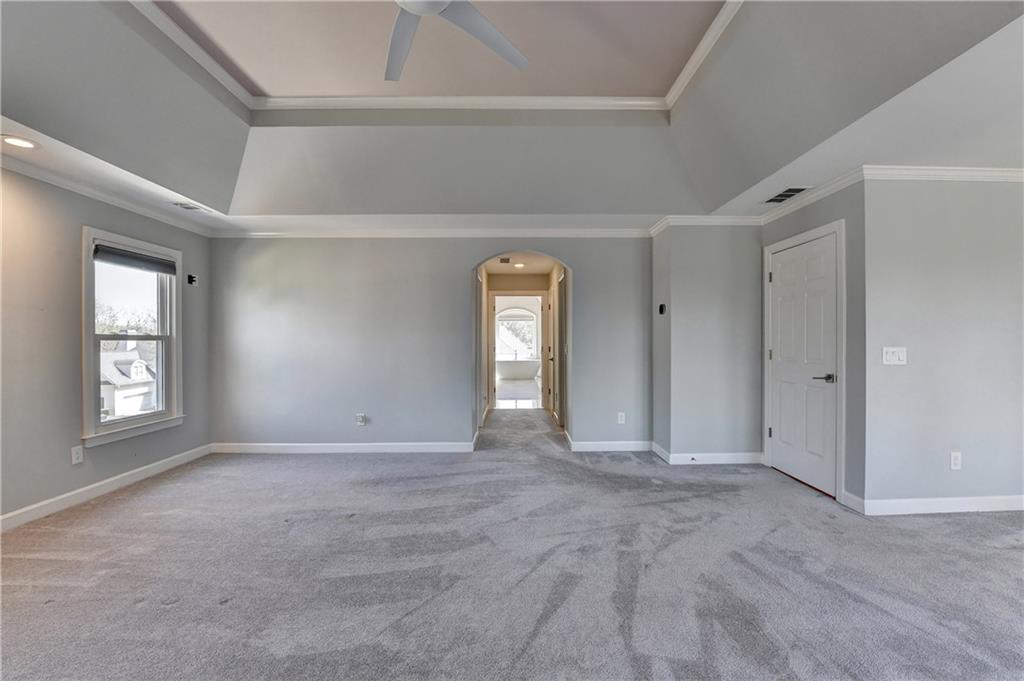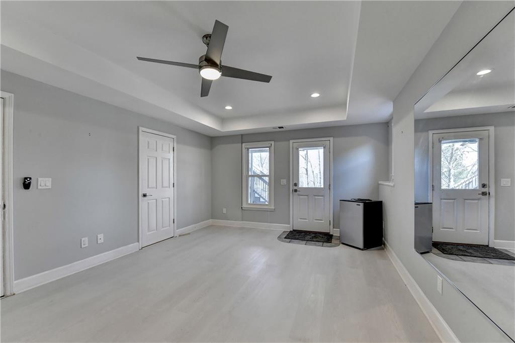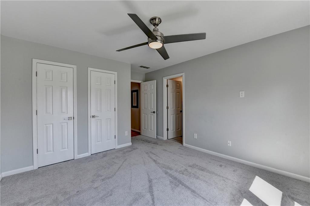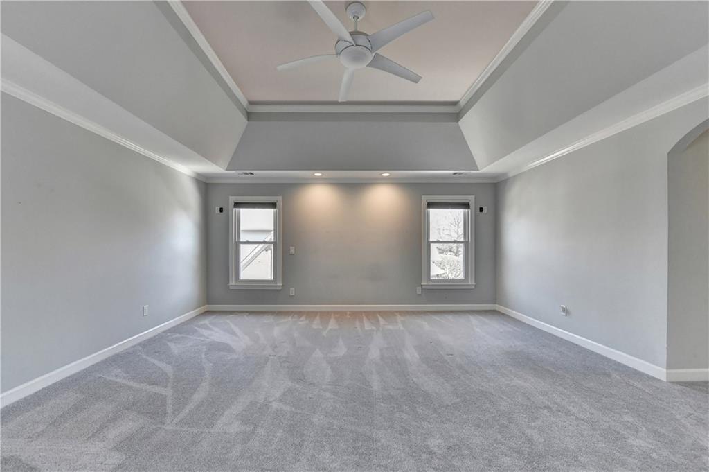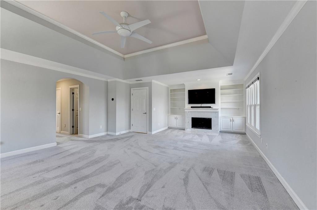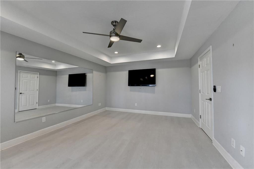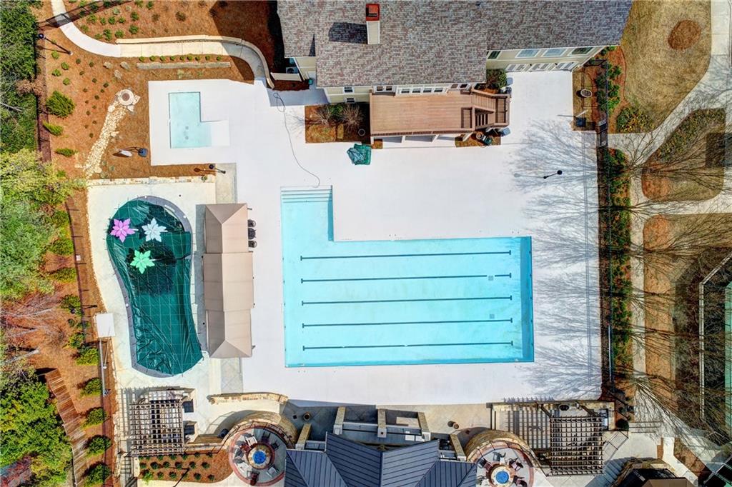This lovely brick traditional home is located in the Nesbit Lakes community in Alpharetta. Upon entering, you are welcomed by a neutral color palette, a spacious dining room with modern lighting, and a large living room or office with abundant natural light. The two-story fireside family room features built-in bookshelves and a wall of windows that flood the space with light. The updated kitchen offers an island with a gas cooktop, white cabinetry, stone countertops, an updated backsplash, and stainless steel appliances. The eat-in breakfast area overlooks the family room and opens to a generous deck, which looks out over a private backyard with a flat grassy area ideal for entertaining and an expansive natural area. The main floor also includes an ensuite guest bedroom with an updated bathroom and a large laundry room. Upstairs, there are two spacious guest bedrooms with generous closets, each featuring an updated ensuite bathroom with new vanities, granite countertops, and new tile. The oversized owner’s retreat includes a fireside sitting area with built-in bookshelves and separate his-and-hers closets. The newly updated spa-like owner’s bathroom showcases a soaking tub with a freestanding faucet, a large walk-in shower, double vanities, and ample storage. The terrace level offers a family room, guest bedroom, full bathroom, theater room, sauna, and a bonus room that can serve as an exercise room or additional bedroom. This level opens to a patio and the backyard, providing another great space for relaxation or entertaining. Recent upgrades include newer windows, fresh interior paint, updated modern lighting, refinished deck (2024), new under decking over patio area (2024), garage doors replaced (2025), backyard retaining wall rebuilt and fresh backyard landscaping(2022). The home is conveniently located near Newtown Park, restaurants, shopping, and Georgia 400. Nesbit Lakes residents enjoy sidewalks, a clubhouse, pool, tennis courts, pickleball courts, and a lake for fishing and kayaking.