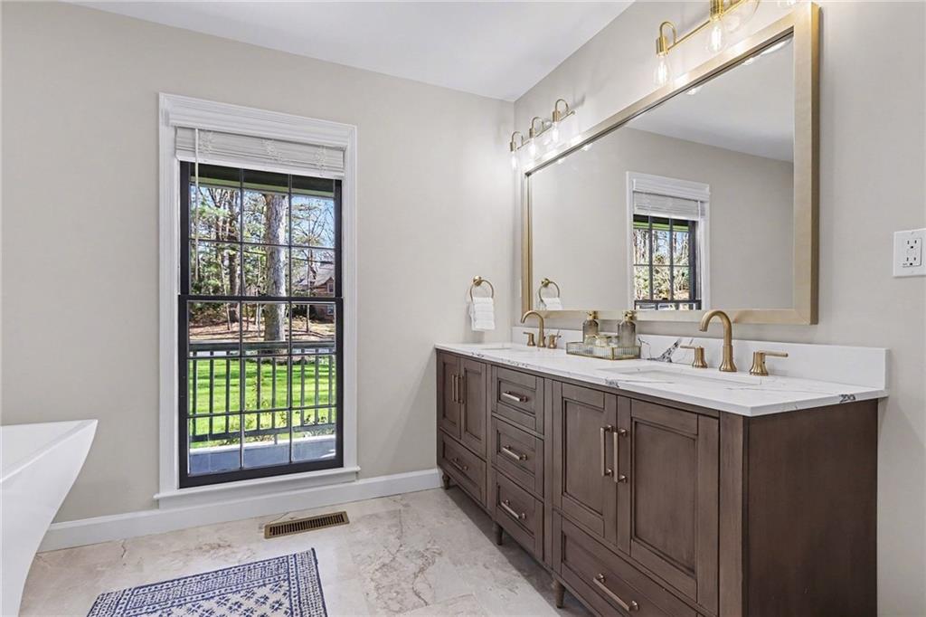 An exquisite, fully remodeled high-end residence in a prime corridor. Property Highlights Renovations: The home has been fully remodeled with a brand-new roof and refined finishes. Outdoor Living: Features new professional landscaping, a private hot tub retreat, a gravel patio, and a fire pit area. Interior Features: 3,380 sq. ft. of living space with 4 to 5 bedrooms and 2.5 to 3.5 bathrooms. Updated eat-in kitchen with stone counters, breakfast bar, and stainless steel appliances. Formal dining and living rooms, plus a great room with a second fireplace. Bonus room located in the 2-car garage, suitable for a craft room or workshop. Terms: The home is currently marketed as being sold furnished, though some listings indicate the seller is open to options. Community: Located in the Spalding Woods subdivision. Nearby Amenities: Moments from major business centers, shopping, and dining in both Sandy Springs and Dunwoody.