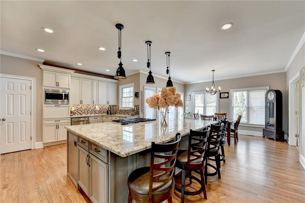 Just Listed in the Meadows, on a premier cul-de-sac street of sought-after Seven Oaks, this beautifully appointed home offers timeless elegance, thoughtful updates, and an exceptional location within the highly acclaimed Northview High School district. Johns Creek, Georgia, was ranked the #1 Best Place to Live in the U.S. for 2025-2026 by U.S. News & World Report. From the moment you arrive, the home’s impressive presence on more than a half acre lot and desirable three-car side-entry garage set the stage for the quality and space found throughout. Up to a $7500 lender credit available (can be used toward standard closing costs or interest rate buydown) with preferred lender Matt Kuglin with Onward Home Mortgage! Step inside the dramatic two-story foyer and discover gleaming hardwood floors that flow through most of the home. Just off the foyer, stained glass doors open to a spacious study highlighted by bay windows, creating an inviting and light-filled workspace. The elegant dining room features a tray ceiling and generous proportions, perfect for hosting gatherings both large and intimate. At the heart of the home is a completely remodeled gourmet kitchen designed to impress even the most discerning chef. Custom pull-out shelving enhances the beautifully crafted cabinetry, while a massive island topped with striking Bordeaux Dream granite from Brazil provides both seating and an eye-catching centerpiece. High-end stainless steel appliances include a Dacor six-burner gas cooktop, double ovens, and a KitchenAid dishwasher. A walk-in pantry, butler’s pantry, and an expansive breakfast area add both convenience and functionality to this stunning culinary space. The kitchen flows seamlessly into the dramatic two-story family room, where a stacked stone fireplace is flanked by custom built-in bookcases, creating a warm and inviting gathering place. Just beyond, a vaulted sunroom provides the perfect retreat to enjoy year-round views of the fenced backyard. The main level also offers a desirable dual staircase, guest bedroom with an updated ensuite bath featuring a shower with built-in seating, providing comfort and privacy for visitors. Upstairs, the oversized primary suite serves as a true sanctuary with hardwood floors, a spacious sitting room, and a spa-inspired vaulted bath complete with updated fixtures, a relaxing jacuzzi tub, a stained glass window and a custom built-in closet system. Secondary bedrooms upstairs are generously sized and enhanced with vaulted and tray ceilings and custom closets. An ensuite bath upstairs has been updated with a frameless shower and designer details. The upstairs laundry room includes cabinetry and a sink for practical everyday living. The basement features high ceilings and is already stubbed for a bath, offering endless possibilities for future expansion including additional living space, recreation areas, or a home theater. Outside, a large deck overlooks the fenced backyard, creating an ideal setting for outdoor entertaining or peaceful evenings at home. Over $138K in home improvements. Residents of Seven Oaks enjoy an outstanding amenity package that includes a beautiful clubhouse, Junior Olympic-size swimming pool, fitness center, eight lighted tennis courts, pickleball, a scenic fishing lake, playground, and park—offering a vibrant lifestyle in one of the area’s most desirable communities. This exceptional home combines luxury updates, spacious living, and an unbeatable location, making it a rare opportunity in The Meadows at Seven Oaks near the upcoming Avalon inspired Medley Town Center in Johns Creek!