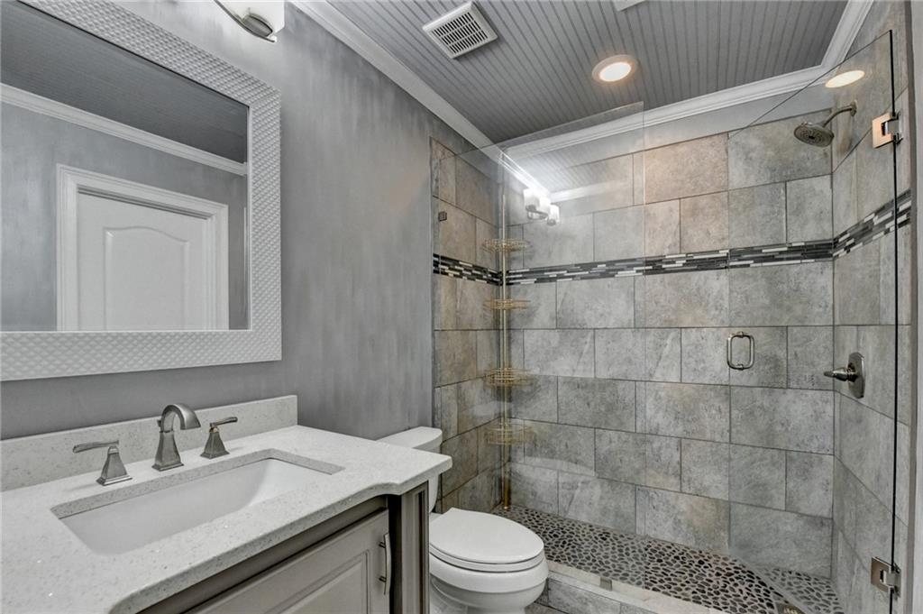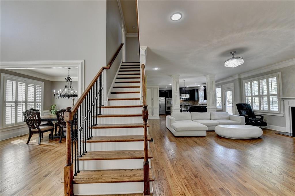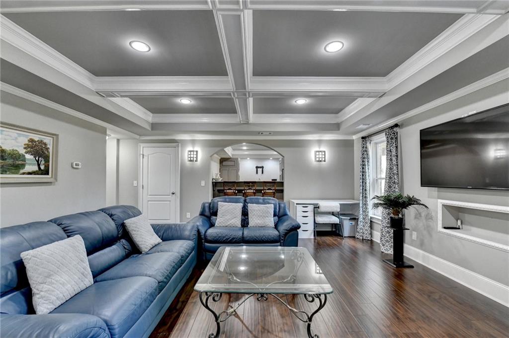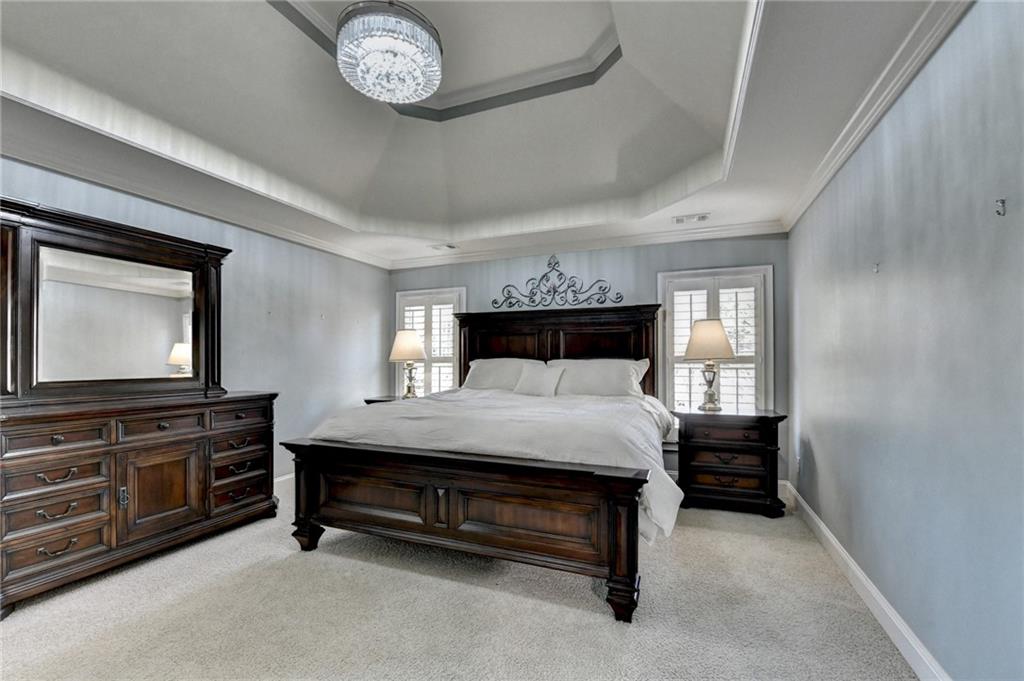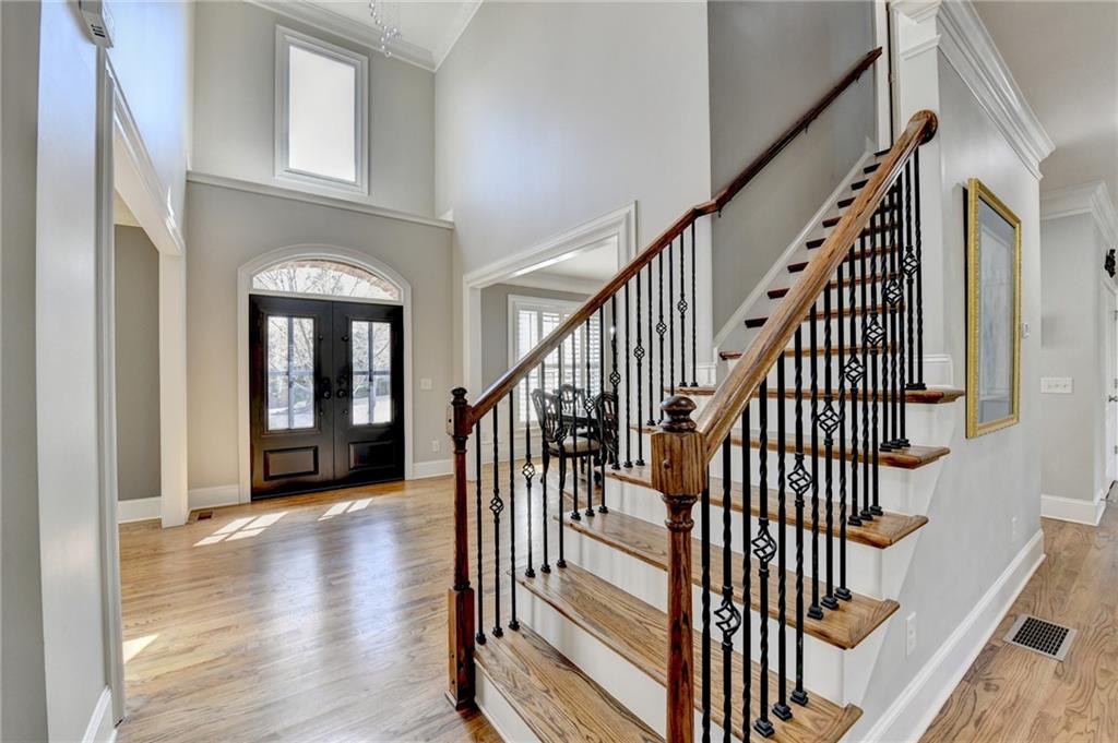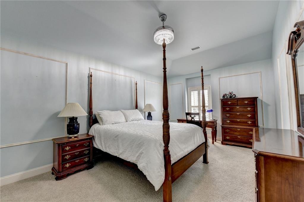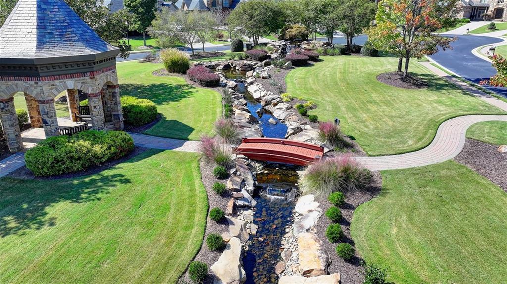STUNNING ALL BRICK 2011-built home in the gated, highly sought-after ST MARLO COUNTRY CLUB, featuring top-rated schools and low Forsyth County taxes. Recent upgrades include a 2023 ROOF, new iron double entry doors, new light fixtures, and three HVAC units. Situated on a CUL-DE-SAC street with a charming gazebo and waterfall, the home offers LEVEL front and backyards. Enter through the striking IRON doors into a foyer that opens to a banquet-sized dining room and elegant living room. The main level includes a bedroom with closet, powder room, and a spacious family room that flows into the chef’s kitchen with stone countertops and stainless steel appliances, plus a large mudroom. Step out from the family room onto the deck overlooking the level backyard, offering plenty of space for a future pool and outdoor living area. The second story features the vaulted primary suite with a sitting area, luxurious spa-like bath, and oversized his-and-her closets, one vaulted bedroom with walk-in closet and private bath plus two additional vaulted bedrooms with walk-in closets sharing a Jack-and-Jill bath complete the second level. The terrace level is filled with natural light and offers an abundance of windows, a billiard room, recreation room with a gorgeous granite bar, a 5th bedroom, and a luxurious frameless glass bath. Additional spaces include a bonus/playroom, office or theater room, plus unfinished storage space with potential for future expansion.