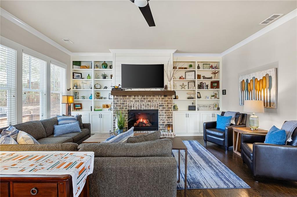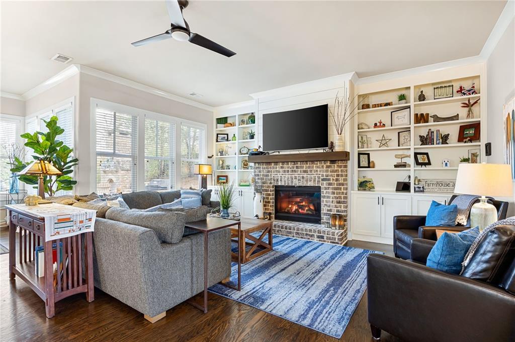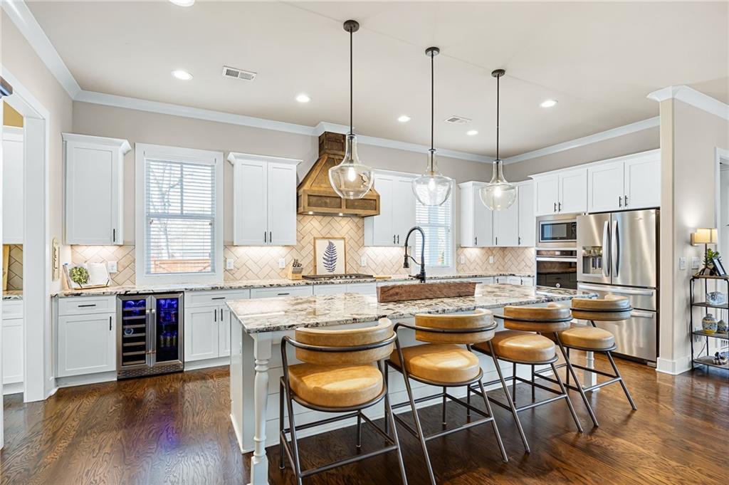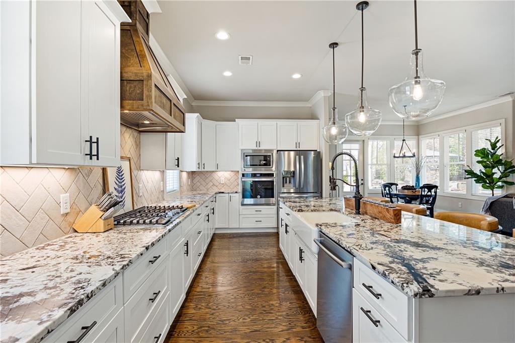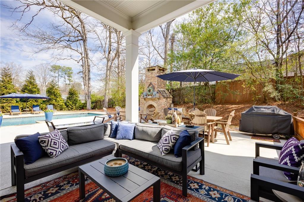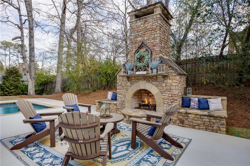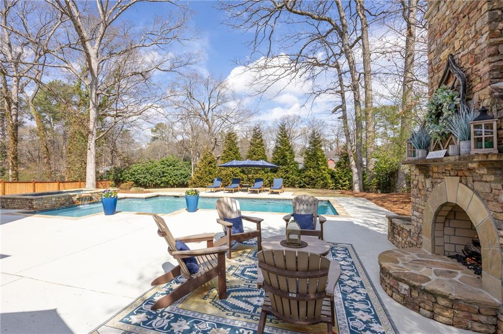 Located near Smyrna's Market Village and moments from Tolleson Park, this exceptional 5-bedroom, 4-bath residence offers a rare combination of location, thoughtful design, and amenities rarely found at a single address. Some homes check boxes. This one rewrites the list. Inside, rich hardwood floors set the tone immediately. The dining room, graced with a beamed ceiling, transitions through a butler’s pantry into a chef's kitchen appointed with high-end granite, stainless appliances, and an expansive island. Open to the family room — a layout designed for easy, enjoyable everyday living, yet exceptionally well suited for entertaining on any scale. A main-level study with full bath doubles as a guest suite or private retreat, and flexible enough to shift with whatever life demands next. Upstairs, the primary suite is generously proportioned, with an expansive walk-in closet and a spa-caliber bath. Three additional bedrooms are thoughtfully arranged — two connected by a Jack-and-Jill bath and one with its own private en-suite. A dedicated EV charging station in the garage quietly signals that every detail has been considered. Step outside, and discover some of the home’s most compelling features: Two covered porches — front and rear — and a backyard that stops you in your tracks. A heated saltwater pebble-tec pool takes center stage, its integrated spa cascading via waterfall into the main pool. A beautifully crafted outdoor fireplace creates a natural gathering point and extends the season well into Georgia’s cooler months. This is not just a backyard. It is a private retreat. Summer gatherings. Winter evenings by the fire. A seamless extension of the home itself. There’s that rare home people hope to find — and seldom do. This is that home.