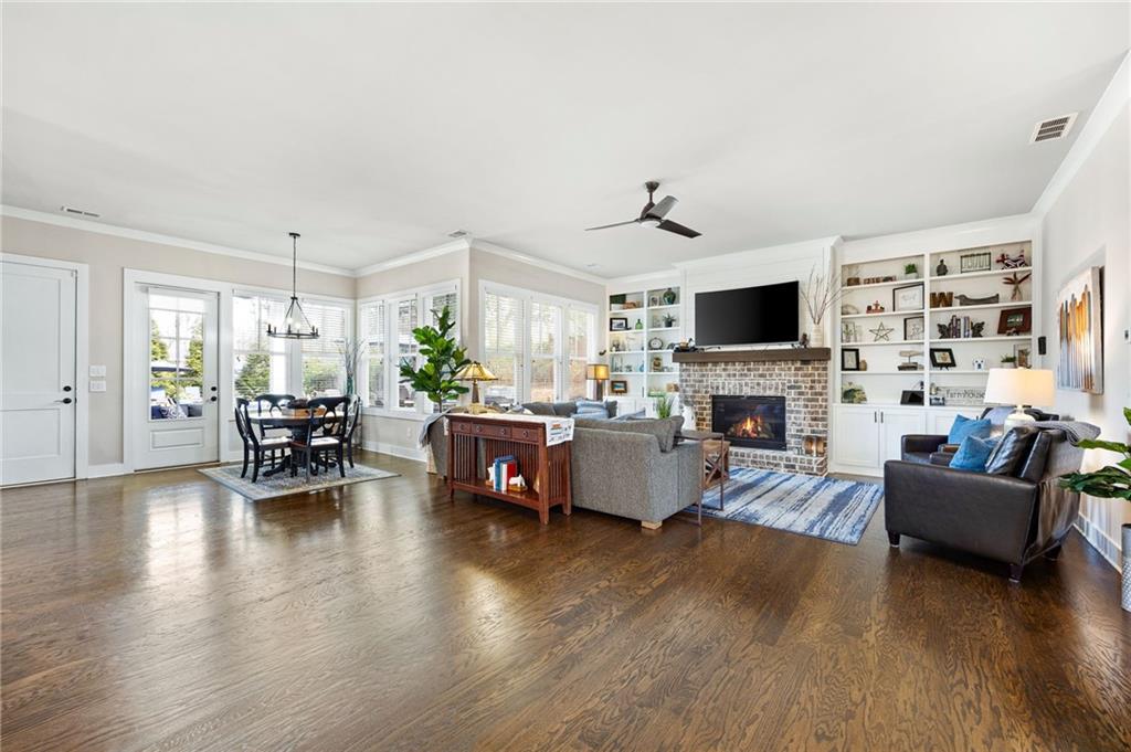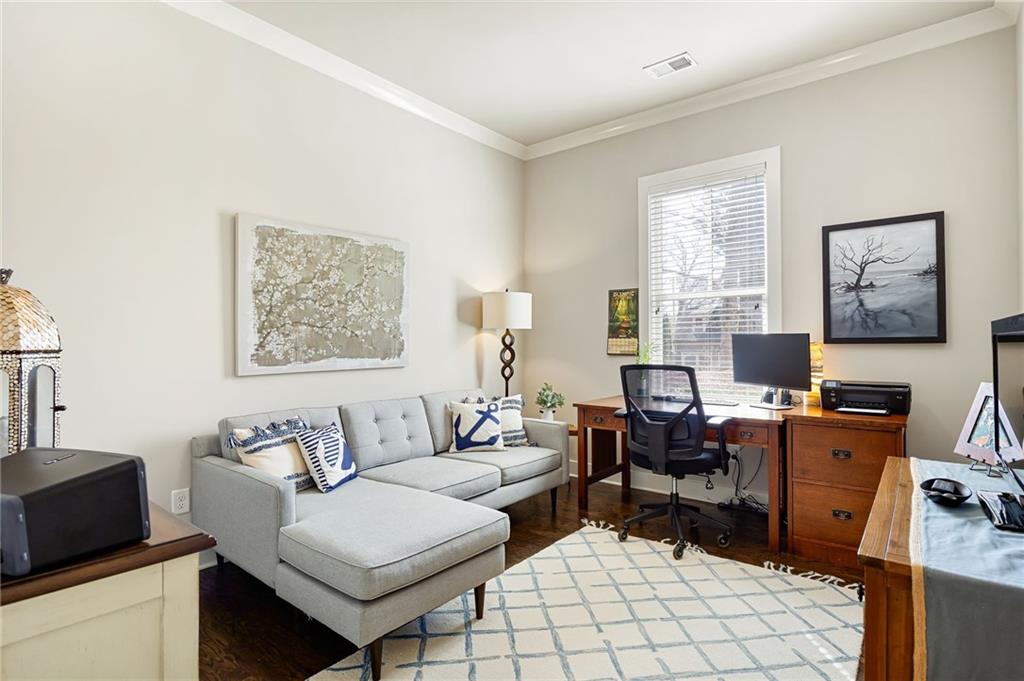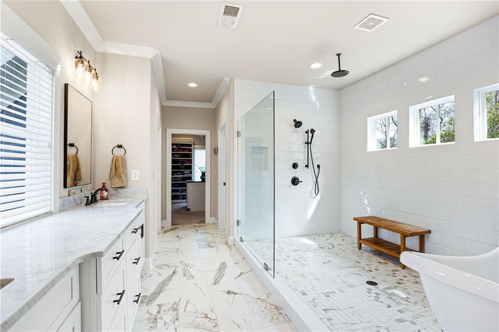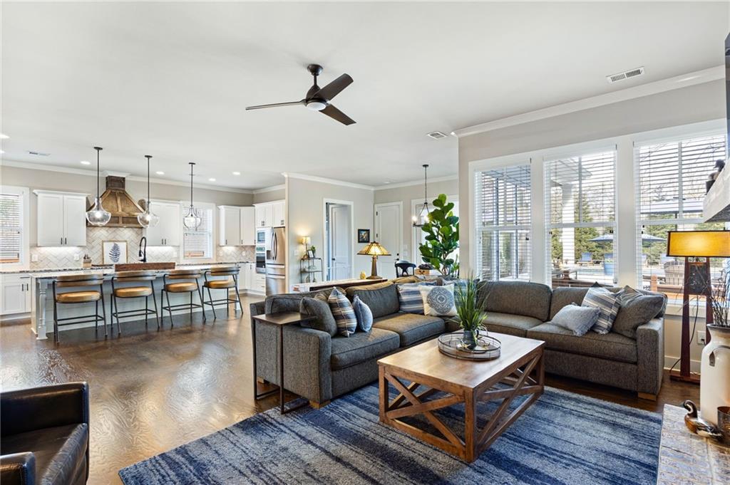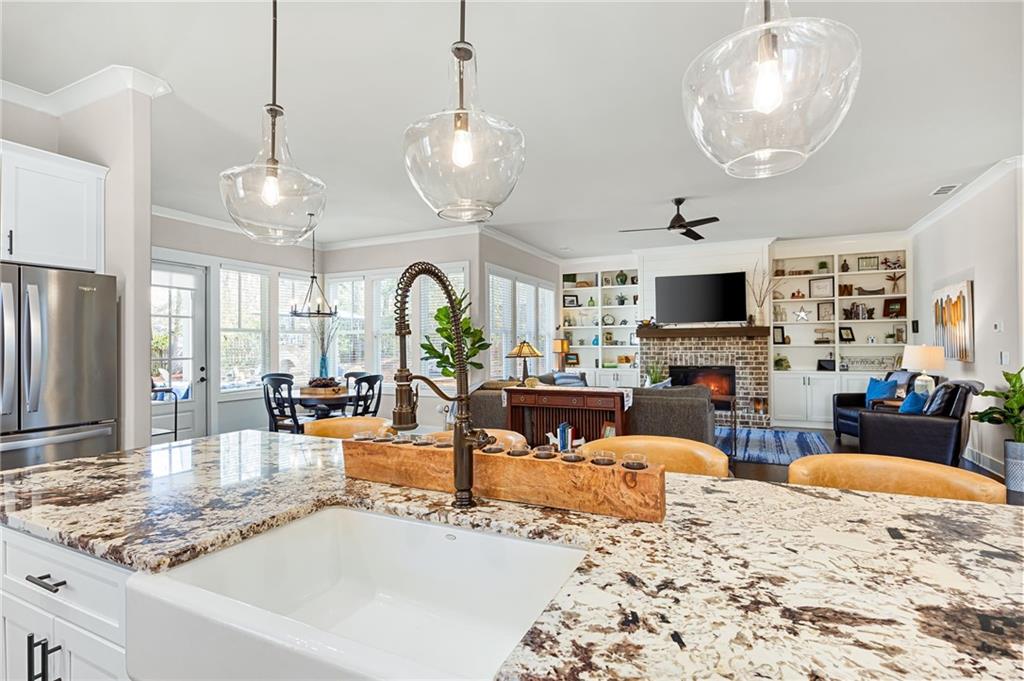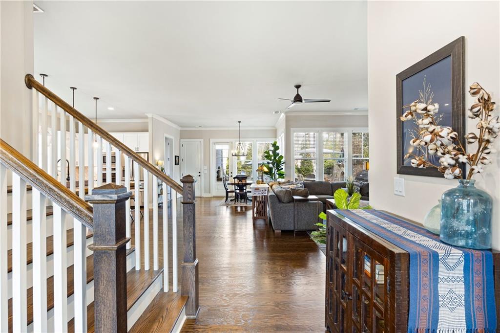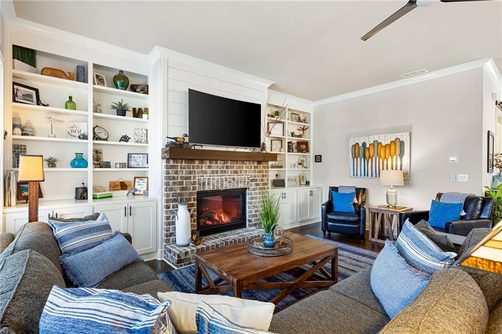 Located near Smyrna's Market Village and moments from Tolleson Park, this exceptional 5-bedroom, 4-bath residence offers a rare combination of location, thoughtful design, and amenities rarely found at a single address. Some homes check boxes. This one rewrites the list. Inside, rich hardwood floors set the tone immediately. The dining room, graced with a beamed ceiling, transitions through a butler’s pantry into a chef's kitchen appointed with high-end granite, stainless appliances, and an expansive island. Open to the family room — a layout designed for easy, enjoyable everyday living, yet exceptionally well suited for entertaining on any scale. A main-level study with full bath doubles as a guest suite or private retreat, and flexible enough to shift with whatever life demands next. Upstairs, the primary suite is generously proportioned, with an expansive walk-in closet and a spa-caliber bath. Three additional bedrooms are thoughtfully arranged — two connected by a Jack-and-Jill bath and one with its own private en-suite. A dedicated EV charging station in the garage quietly signals that every detail has been considered. Step outside, and discover some of the home’s most compelling features: Two covered porches — front and rear — and a backyard that stops you in your tracks. A heated saltwater pebble-tec pool takes center stage, its integrated spa cascading via waterfall into the main pool. A beautifully crafted outdoor fireplace creates a natural gathering point and extends the season well into Georgia’s cooler months. This is not just a backyard. It is a private retreat. Summer gatherings. Winter evenings by the fire. A seamless extension of the home itself. There’s that rare home people hope to find — and seldom do. This is that home.