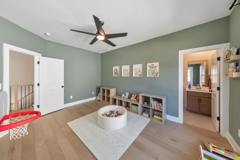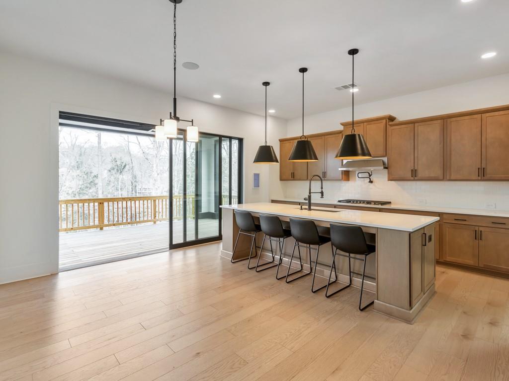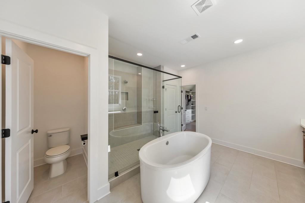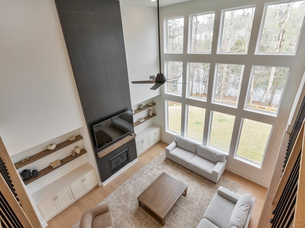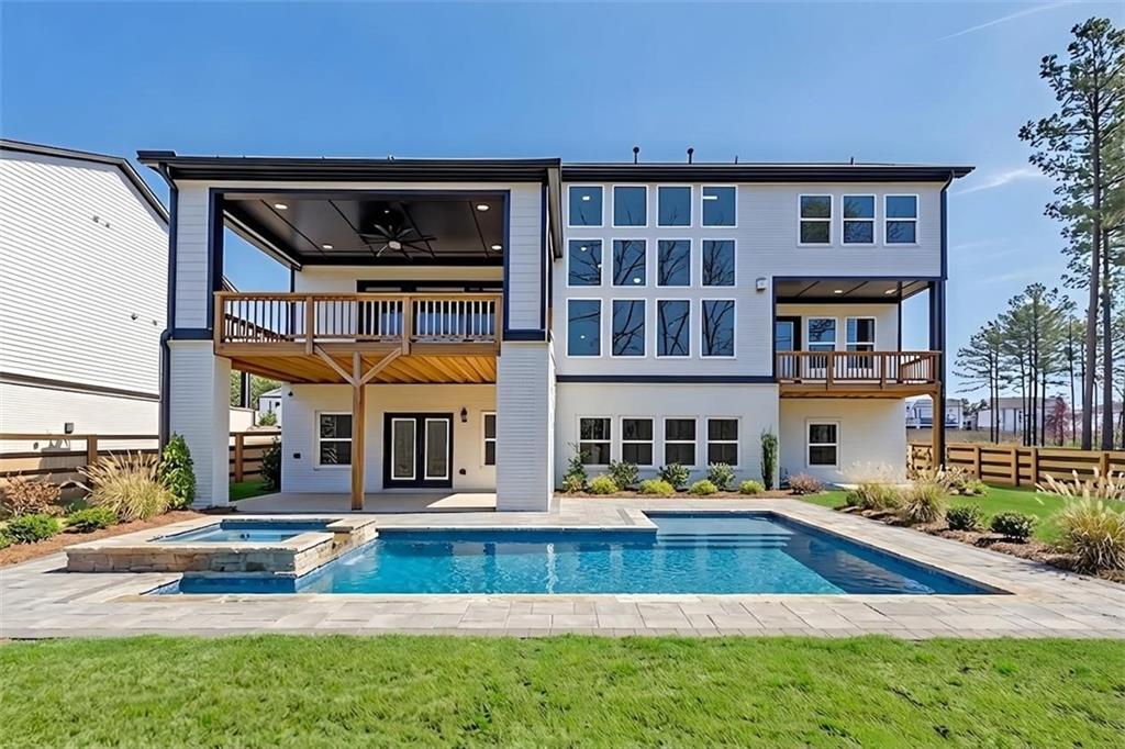 Welcome home to this exquisite 5 bedroom, 4 bathroom home built in 2024 in the highly sought-after Holly Farm community, perfectly situated on a private cul-de-sac lot with stunning lake views. This beautifully maintained home showcases exceptional craftsmanship, designer details, and a bright, airy floorplan filled with natural light, complemented by hardwood flooring throughout and a wired whole-home audio system for sound throughout. A charming covered front porch welcomes you into a grand two-story foyer, setting the tone for the elegance found throughout the home. Just off the entry, a private office with French doors and custom built-in bookshelves provides the perfect work-from-home space, while the separate dining room flows into the heart of the home—the modern kitchen. Designed for both everyday living and entertaining, the kitchen features abundant cabinetry, stone countertops, a large center island with seating, stainless steel appliances, and a sunny breakfast area. Accordion doors open from the kitchen to the covered deck, creating a seamless indoor/outdoor flow ideal for entertaining. The impressive two-story fireside family room is a true showstopper, complete with built-in bookshelves and a dramatic wall of windows that frame picturesque lake views. A secondary bedroom and full bathroom on the main level offer flexibility for guests or multigenerational living. Upstairs, the oversized primary suite is a luxurious retreat featuring a sitting area, tray ceilings, and a spa-inspired ensuite bath with dual vanities, a soaking tub, a sleek glass double shower, and a spacious walk-in closet with custom cabinetry. Three additional generously sized bedrooms, each with walk-in closets, share two full bathrooms on this level. A conveniently located upper-level laundry room with a sink adds to the home’s thoughtful design. The full unfinished basement offers endless potential to expand and customize to fit your lifestyle, and already includes a partially finished workout area. Outdoor living is equally impressive, with two covered decks on the main level and a covered patio below—perfect for relaxing or entertaining while enjoying peaceful lake views. The fenced-in backyard is spacious and level, offering ample room for a future pool while still leaving plenty of green space to enjoy. Additional features include an attached two-car garage and access to Holly Farm’s exceptional amenities, including a community pool, pickleball courts, pool house, firepit area, and nature trail. Ideally located with easy access to Downtown Woodstock, Downtown Milton, Downtown Alpharetta, and a variety of shopping, dining, and entertainment options, this home truly offers the best of luxury, comfort, and convenience.