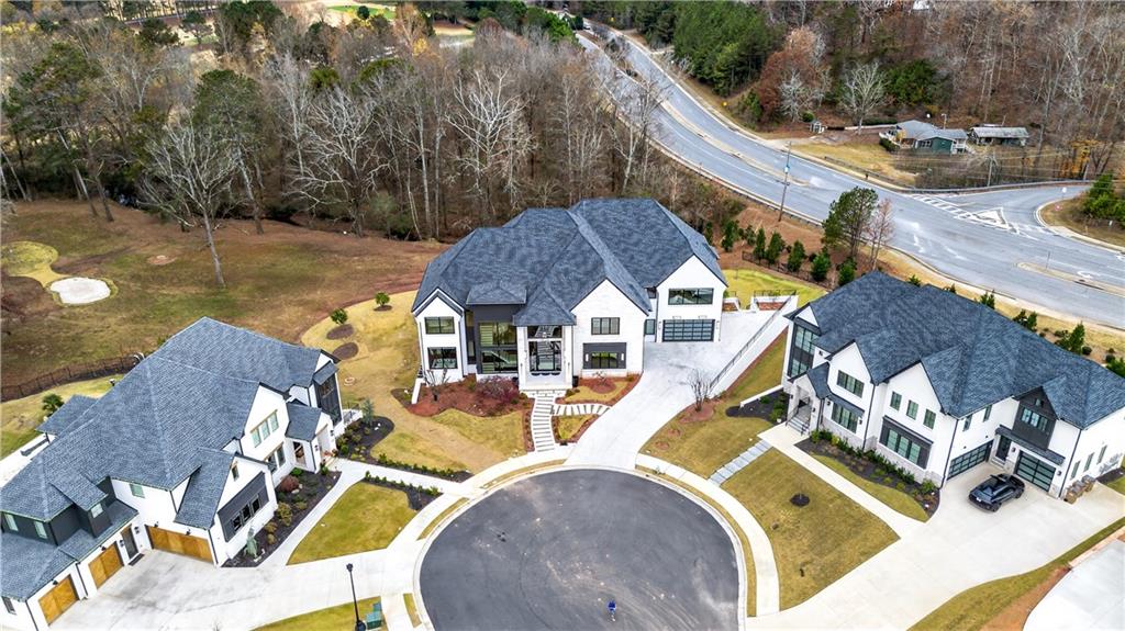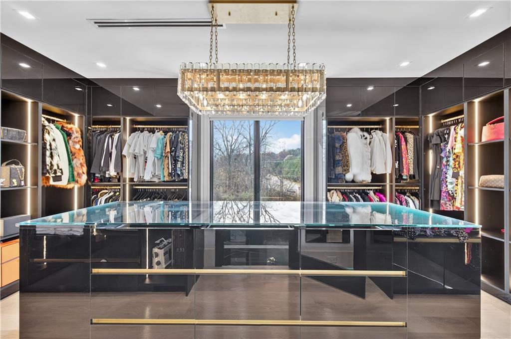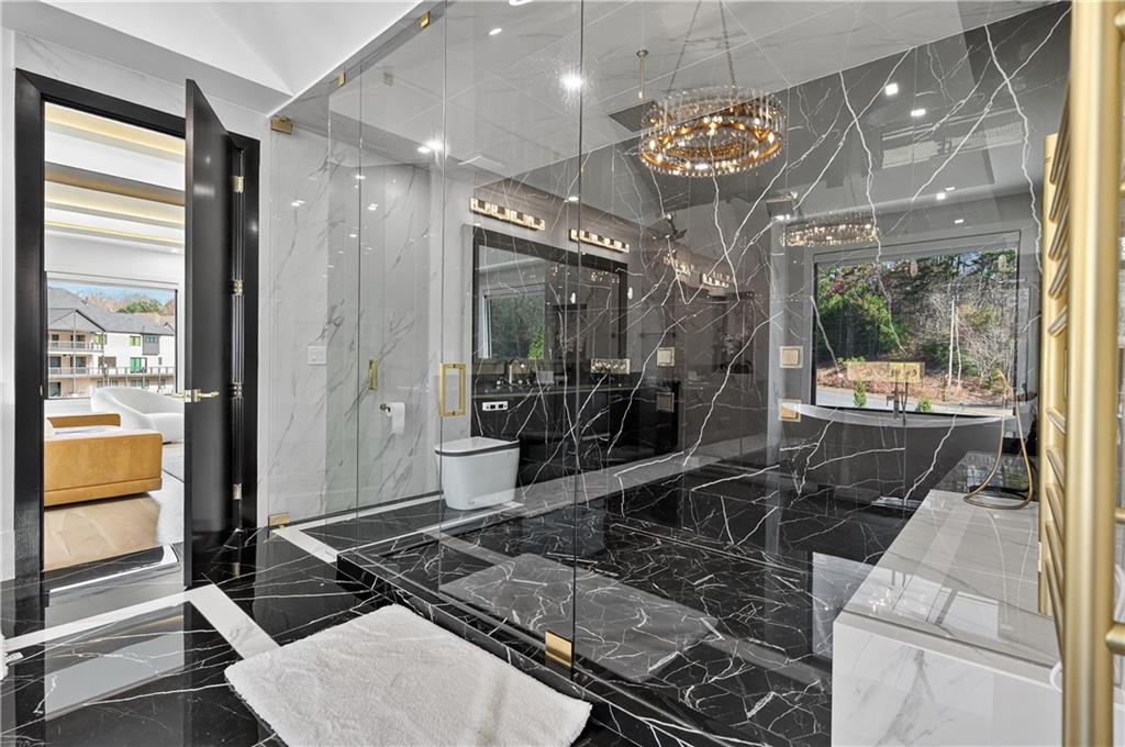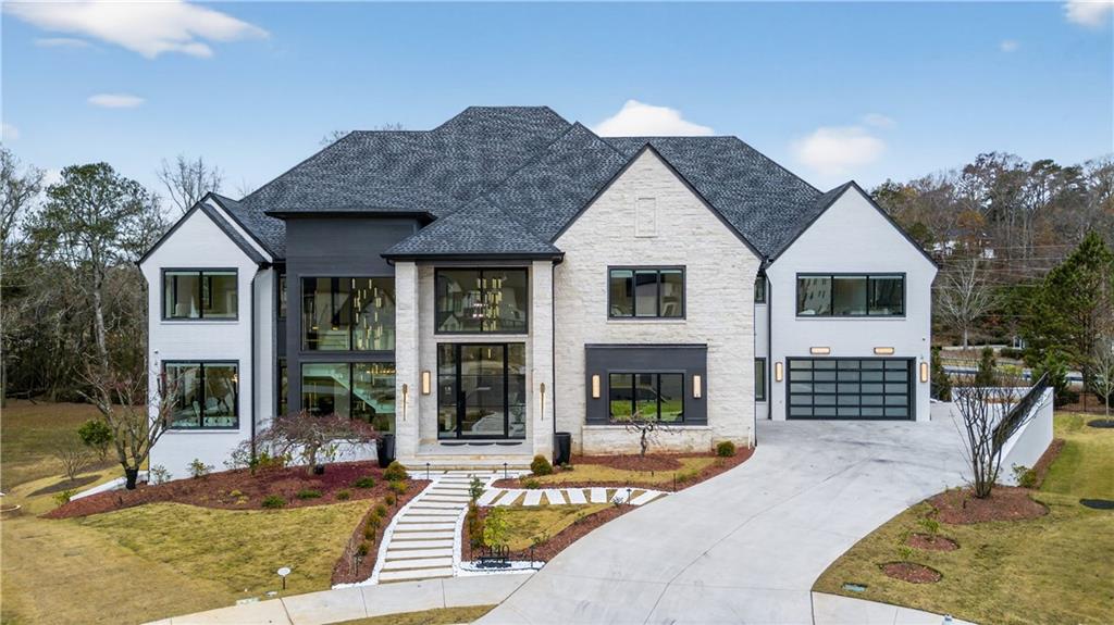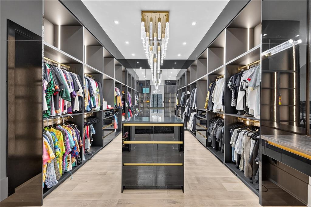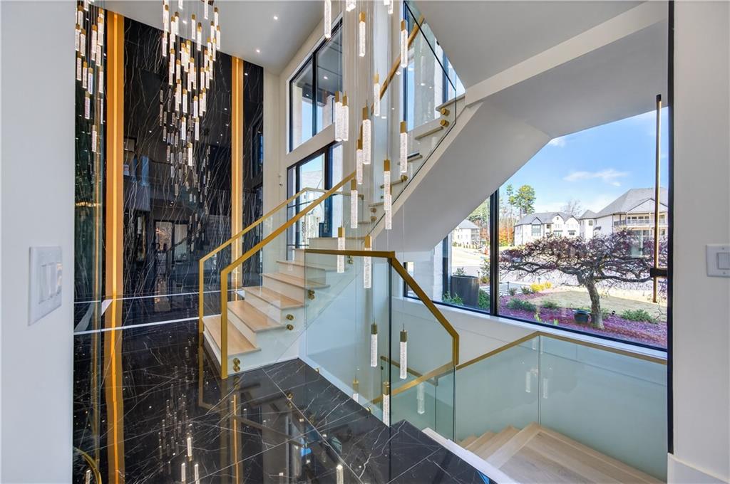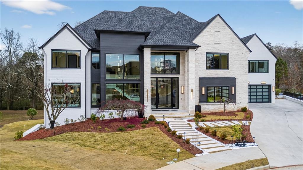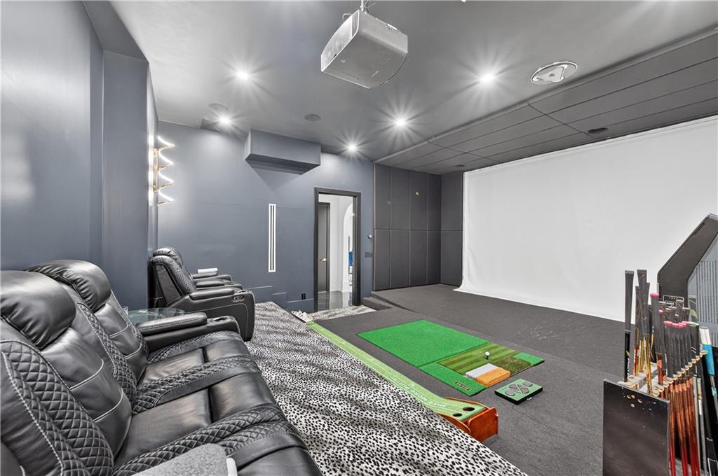 A rare opportunity to own a 15,600 sq ft ultra-luxury masterpiece built by award-winning Ronnie Rock Homes in one of Suwanee’s most exclusive gated enclaves. This 8-bedroom, 9.5-bath modern estate blends striking architectural design with resort-level amenities and advanced smart-home technology. A dramatic 12-ft glass entry door opens into a two-story foyer with a custom curved glass staircase and oversized aluminum-clad windows flooding the interior with natural light. Main and terrace levels feature 11-ft ceilings, premium tile flooring, and seamless indoor-outdoor flow through 11 sliding glass doors leading to multiple decks and patios. Lighting is a work of art here, with over 830 recessed fixtures, designer chandeliers, and integrated LED accents throughout. The chef’s kitchen is anchored by an impressive 11' x 7' waterfall quartz island, surrounded by high-gloss European cabinetry, Miele appliances, double dishwashers, induction cooktop with pot filler, built-in coffee system, and a walk-in pantry with an additional oversized fridge and cabinetry. The open living room centers around a 72-inch slab-tile fireplace and full smart-home lighting and audio controlled by a Control4 system with speakers throughout the home. The home offers three luxurious primary suites, including a main-level owner’s retreat with Juliet balcony, fireplace, spa bathroom, smart toilet, and boutique-style custom closet with private laundry. Upstairs, two additional oversized suites feature vaulted ceilings, spa baths, and private deck access. Three more bedrooms, a loft TV area, laundry room, and storage complete the upper level. Perfect for multi-generational living. The resort-style terrace level is unmatched: a fully heated indoor saltwater pool with automated cover, spa/jacuzzi, dry sauna, steam room, fitness room, and a full second kitchen for entertaining. The showpiece Golfzon simulator doubles as a luxury theater with tiered seating. Two en-suite bedrooms and full laundry make this level ideal for guests or extended family. Outdoor living includes a wraparound tiled deck with integrated lighting, a fully equipped outdoor kitchen, and a custom brick-and-mortar fire pit lounge. The manicured grounds feature Japanese maples and Zoysia grass. A wide driveway leads to two separate 2-car garages with glass doors, 11-ft ceilings, upgraded flooring, and custom LED strip lighting. Additional features include full spray-foam insulation, SpringWell water filtration, dual Navien tankless systems, fully tiled walls in all bathrooms, automated curtains, built-in intercom, and upgraded plumbing fixtures with smart toilets throughout. Experience unmatched scale, craftsmanship, and modern luxury - 3440 Ronnie Lane is a private, gated estate offering every amenity imaginable in one of Metro Atlanta’s most desirable communities. Located in the very desirable school district with Lambert High School.