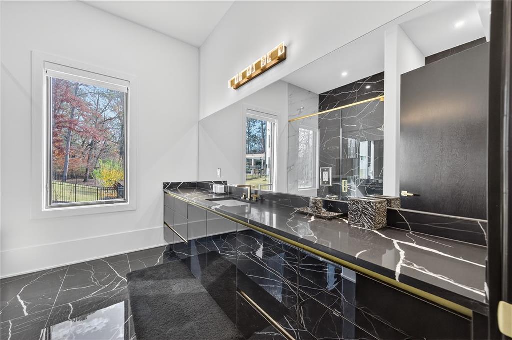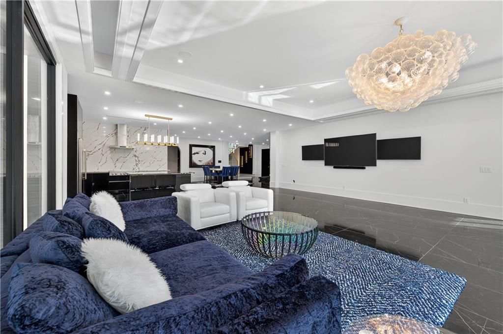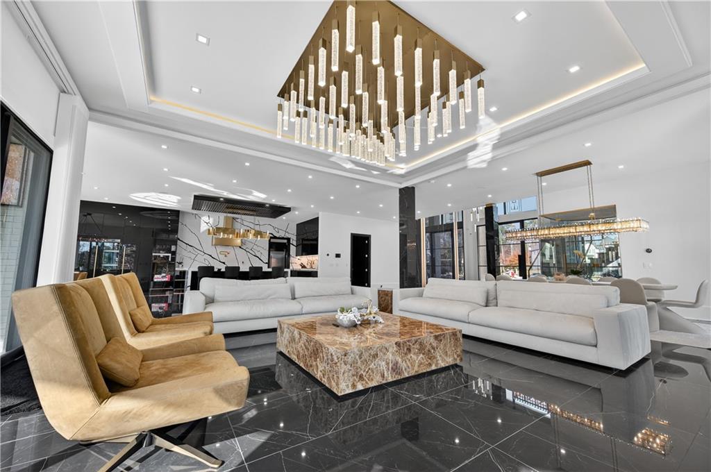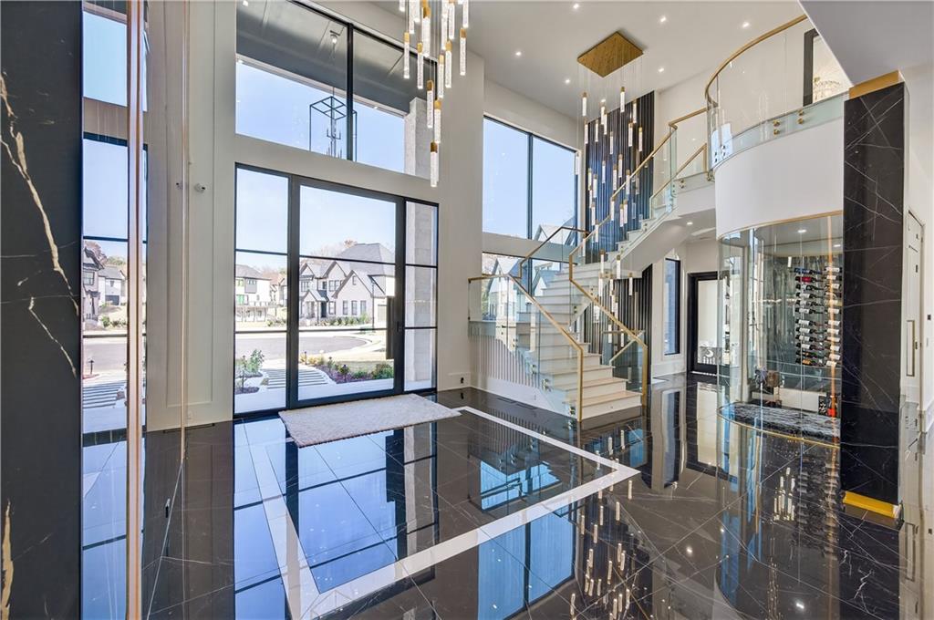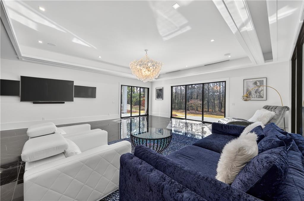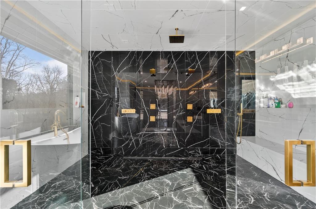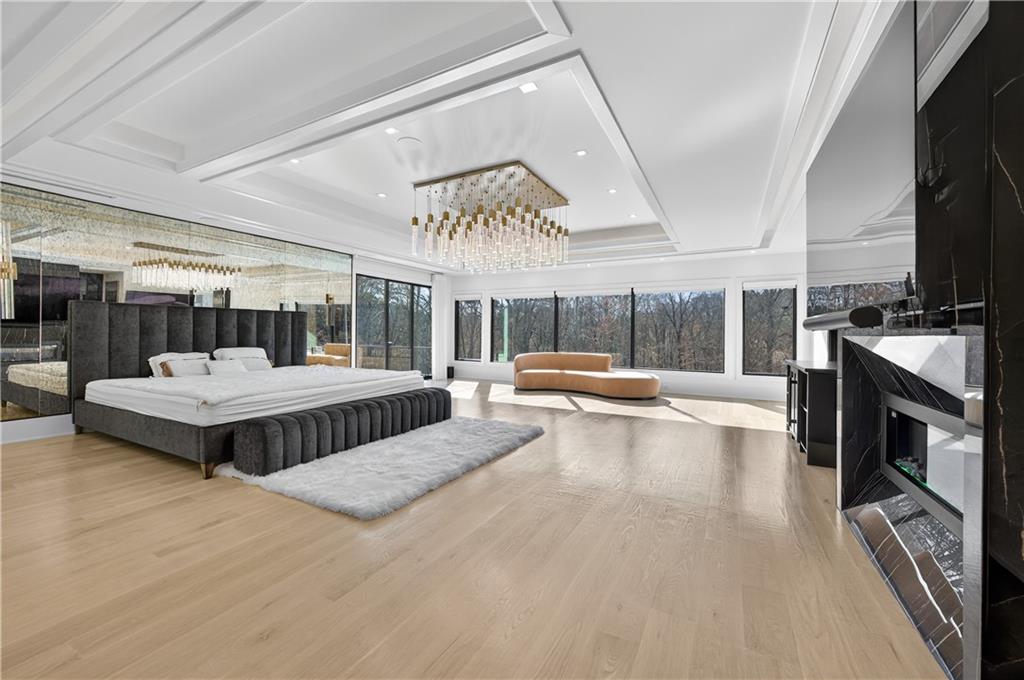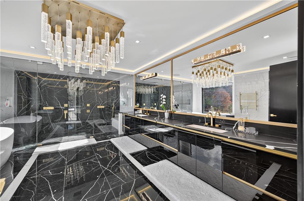 A rare opportunity to own a 15,600 sq ft ultra-luxury masterpiece built by award-winning Ronnie Rock Homes in one of Suwanee’s most exclusive gated enclaves. This 8-bedroom, 9.5-bath modern estate blends striking architectural design with resort-level amenities and advanced smart-home technology. A dramatic 12-ft glass entry door opens into a two-story foyer with a custom curved glass staircase and oversized aluminum-clad windows flooding the interior with natural light. Main and terrace levels feature 11-ft ceilings, premium tile flooring, and seamless indoor-outdoor flow through 11 sliding glass doors leading to multiple decks and patios. Lighting is a work of art here, with over 830 recessed fixtures, designer chandeliers, and integrated LED accents throughout. The chef’s kitchen is anchored by an impressive 11' x 7' waterfall quartz island, surrounded by high-gloss European cabinetry, Miele appliances, double dishwashers, induction cooktop with pot filler, built-in coffee system, and a walk-in pantry with an additional oversized fridge and cabinetry. The open living room centers around a 72-inch slab-tile fireplace and full smart-home lighting and audio controlled by a Control4 system with speakers throughout the home. The home offers three luxurious primary suites, including a main-level owner’s retreat with Juliet balcony, fireplace, spa bathroom, smart toilet, and boutique-style custom closet with private laundry. Upstairs, two additional oversized suites feature vaulted ceilings, spa baths, and private deck access. Three more bedrooms, a loft TV area, laundry room, and storage complete the upper level. Perfect for multi-generational living. The resort-style terrace level is unmatched: a fully heated indoor saltwater pool with automated cover, spa/jacuzzi, dry sauna, steam room, fitness room, and a full second kitchen for entertaining. The showpiece Golfzon simulator doubles as a luxury theater with tiered seating. Two en-suite bedrooms and full laundry make this level ideal for guests or extended family. Outdoor living includes a wraparound tiled deck with integrated lighting, a fully equipped outdoor kitchen, and a custom brick-and-mortar fire pit lounge. The manicured grounds feature Japanese maples and Zoysia grass. A wide driveway leads to two separate 2-car garages with glass doors, 11-ft ceilings, upgraded flooring, and custom LED strip lighting. Additional features include full spray-foam insulation, SpringWell water filtration, dual Navien tankless systems, fully tiled walls in all bathrooms, automated curtains, built-in intercom, and upgraded plumbing fixtures with smart toilets throughout. Experience unmatched scale, craftsmanship, and modern luxury - 3440 Ronnie Lane is a private, gated estate offering every amenity imaginable in one of Metro Atlanta’s most desirable communities. Located in the very desirable school district with Lambert High School.