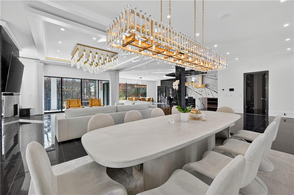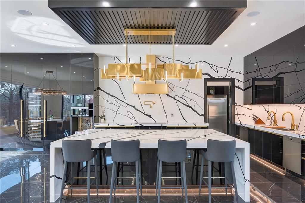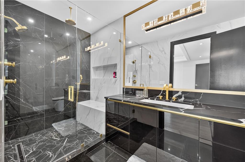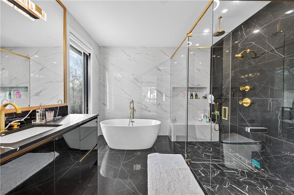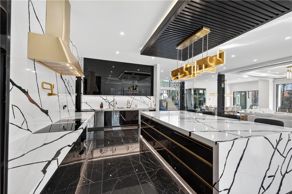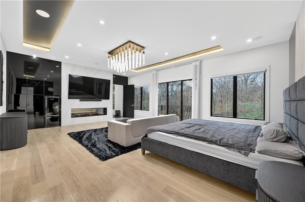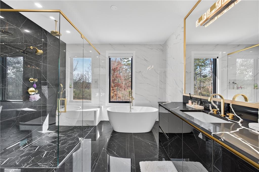 A rare opportunity to own a 15,600 sq ft ultra-luxury masterpiece built by award-winning Ronnie Rock Homes in one of Suwanee’s most exclusive gated enclaves. This 8-bedroom, 9.5-bath modern estate blends striking architectural design with resort-level amenities and advanced smart-home technology. A dramatic 12-ft glass entry door opens into a two-story foyer with a custom curved glass staircase and oversized aluminum-clad windows flooding the interior with natural light. Main and terrace levels feature 11-ft ceilings, premium tile flooring, and seamless indoor-outdoor flow through 11 sliding glass doors leading to multiple decks and patios. Lighting is a work of art here, with over 830 recessed fixtures, designer chandeliers, and integrated LED accents throughout. The chef’s kitchen is anchored by an impressive 11' x 7' waterfall quartz island, surrounded by high-gloss European cabinetry, Miele appliances, double dishwashers, induction cooktop with pot filler, built-in coffee system, and a walk-in pantry with an additional oversized fridge and cabinetry. The open living room centers around a 72-inch slab-tile fireplace and full smart-home lighting and audio controlled by a Control4 system with speakers throughout the home. The home offers three luxurious primary suites, including a main-level owner’s retreat with Juliet balcony, fireplace, spa bathroom, smart toilet, and boutique-style custom closet with private laundry. Upstairs, two additional oversized suites feature vaulted ceilings, spa baths, and private deck access. Three more bedrooms, a loft TV area, laundry room, and storage complete the upper level. Perfect for multi-generational living. The resort-style terrace level is unmatched: a fully heated indoor saltwater pool with automated cover, spa/jacuzzi, dry sauna, steam room, fitness room, and a full second kitchen for entertaining. The showpiece Golfzon simulator doubles as a luxury theater with tiered seating. Two en-suite bedrooms and full laundry make this level ideal for guests or extended family. Outdoor living includes a wraparound tiled deck with integrated lighting, a fully equipped outdoor kitchen, and a custom brick-and-mortar fire pit lounge. The manicured grounds feature Japanese maples and Zoysia grass. A wide driveway leads to two separate 2-car garages with glass doors, 11-ft ceilings, upgraded flooring, and custom LED strip lighting. Additional features include full spray-foam insulation, SpringWell water filtration, dual Navien tankless systems, fully tiled walls in all bathrooms, automated curtains, built-in intercom, and upgraded plumbing fixtures with smart toilets throughout. Experience unmatched scale, craftsmanship, and modern luxury - 3440 Ronnie Lane is a private, gated estate offering every amenity imaginable in one of Metro Atlanta’s most desirable communities. Located in the very desirable school district with Lambert High School.