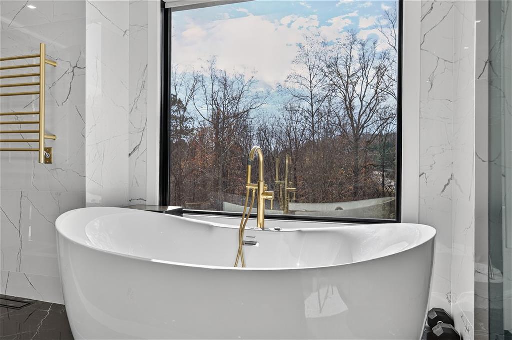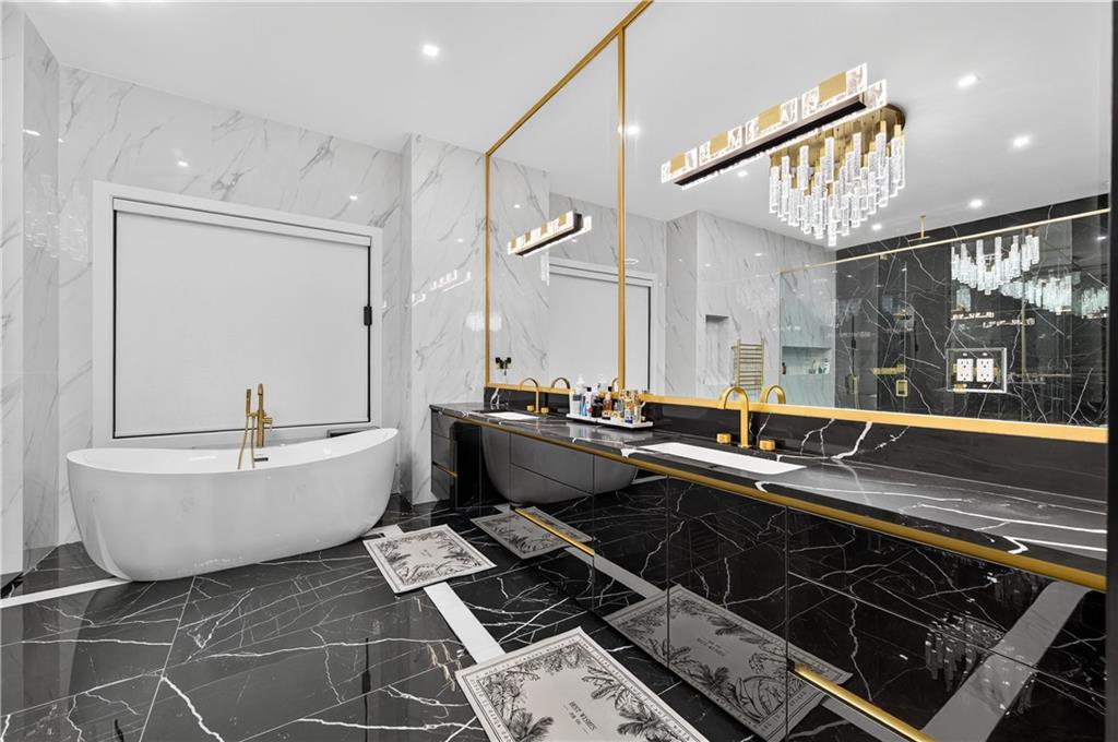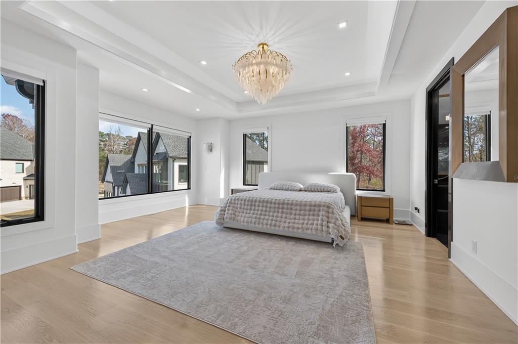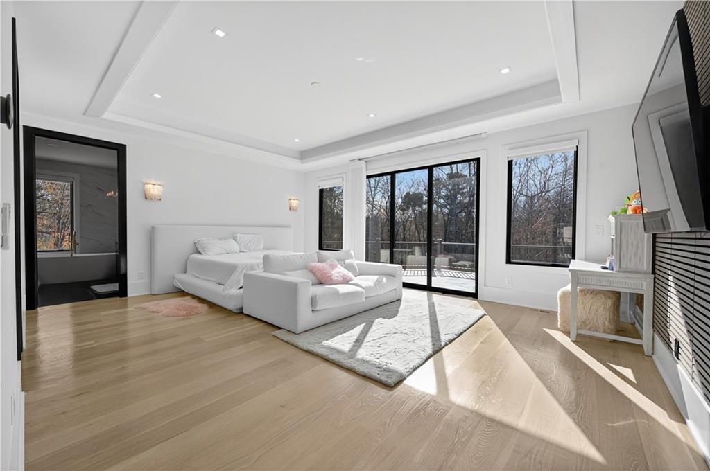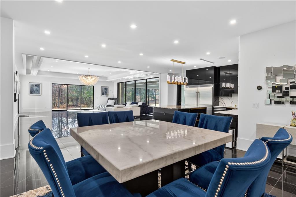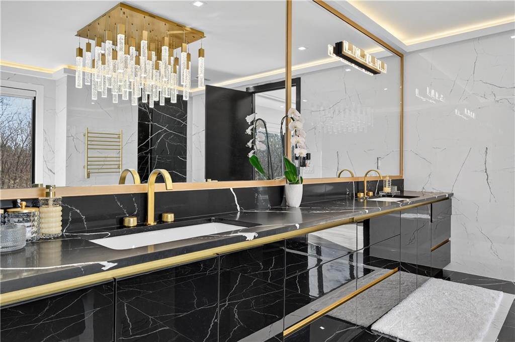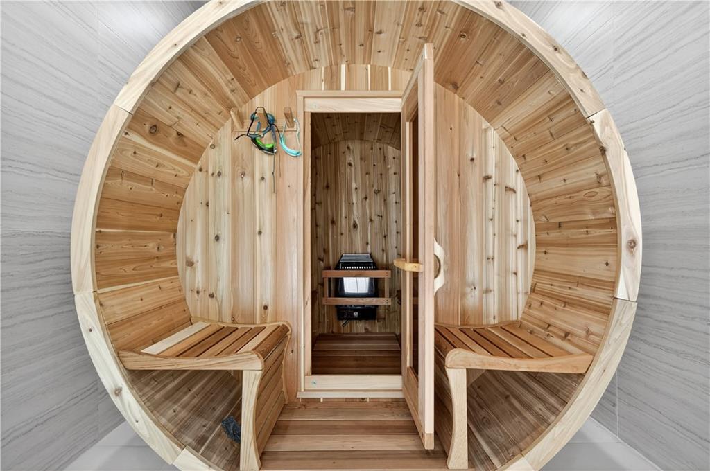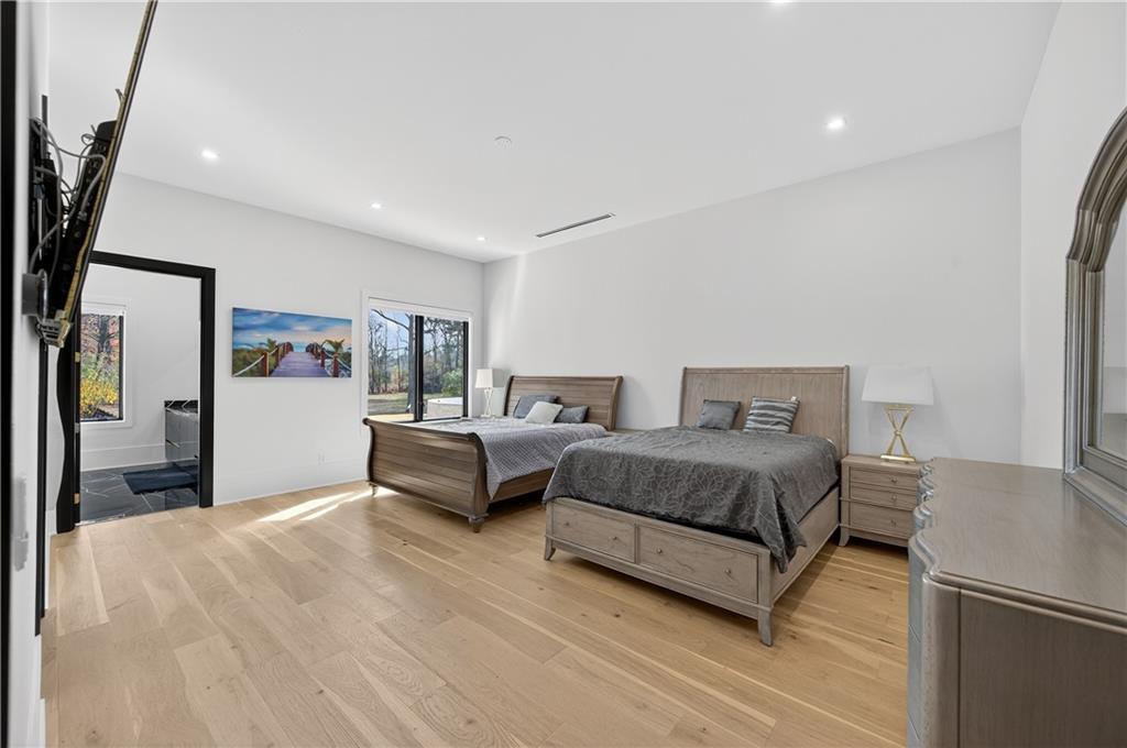 A rare opportunity to own a 15,600 sq ft ultra-luxury masterpiece built by award-winning Ronnie Rock Homes in one of Suwanee’s most exclusive gated enclaves. This 8-bedroom, 9.5-bath modern estate blends striking architectural design with resort-level amenities and advanced smart-home technology. A dramatic 12-ft glass entry door opens into a two-story foyer with a custom curved glass staircase and oversized aluminum-clad windows flooding the interior with natural light. Main and terrace levels feature 11-ft ceilings, premium tile flooring, and seamless indoor-outdoor flow through 11 sliding glass doors leading to multiple decks and patios. Lighting is a work of art here, with over 830 recessed fixtures, designer chandeliers, and integrated LED accents throughout. The chef’s kitchen is anchored by an impressive 11' x 7' waterfall quartz island, surrounded by high-gloss European cabinetry, Miele appliances, double dishwashers, induction cooktop with pot filler, built-in coffee system, and a walk-in pantry with an additional oversized fridge and cabinetry. The open living room centers around a 72-inch slab-tile fireplace and full smart-home lighting and audio controlled by a Control4 system with speakers throughout the home. The home offers three luxurious primary suites, including a main-level owner’s retreat with Juliet balcony, fireplace, spa bathroom, smart toilet, and boutique-style custom closet with private laundry. Upstairs, two additional oversized suites feature vaulted ceilings, spa baths, and private deck access. Three more bedrooms, a loft TV area, laundry room, and storage complete the upper level. Perfect for multi-generational living. The resort-style terrace level is unmatched: a fully heated indoor saltwater pool with automated cover, spa/jacuzzi, dry sauna, steam room, fitness room, and a full second kitchen for entertaining. The showpiece Golfzon simulator doubles as a luxury theater with tiered seating. Two en-suite bedrooms and full laundry make this level ideal for guests or extended family. Outdoor living includes a wraparound tiled deck with integrated lighting, a fully equipped outdoor kitchen, and a custom brick-and-mortar fire pit lounge. The manicured grounds feature Japanese maples and Zoysia grass. A wide driveway leads to two separate 2-car garages with glass doors, 11-ft ceilings, upgraded flooring, and custom LED strip lighting. Additional features include full spray-foam insulation, SpringWell water filtration, dual Navien tankless systems, fully tiled walls in all bathrooms, automated curtains, built-in intercom, and upgraded plumbing fixtures with smart toilets throughout. Experience unmatched scale, craftsmanship, and modern luxury - 3440 Ronnie Lane is a private, gated estate offering every amenity imaginable in one of Metro Atlanta’s most desirable communities. Located in the very desirable school district with Lambert High School.